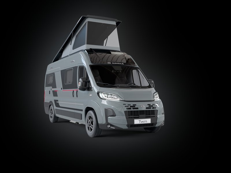 The stunning new 2026 model Adria Twin Sports 600 SPB is in stock now at Solent. One of the most sought after van conversions on the market, the Twin Sports is a superbly designed and built motorhome at home off the beaten track or travelling on adventures in foreign lands. The thoughtful design means there is a lot of storage space and every inch of the 5.99m is used well. The Twin is Fiat Ducato based featuring the new 2.2l 140bhp engine and 8 speed automatic transmission. Also fitted with the optional Lux pack, it boasts LED headlamps and a full LCD driving display. Behind the swivel seats is a dinette that seats 4 in comfort. A ladder accesses the pop-top roof with a comfortable, large double bed. To the side, the kitchen is fitted with a gas oven/grill, a 2 burner gas hob and a fridge/freezer. Opposite, behind a tambour door is the bathroom with cassette type toilet, wash hand basin and a clever partition for the shower. The bedroom has a large transverse double bed which can be moved out of the way to provide a huge storage area, ideal for transporting bikes. Heating is provided by a diesel heater with hot water by a Truma Combi unit. Finished in Expedition Grey with Arno interior. Other features for this Adria Twin Sports 600 SPB include: Pleated Cab Blinds, Navigation, Carpets, Thule Omnistor wind out awning, Pop-Top roof, Solar Panel, Flyscreen for sliding door, Twin Leisure Batteries and Fiat Lux Pack. L. 5.99m, W. 2.05m, H. 2.60m, 3,500kg. 4 Berth, 4 Seatbelts, Delivery Mileage.