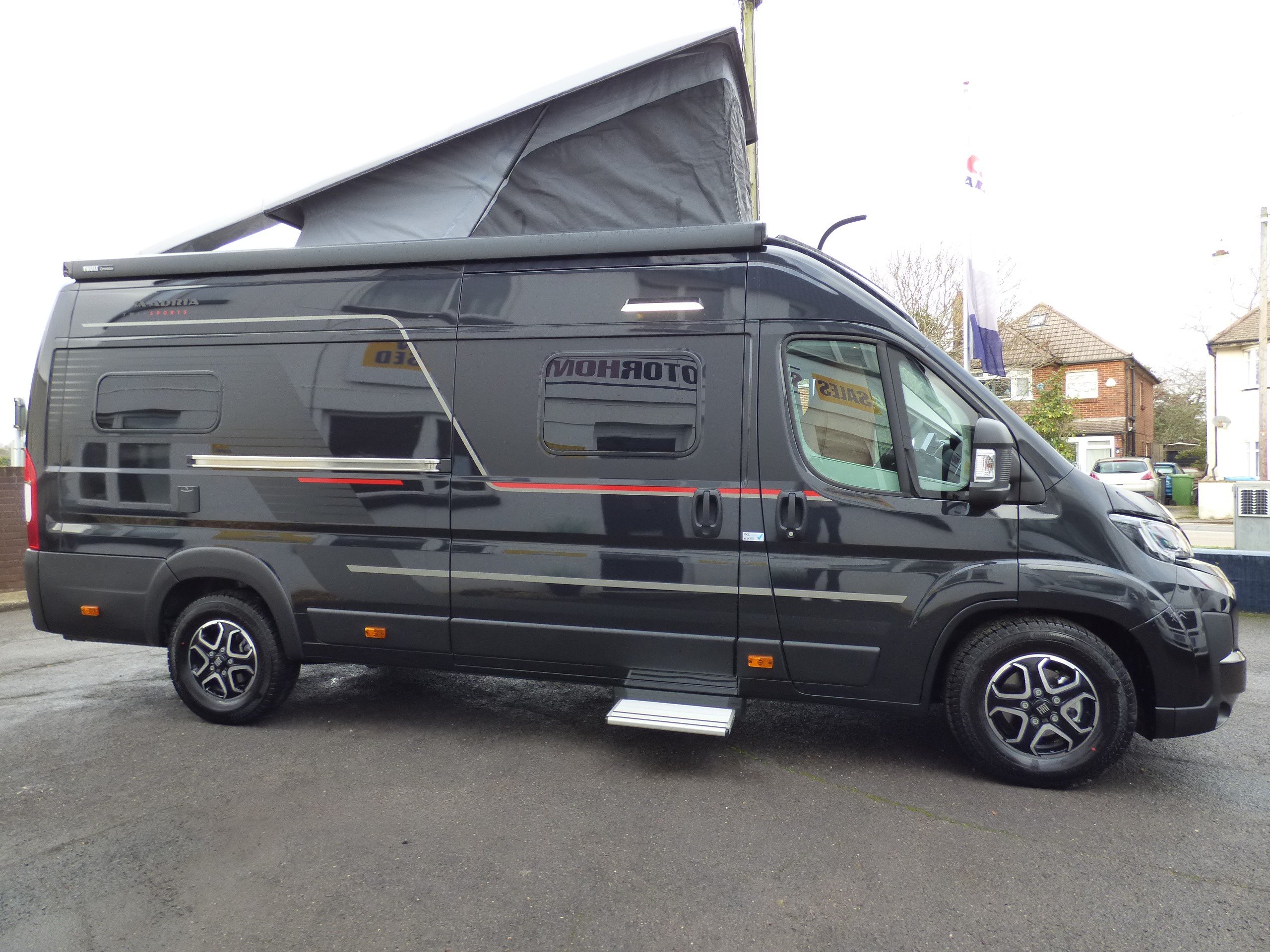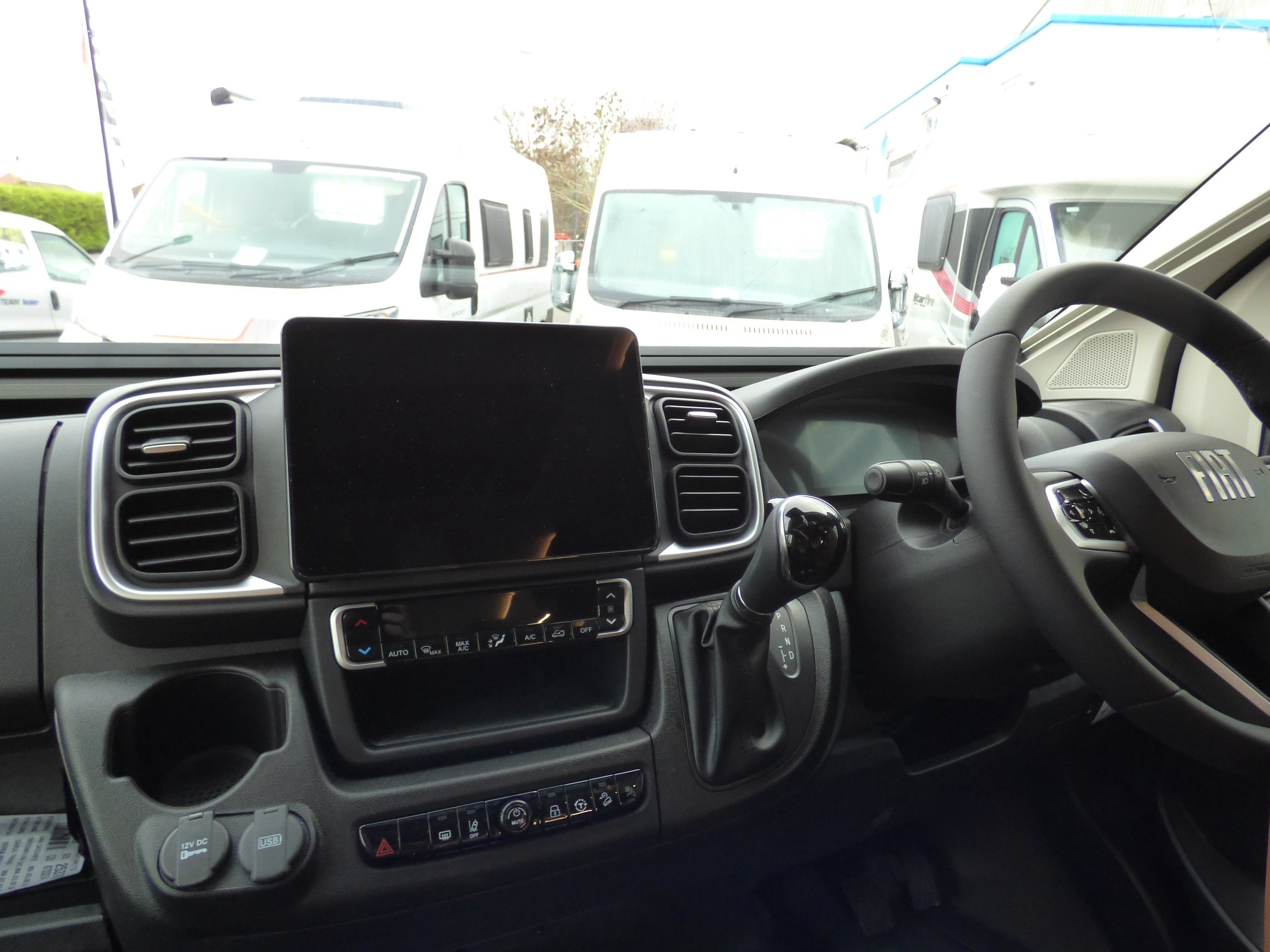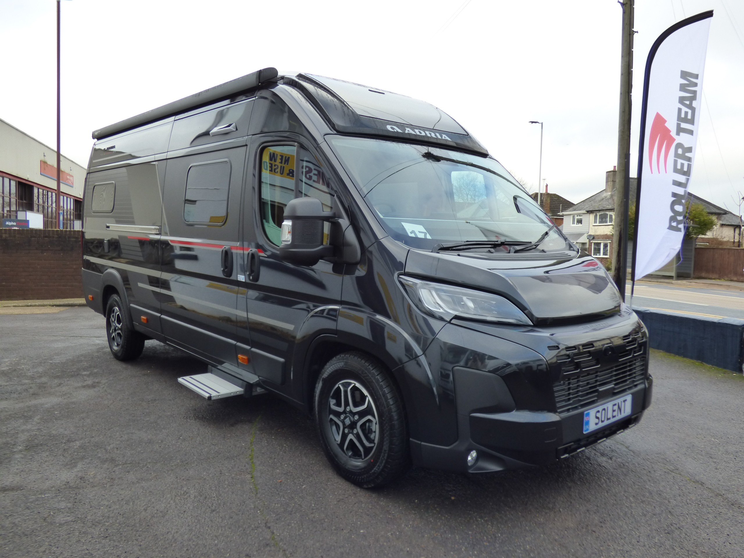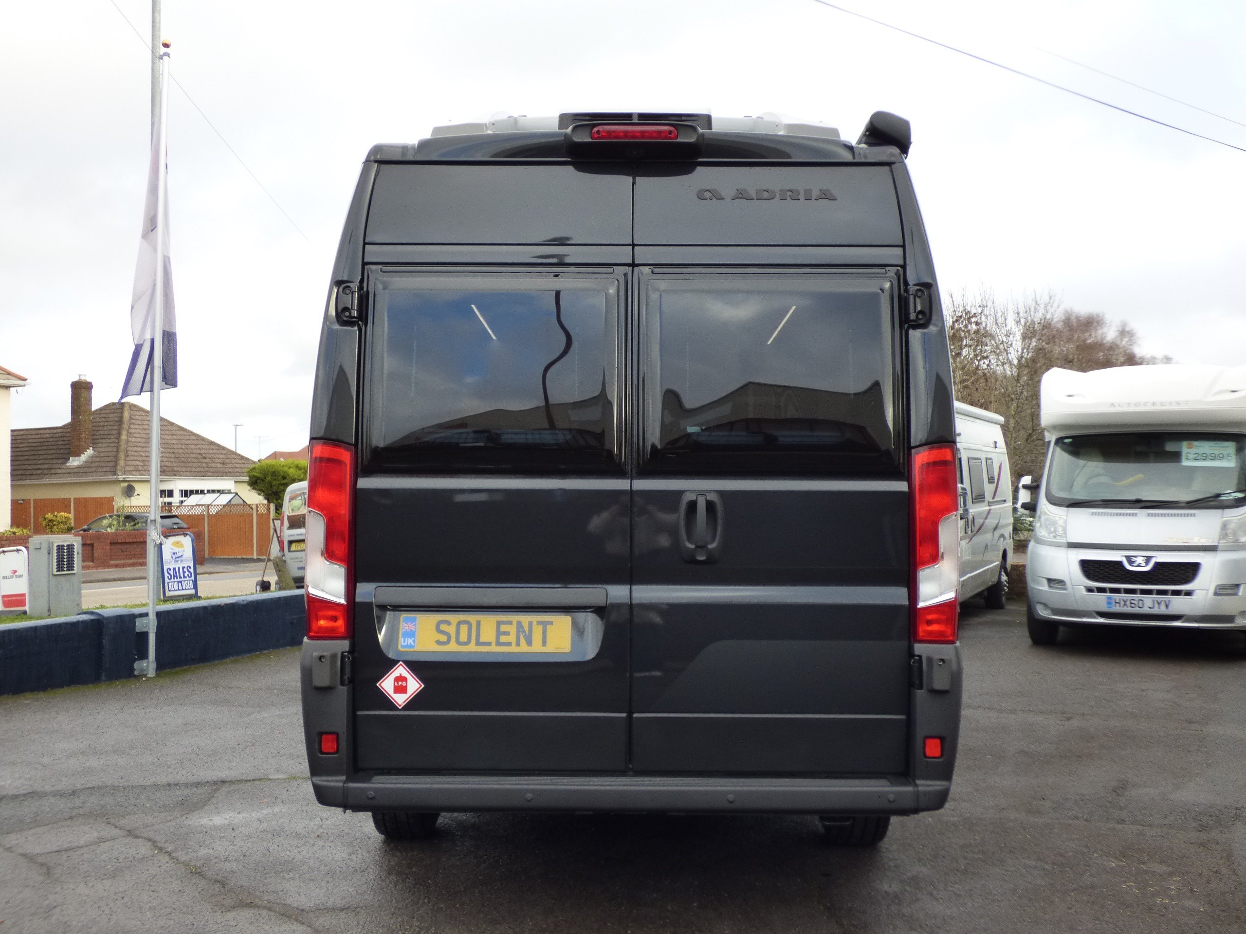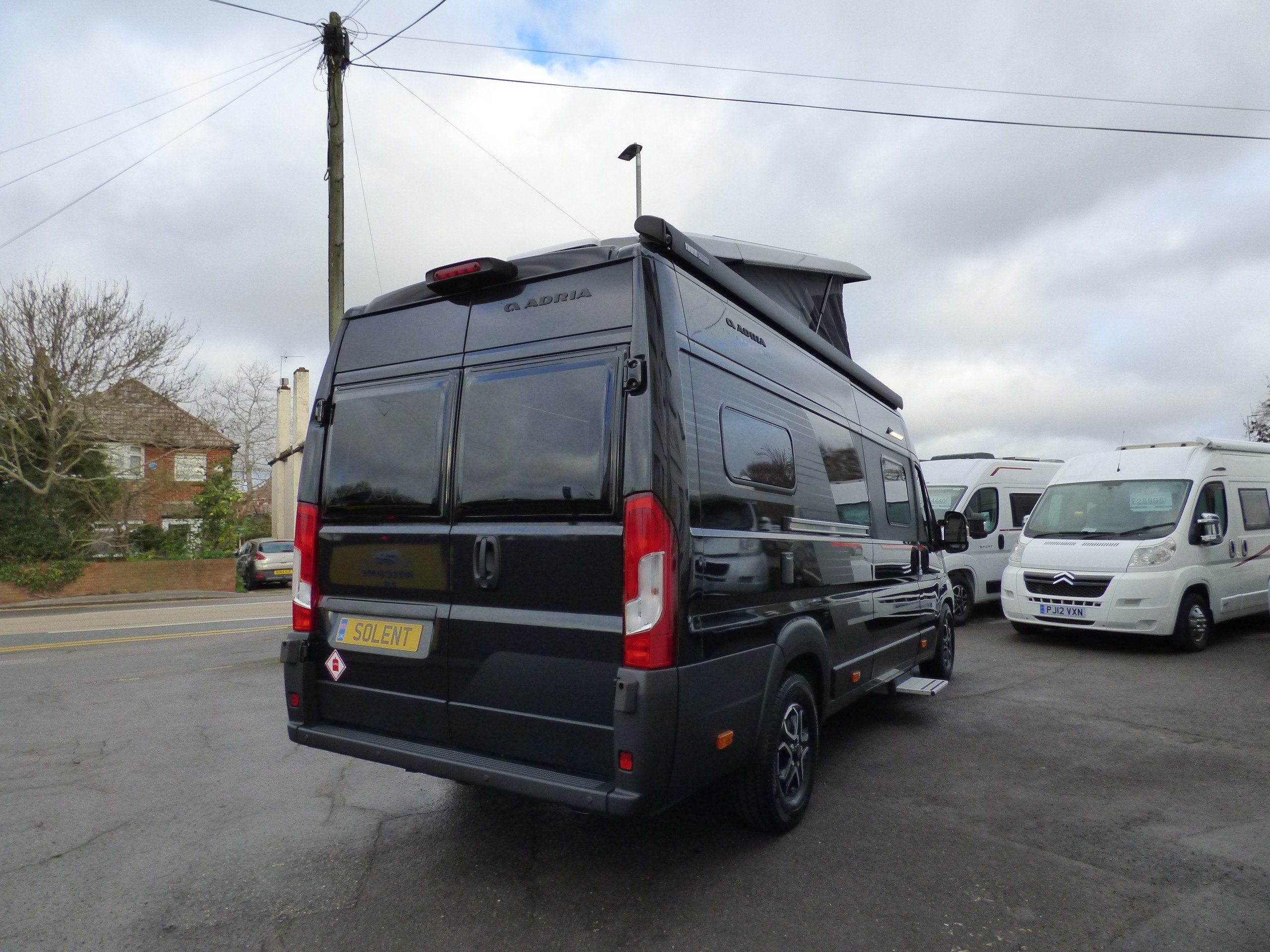 The stunning new 2026 model Adria Twin Sports 640 SLB in stunning Black metallic with Leather Harry Interior is in stock Now! One of the most sought after van conversions on the market, the Twin Sports is a superbly designed and built motorhome at home off the beaten track or travelling on adventures in foreign lands. The thoughtful design means there is a lot of storage space and every inch of the 6.36m is used well. The Twin is Fiat Ducato based featuring the new 2.2l 180bhp engine and 8 speed automatic transmission. Also fitted with the optional Lux pack, it boasts LED headlamps and a full LCD driving display. Behind the swivel seats is a dinette that seats 4 in comfort. A ladder accesses the pop-top roof with a comfortable, large double bed. To the side, the kitchen is fitted with a gas oven/grill, a 2 burner gas hob and a fridge/freezer. Opposite, behind a tambour door is the bathroom with cassette type toilet, wash hand basin and a clever partition for the shower. The bedroom has two single beds that can be used as a large double bed which can be moved out of the way to provide a huge storage area, ideal for transporting bikes. Heating is provided by a diesel heater with hot water by a Truma Combi unit. Other features for this Adria Twin Sports 640 SLB include: Truma Habitation Air Conditioning, Pleated Cab Blinds, Navigation, Carpets, Thule Omnistor wind out awning, Pop-Top roof, Solar Panel, Flyscreen for sliding door, Pack Safety with Adaptive Cruise Control, Twin Leisure Batteries, Add on airbed and Fiat Lux Pack. L. 6.36m, W. 2.05m, H. 2.60m, 3,500kg. 4 Berth, 4 Seatbelts, Delivery Mileage.