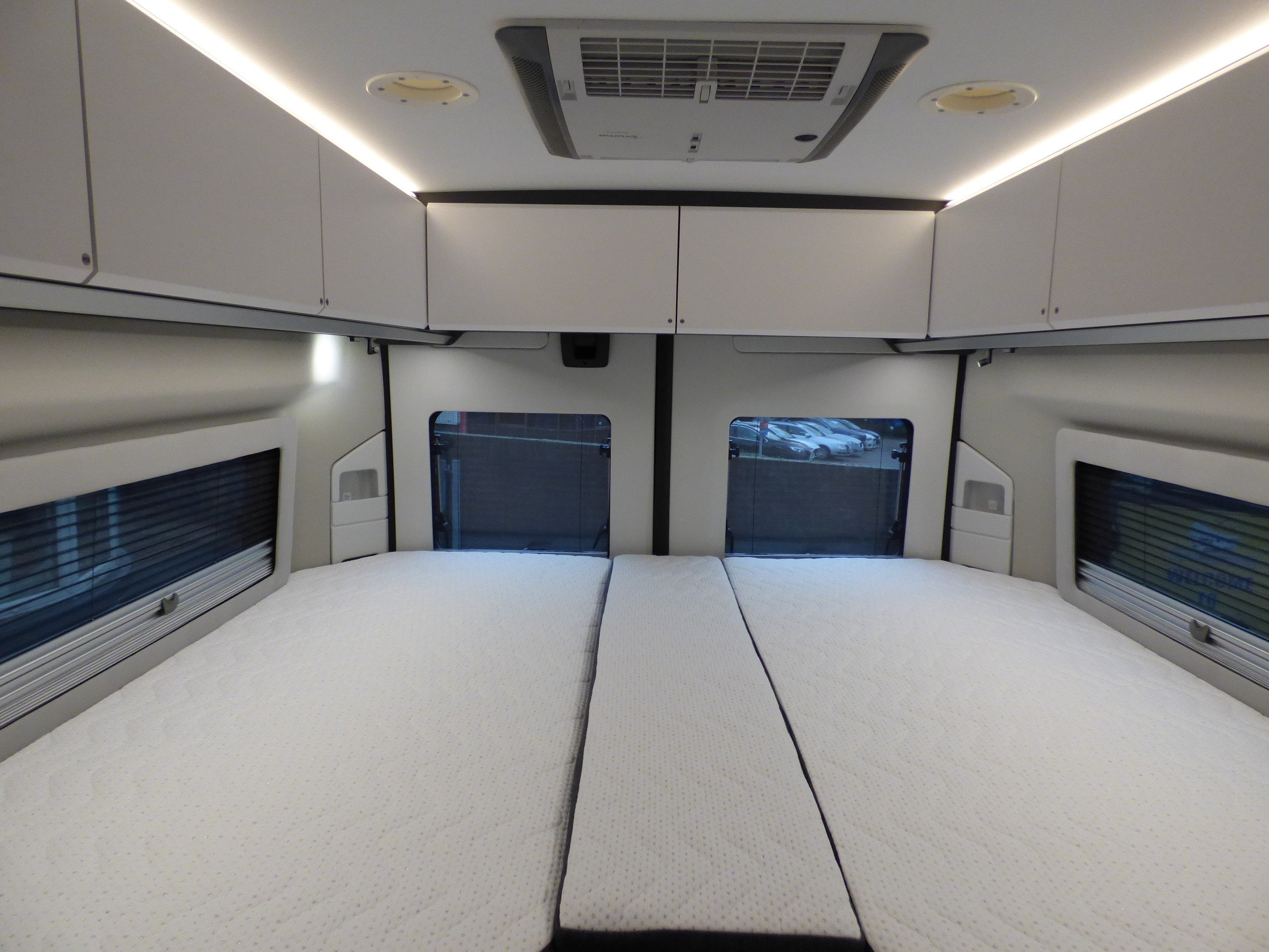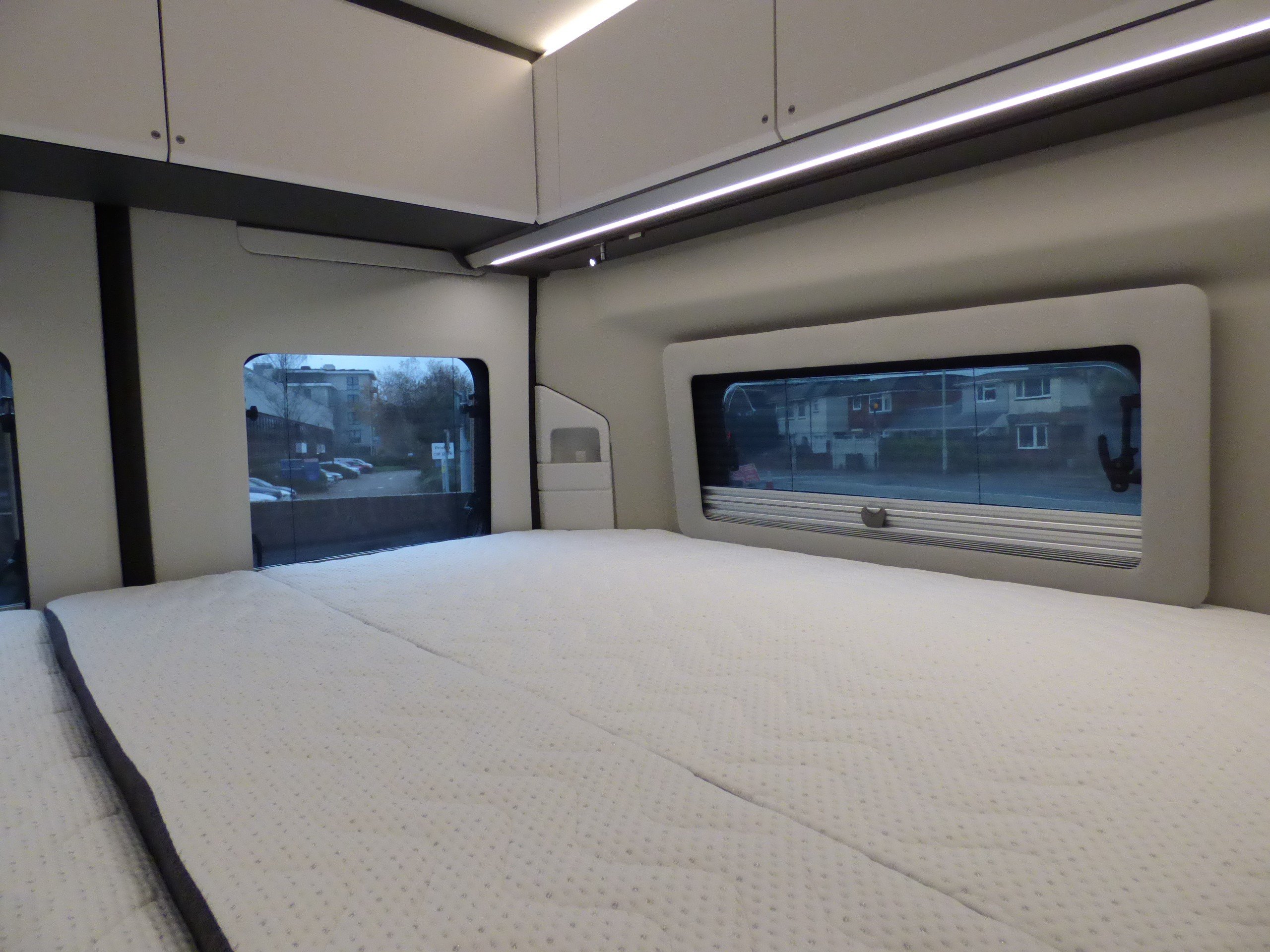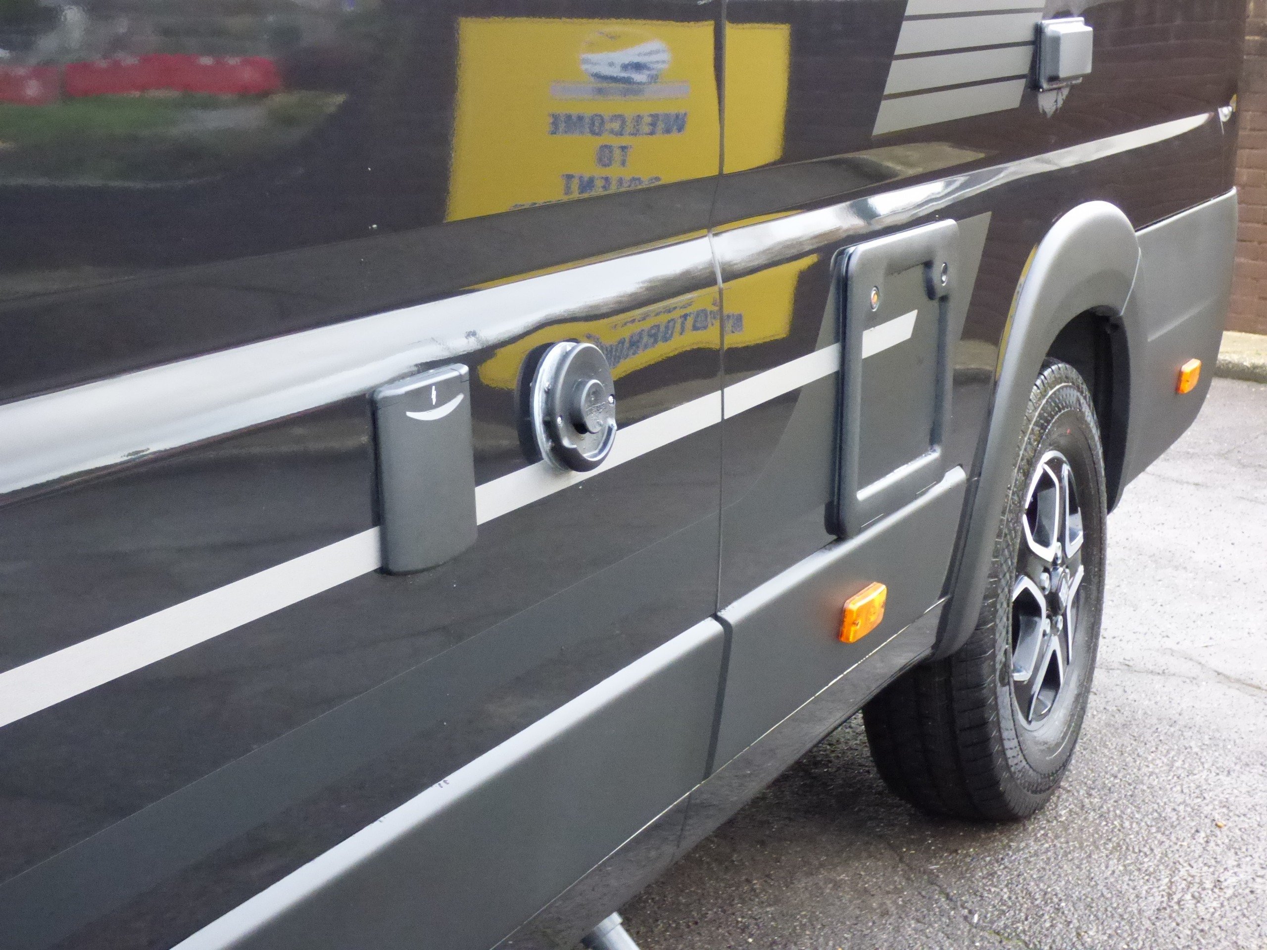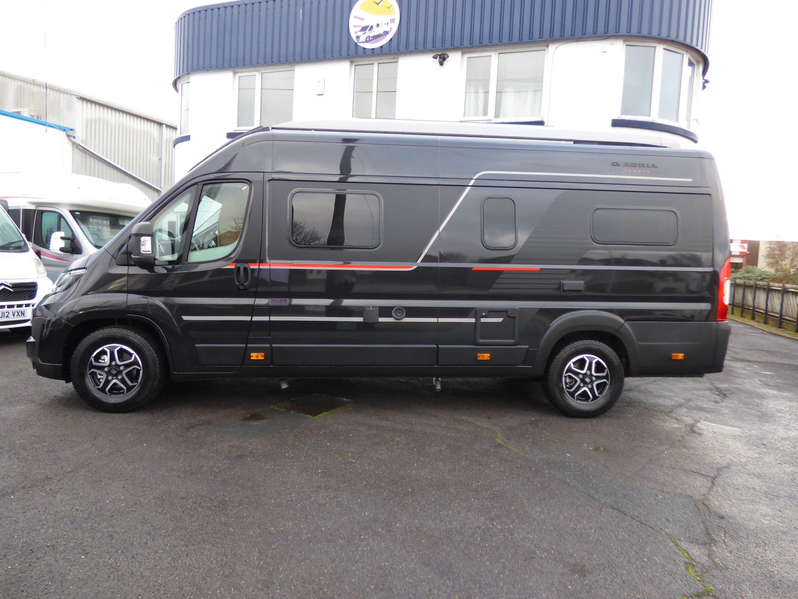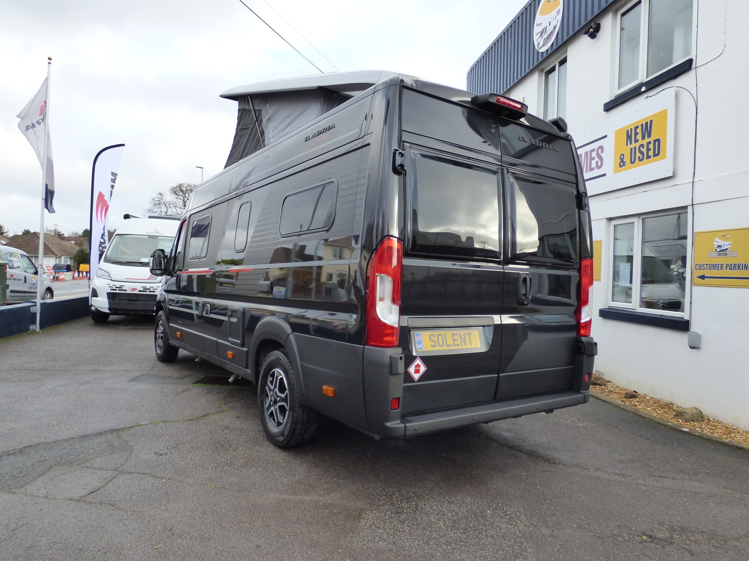 The stunning new 2026 model Adria Twin Sports 640 SLB in stunning Black metallic with Leather Harry Interior is in stock Now! One of the most sought after van conversions on the market, the Twin Sports is a superbly designed and built motorhome at home off the beaten track or travelling on adventures in foreign lands. The thoughtful design means there is a lot of storage space and every inch of the 6.36m is used well. The Twin is Fiat Ducato based featuring the new 2.2l 180bhp engine and 8 speed automatic transmission. Also fitted with the optional Lux pack, it boasts LED headlamps and a full LCD driving display. Behind the swivel seats is a dinette that seats 4 in comfort. A ladder accesses the pop-top roof with a comfortable, large double bed. To the side, the kitchen is fitted with a gas oven/grill, a 2 burner gas hob and a fridge/freezer. Opposite, behind a tambour door is the bathroom with cassette type toilet, wash hand basin and a clever partition for the shower. The bedroom has two single beds that can be used as a large double bed which can be moved out of the way to provide a huge storage area, ideal for transporting bikes. Heating is provided by a diesel heater with hot water by a Truma Combi unit. Other features for this Adria Twin Sports 640 SLB include: Truma Habitation Air Conditioning, Pleated Cab Blinds, Navigation, Carpets, Thule Omnistor wind out awning, Pop-Top roof, Solar Panel, Flyscreen for sliding door, Pack Safety with Adaptive Cruise Control, Twin Leisure Batteries, Add on airbed and Fiat Lux Pack. L. 6.36m, W. 2.05m, H. 2.60m, 3,500kg. 4 Berth, 4 Seatbelts, Delivery Mileage.