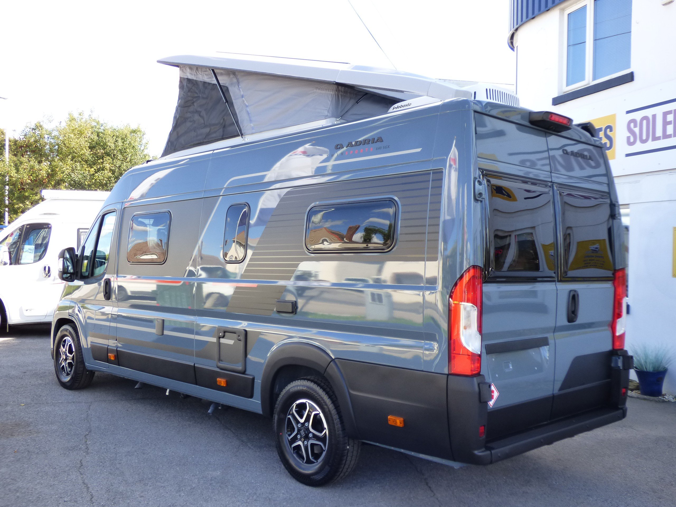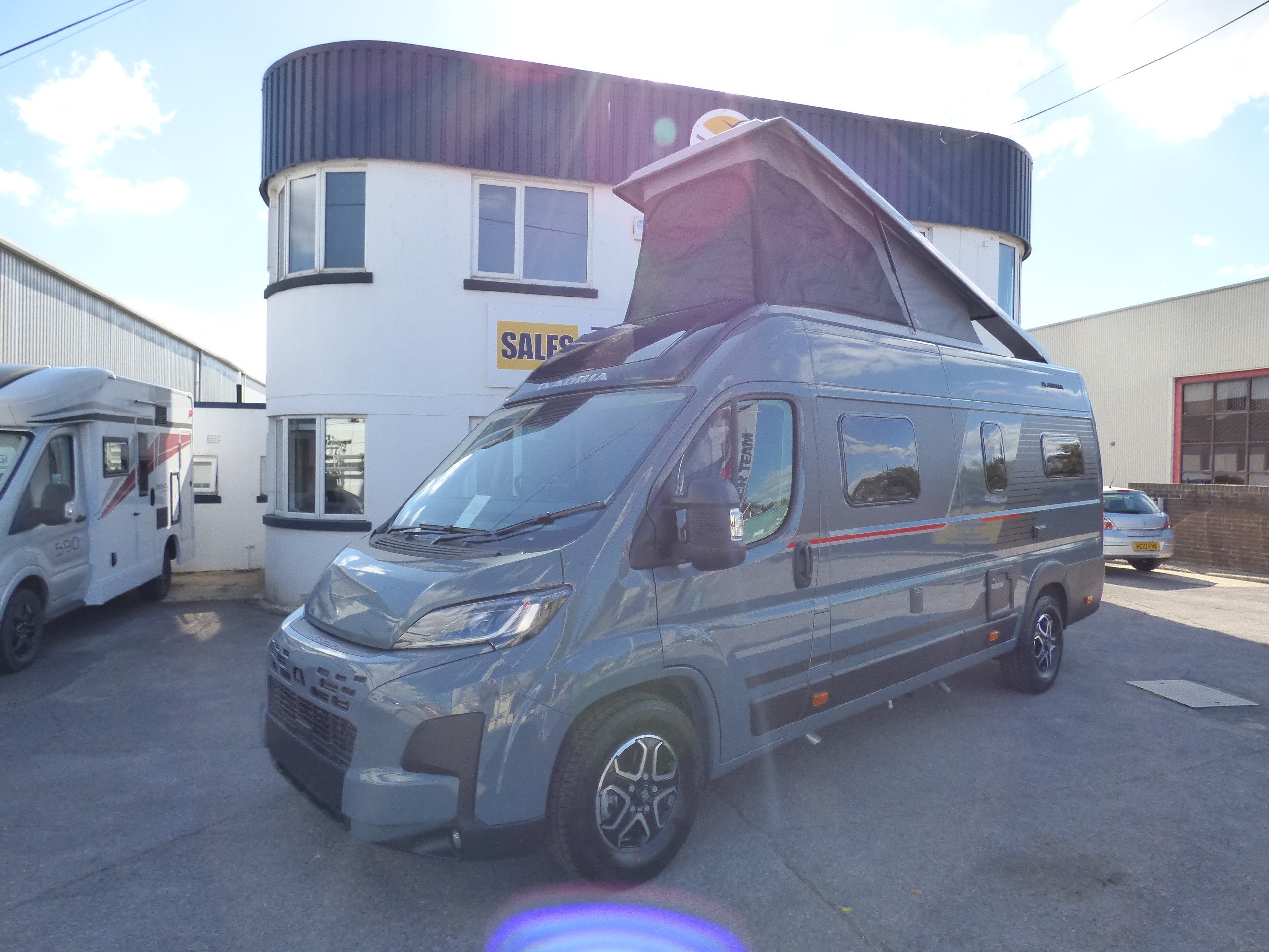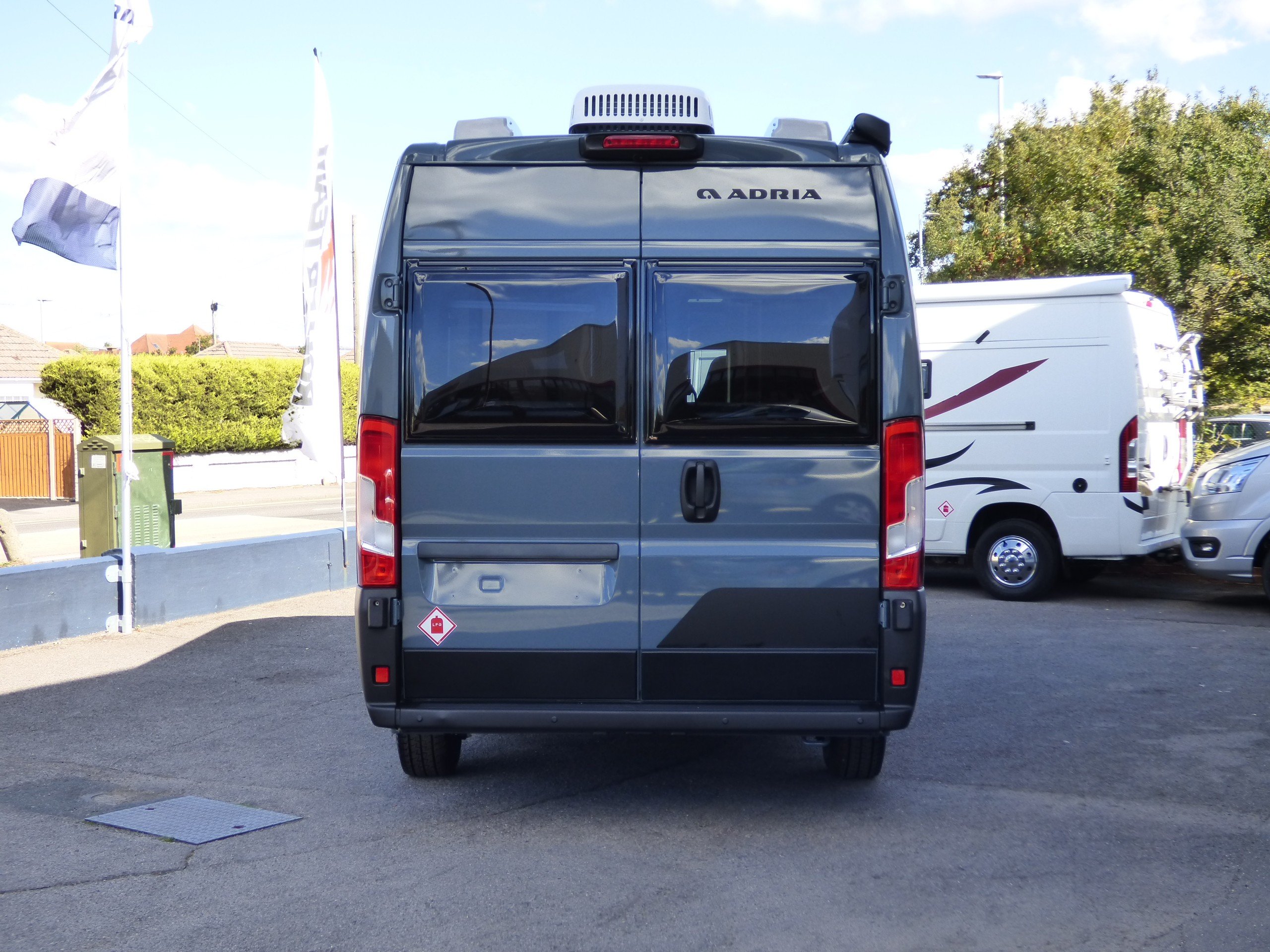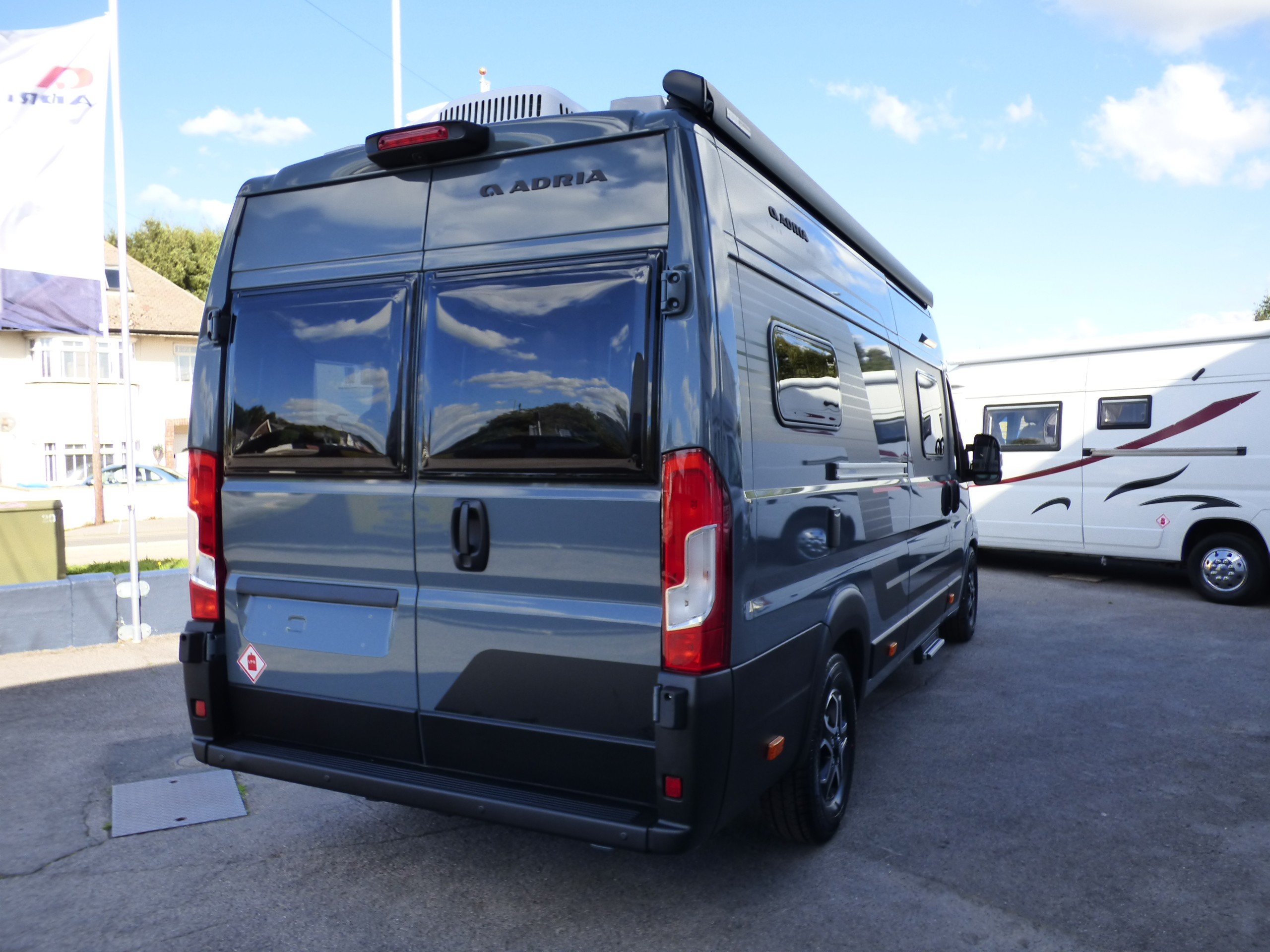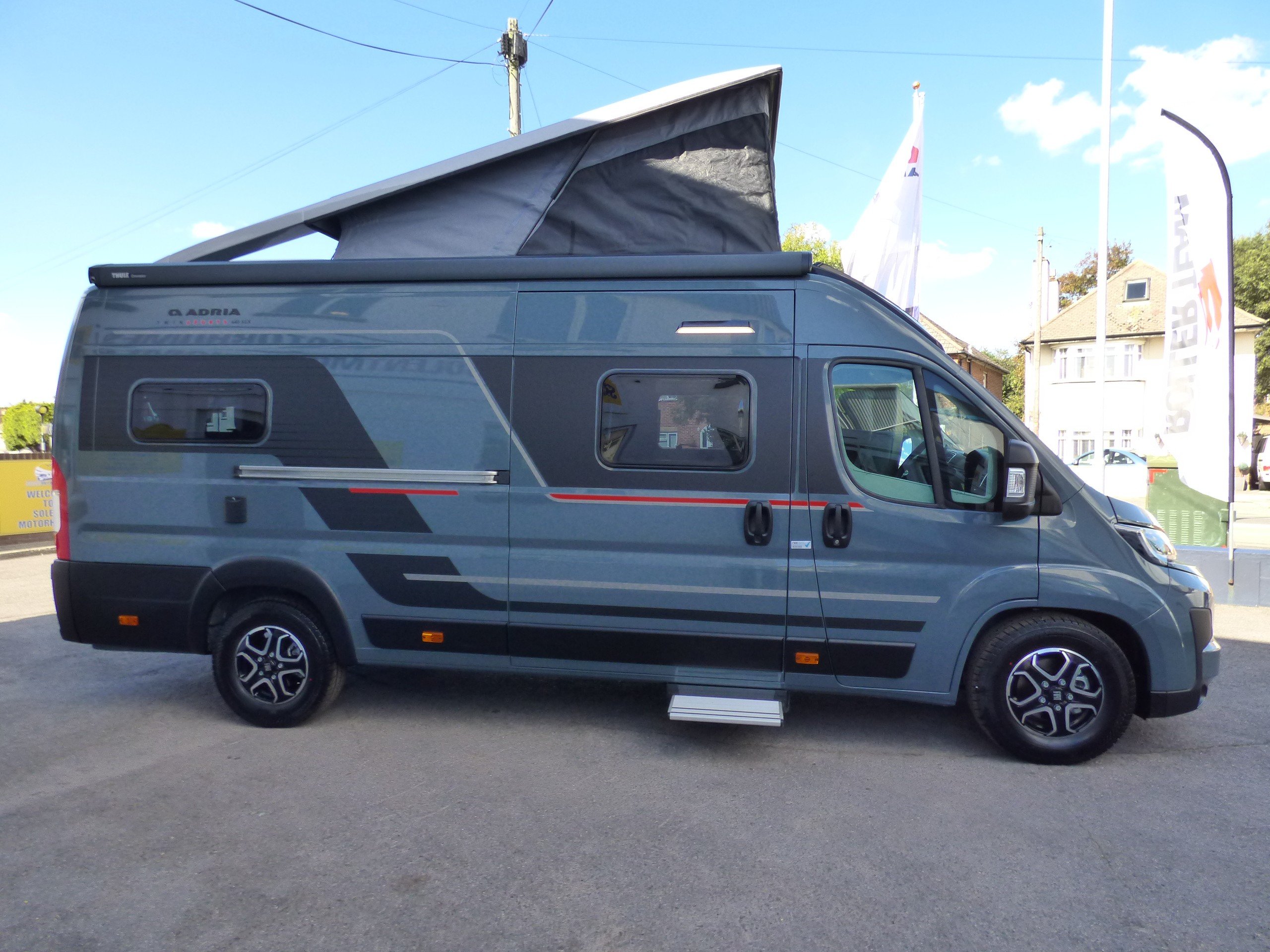 The stunning new 2026 model Adria Twin Sports 640 SGX is in stock now at Solent. One of the most sought after van conversions on the market, the Twin Sports is a superbly designed and built motorhome at home off the beaten track or travelling on adventures in foreign lands. The thoughtful design means there is a lot of storage space and every inch of the 6.36m is used well. The Twin is Fiat Ducato based featuring the new 2.2l 180bhp engine and 8 speed automatic transmission. Also fitted with the optional Lux pack, it boasts LED headlamps and a full LCD driving display. Behind the swivel seats is a dinette that seats 4 in comfort. A ladder accesses the pop-top roof with a comfortable, large double bed. To the side, the kitchen is fitted with a gas oven/grill, a 2 burner gas hob and a fridge/freezer. Opposite, behind a tambour door is the bathroom with cassette type toilet, wash hand basin and a clever partition for the shower. The bedroom has a large electric elevating double bed which can be moved out of the way to provide a huge storage area, ideal for transporting bikes. Heating is provided by a diesel heater with hot water by a Whale Gas boiler. Other features for this Adria Twin Sports 640 SGX include: Truma Habitation Air Conditioning, Pleated Cab Blinds, Navigation, Carpets, Thule Omnistor wind out awning, Pop-Top roof, Solar Panel, Flyscreen for sliding door, Larger 138l Fridge/freezer, Twin Leisure Batteries, Pull out platform, Heated Mattress and Insulation Canvas for Pop Top, Leather upholstery and Fiat Lux Pack. L. 6.36m, W. 2.05m, H. 2.60m, 3,500kg. 4 Berth, 4 Seatbelts, Delivery Mileage. Free Solent Pack worth £1655 comprising Scorpion S5 Alarm & Tracker, 22" Falcon Smart TV, Falcon Soundbar and Falcon 4G motorhome WiFi!