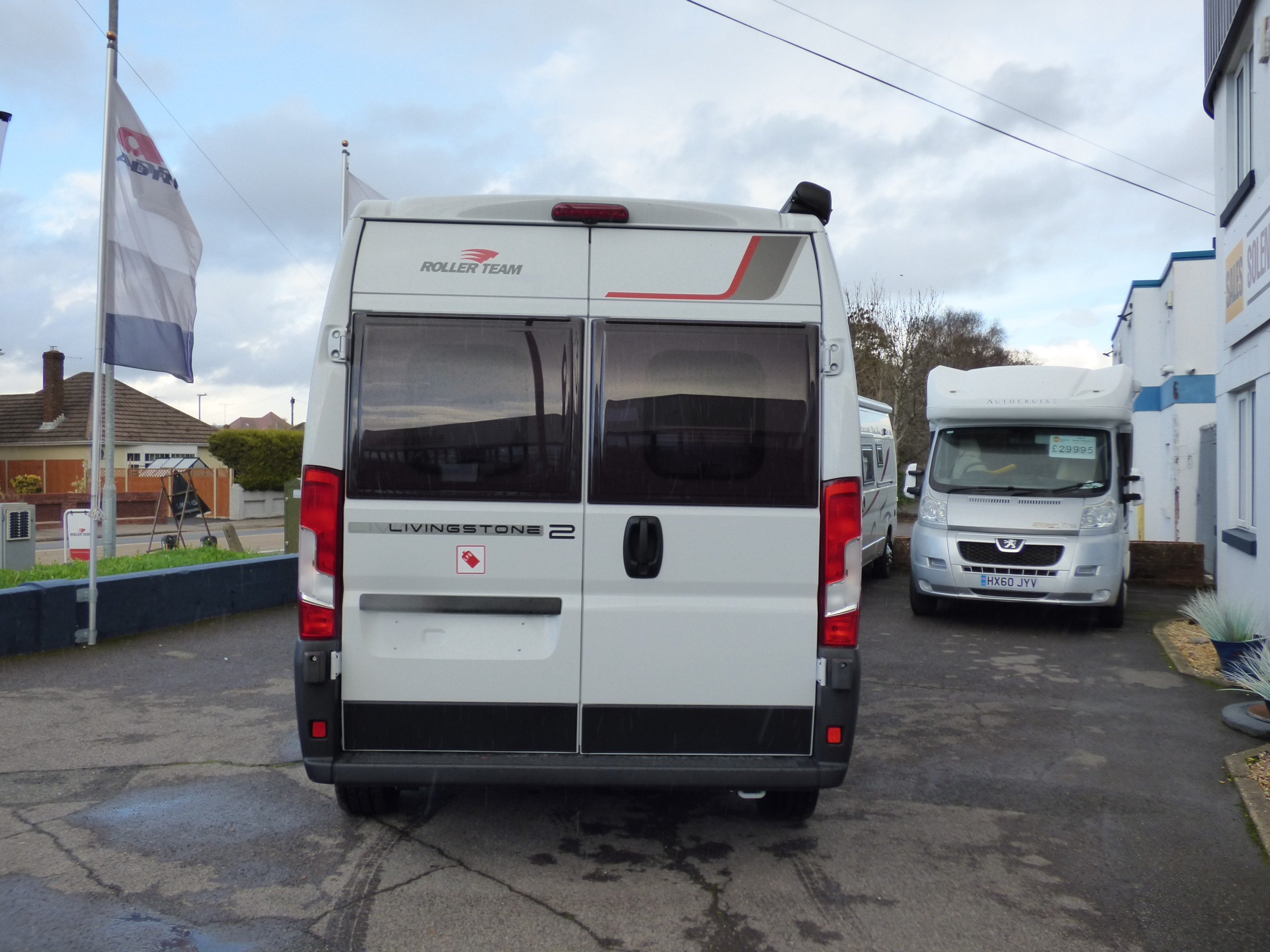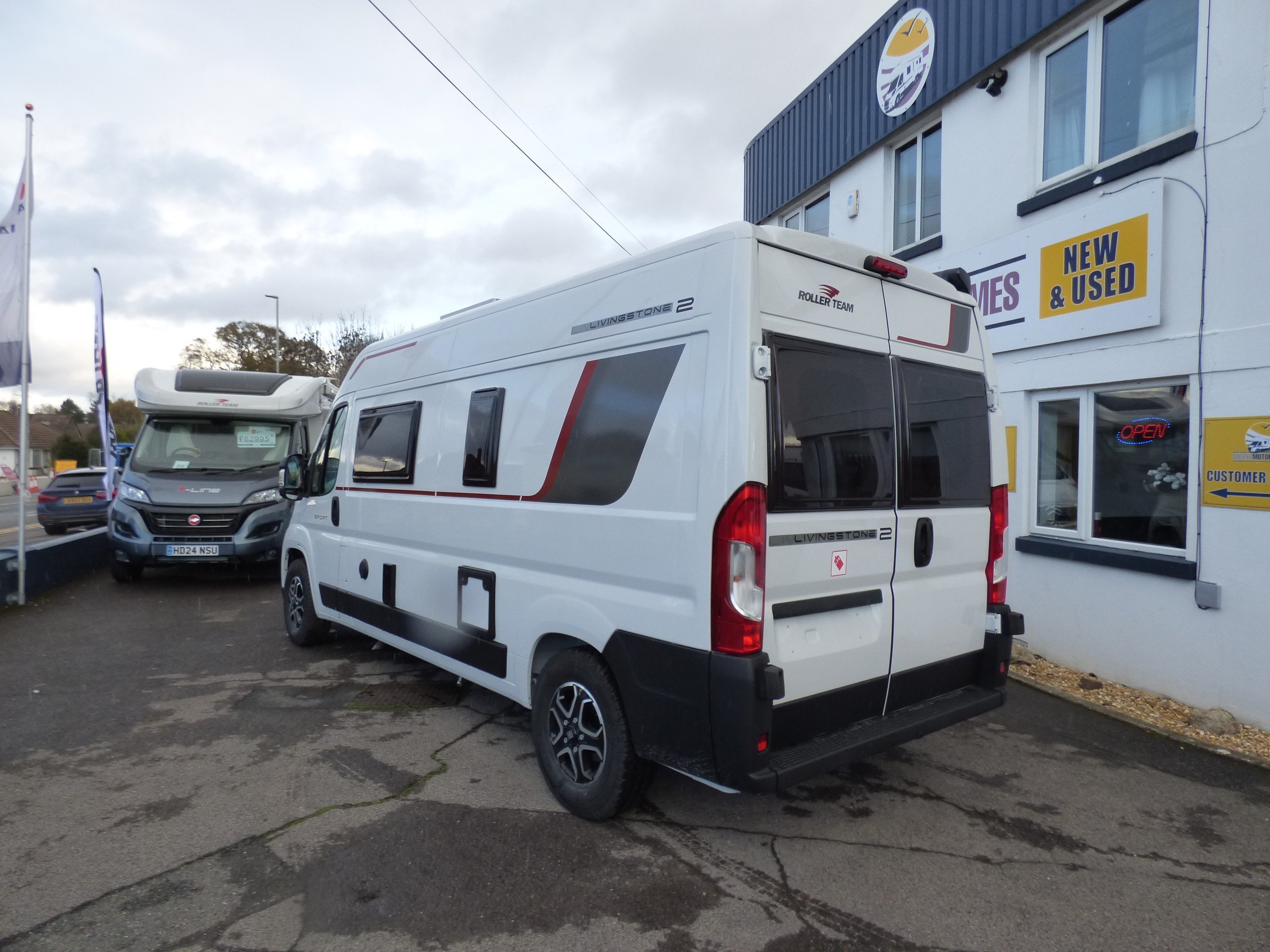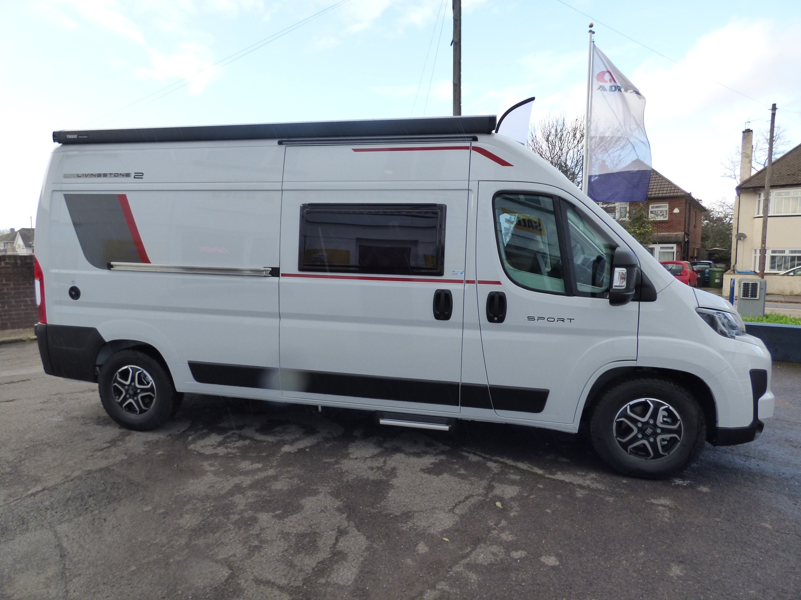 Step inside the Livingstone 2 Sport and enter a world of refined comfort and practicality. Whether you’re exploring rugged coastlines or serene countryside, this campervan transforms every trip into a chic, unforgettable adventure, inviting you to discover the joy of the journey with sophistication and ease. Based on the Fiat Ducato chassis with 140bhp engine and 8 speed automatic transmission, the Livingstone 2 Sport is laid out for 4 to travel in comfort with the front seats swivelling to form a dinette and the side kitchen fitted with a 90l dual access fridge, single gas burner hob and a gas oven. Opposite the bathroom features a folding door and fold away sink above a cassette type toilet and a wet room style shower cubicle. The rear transverse bed is a good size double and folds away enabling larger items, bikes etc. to be carried. Ample cupboard space throughout and heating is via a Webasto diesel system with dual fuel water heating. Other features of this Livingstone 2 Sport include: Alloy wheels, Pioneer infotainent/sat nav, wind out awning, solar panel, pleated cab blinds, electric step and the latest Fiat cab. L. 5.99m, W. 2.05m, H, 2.85m, 3,500kg. 3 berth, 4 seat belts. Delivery Miles.
