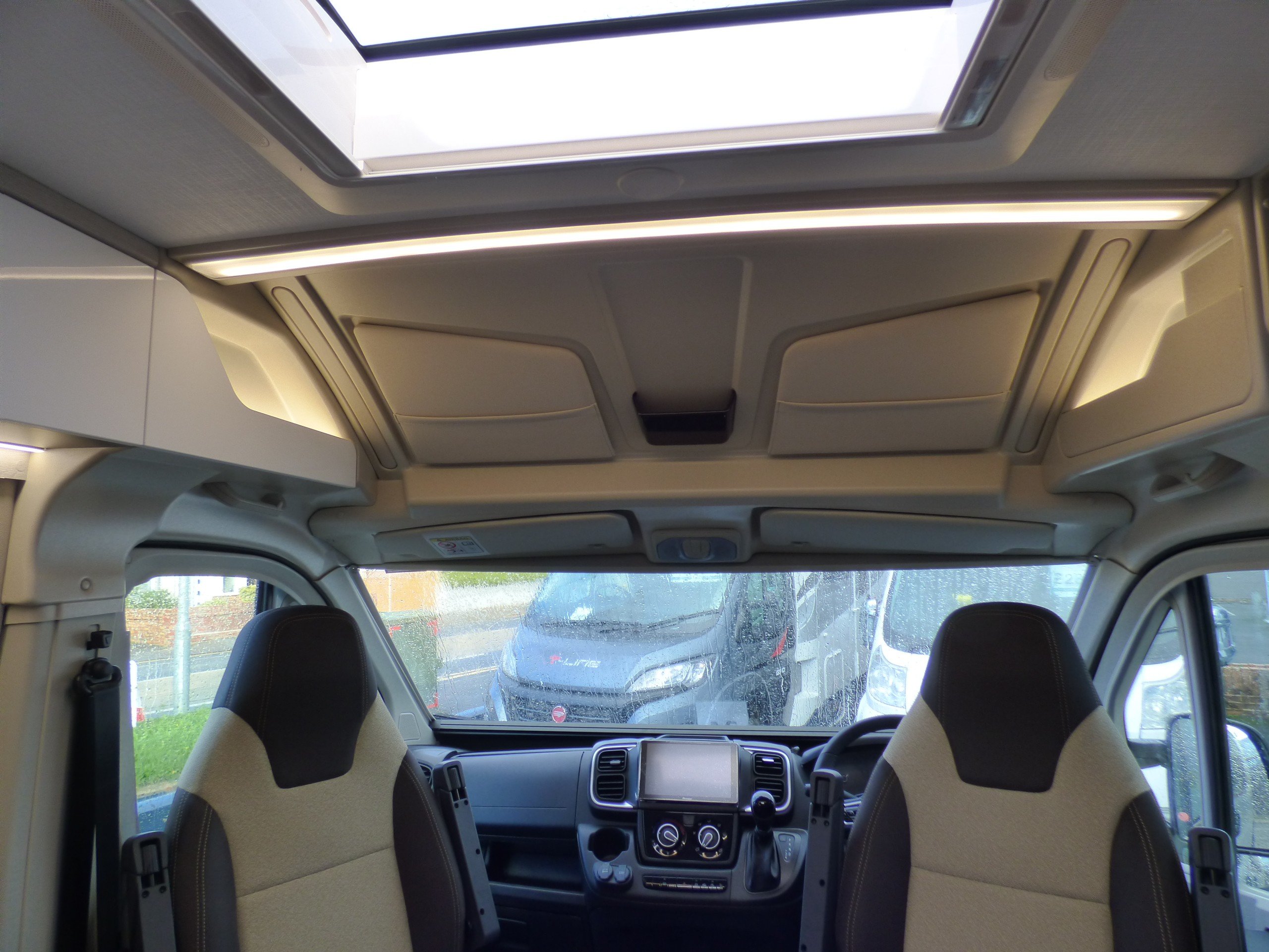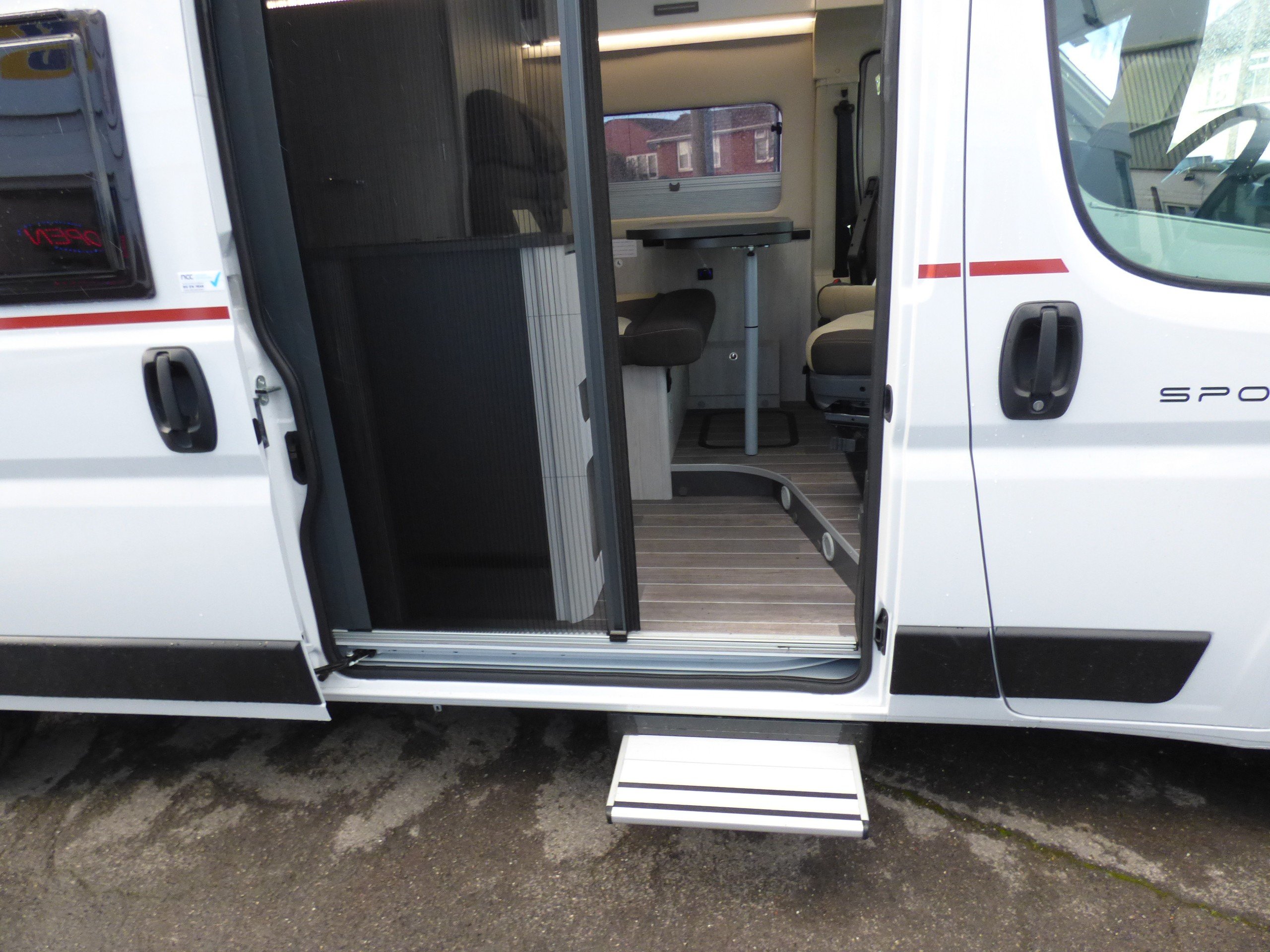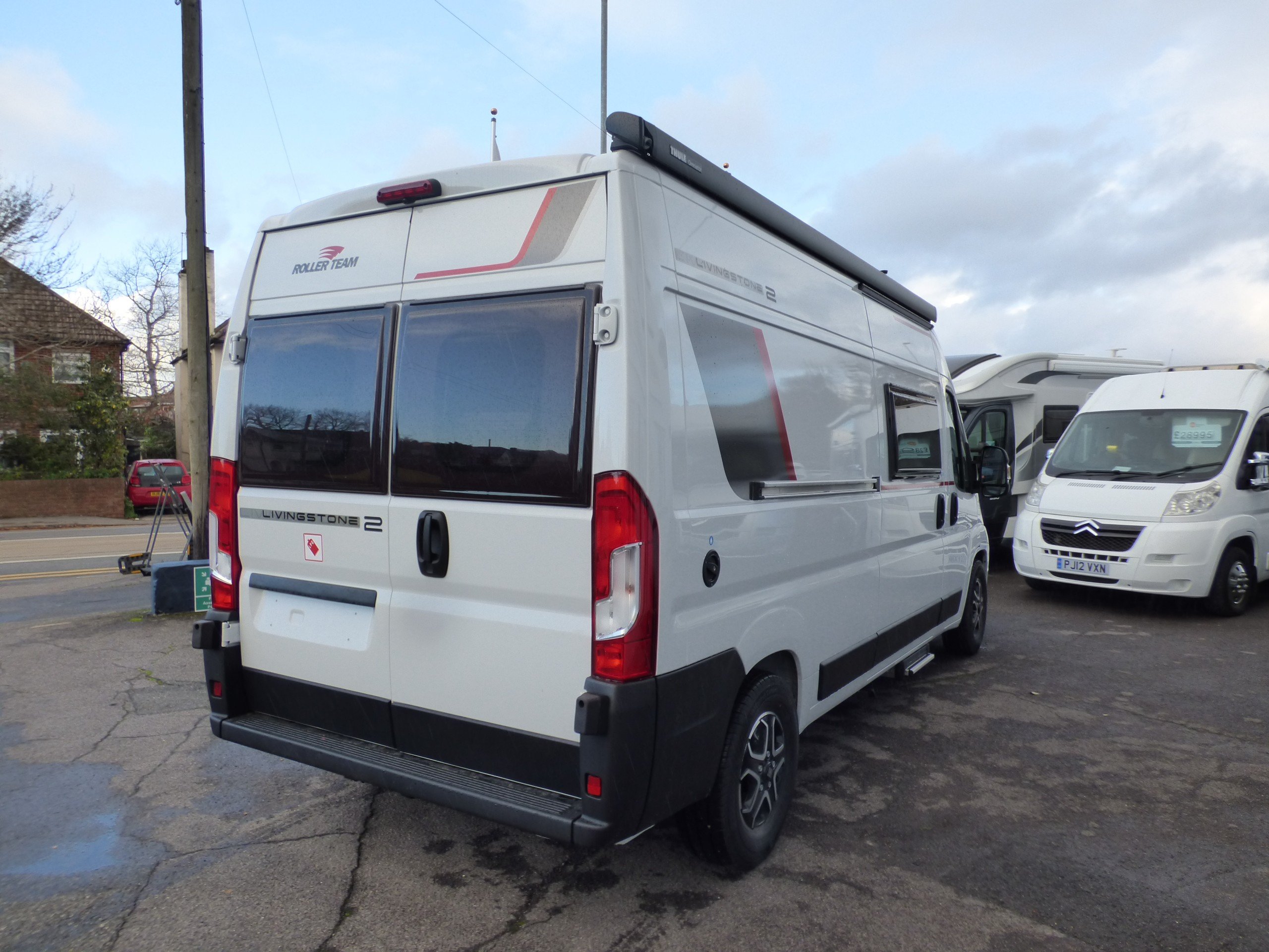 Step inside the Livingstone 2 Sport and enter a world of refined comfort and practicality. Whether you’re exploring rugged coastlines or serene countryside, this campervan transforms every trip into a chic, unforgettable adventure, inviting you to discover the joy of the journey with sophistication and ease. Based on the Fiat Ducato chassis with 140bhp engine and 8 speed automatic transmission, the Livingstone 2 Sport is laid out for 4 to travel in comfort with the front seats swivelling to form a dinette and the side kitchen fitted with a 90l dual access fridge, single gas burner hob and a gas oven. Opposite the bathroom features a folding door and fold away sink above a cassette type toilet and a wet room style shower cubicle. The rear transverse bed is a good size double and folds away enabling larger items, bikes etc. to be carried. Ample cupboard space throughout and heating is via a Webasto diesel system with dual fuel water heating. Other features of this Livingstone 2 Sport include: Alloy wheels, Pioneer infotainent/sat nav, wind out awning, solar panel, pleated cab blinds, electric step and the latest Fiat cab. L. 5.99m, W. 2.05m, H, 2.85m, 3,500kg. 3 berth, 4 seat belts. Delivery Miles.