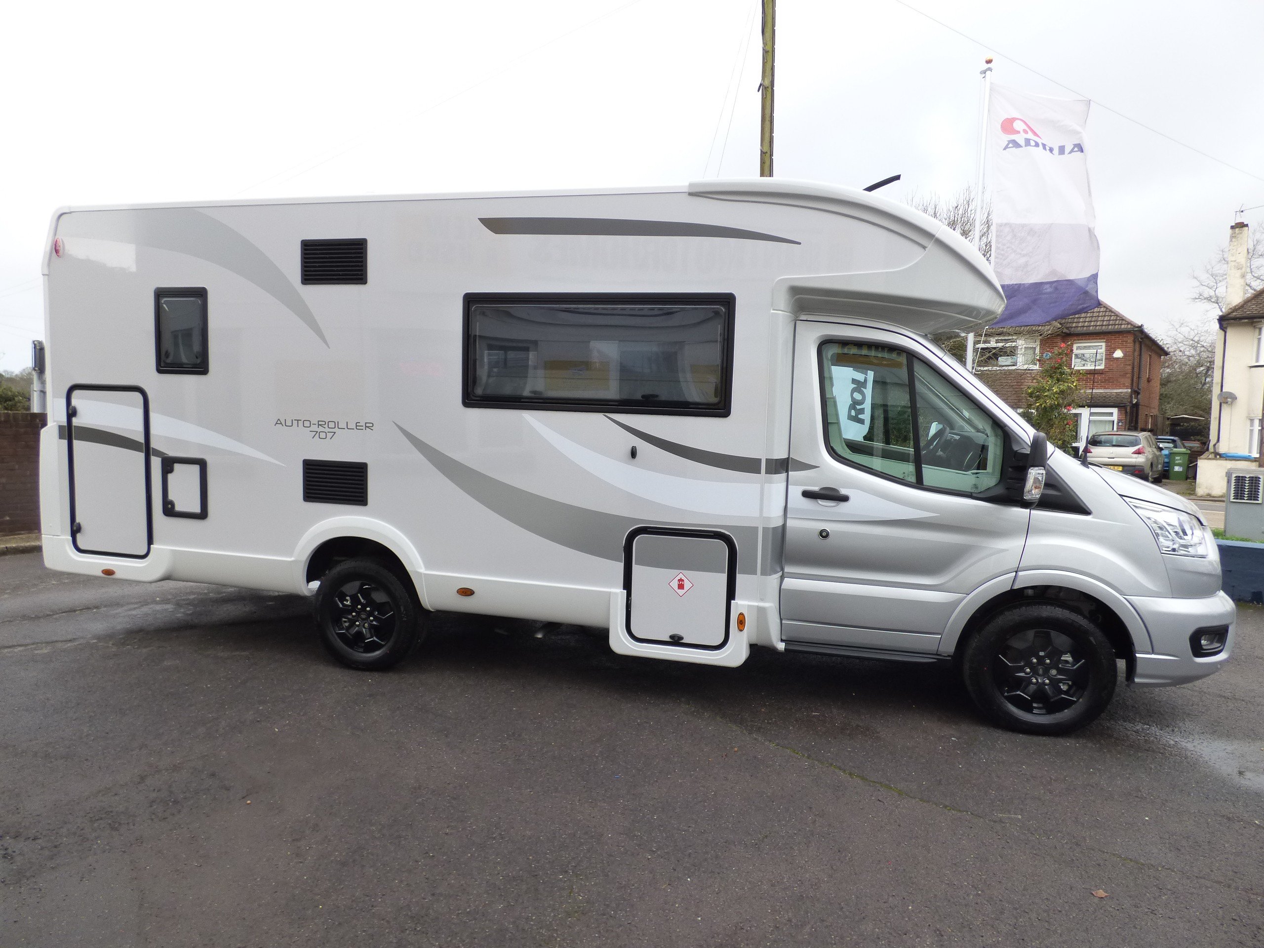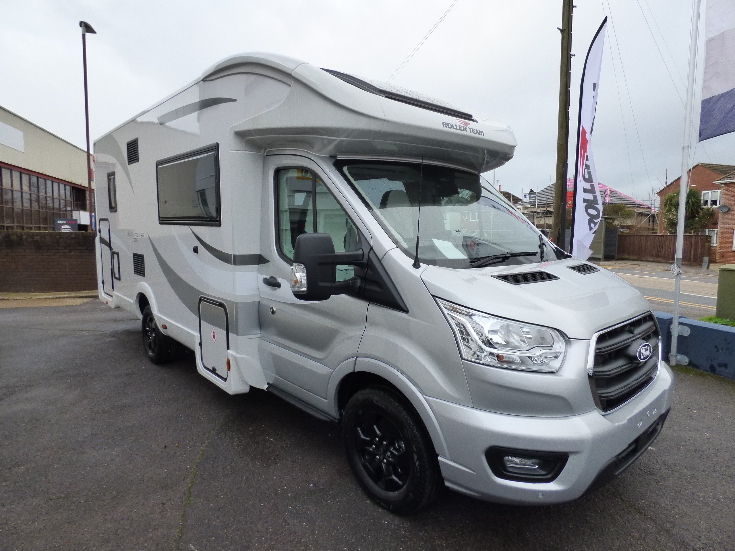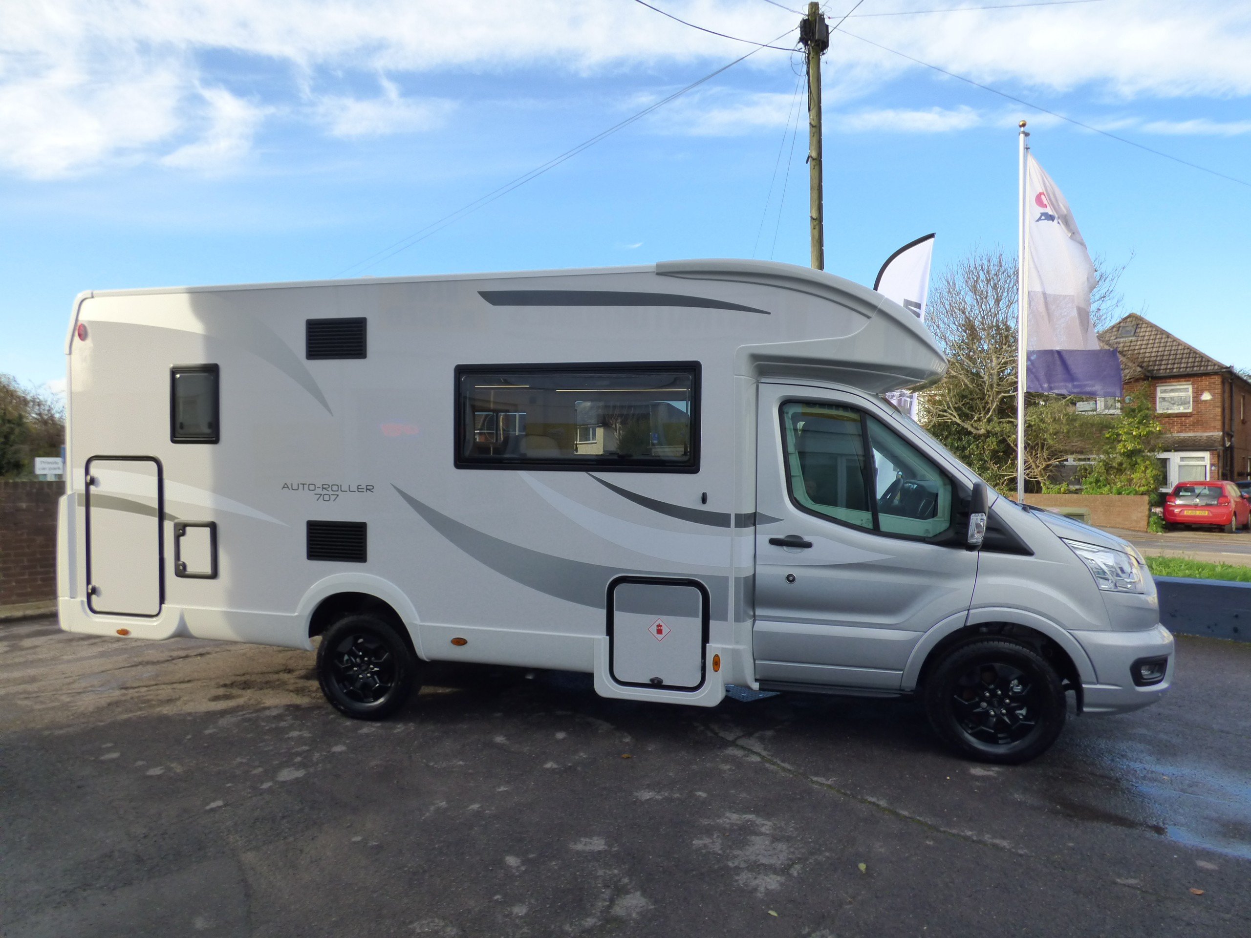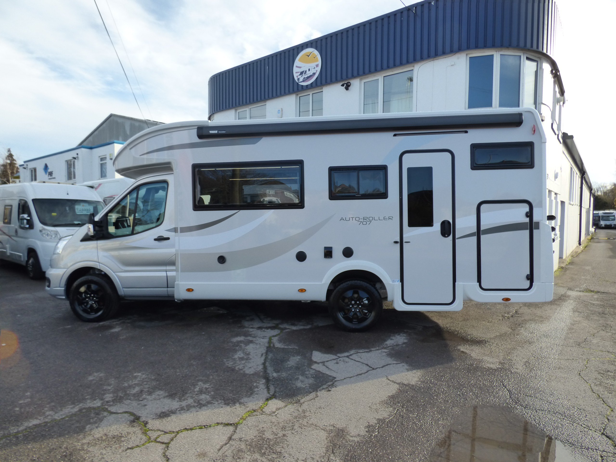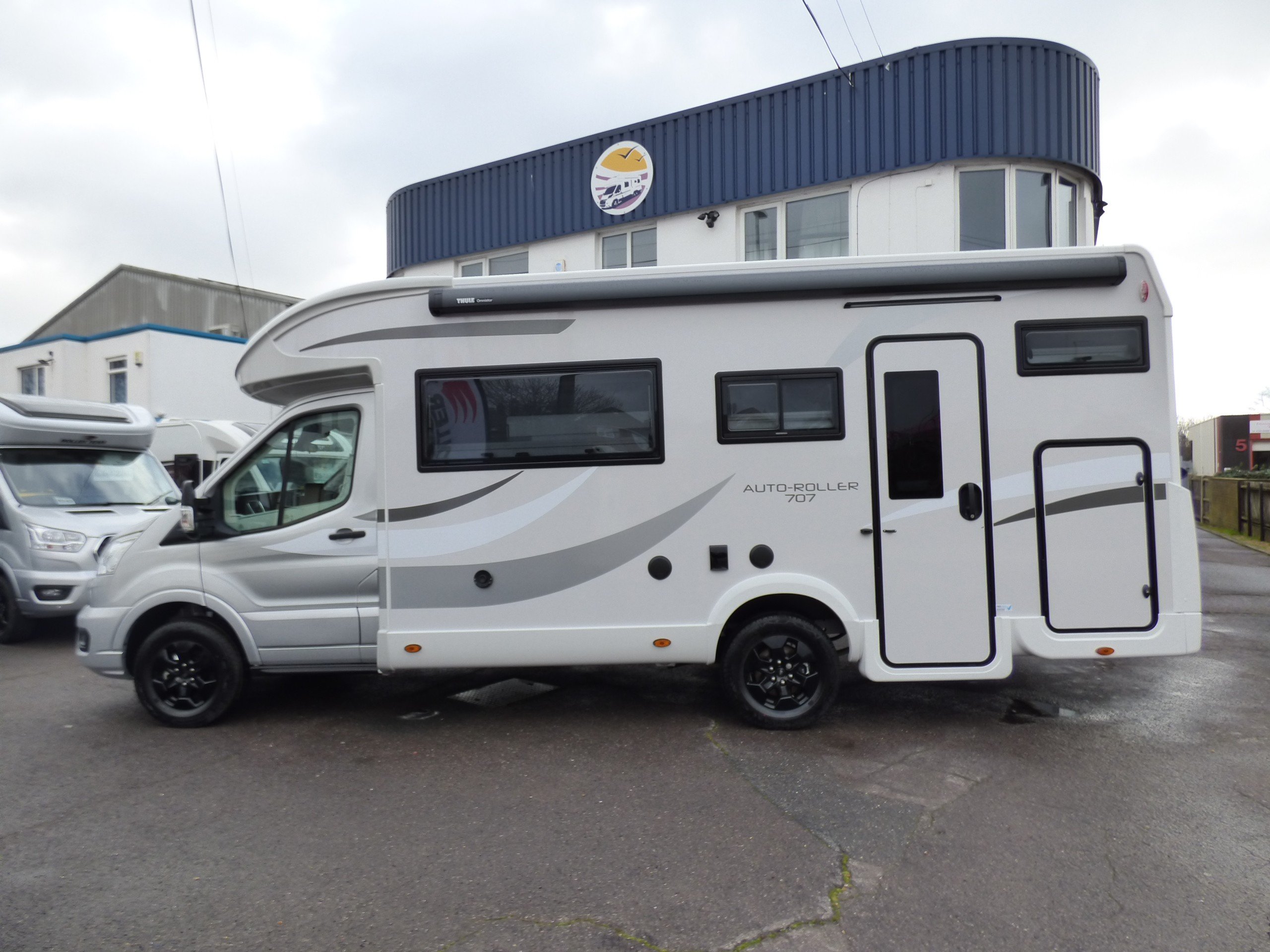 Brand New 2026 model Auto-Roller 707 in stock now. Based on the popular Ford chassis with Driver's Pack inc. 165bhp motor and 8 speed automatic transmission, the 707 has long been a family favourite and has won awards for it's layout and design. The lower of the rear bunk beds can be flipped up for extra garage space, whilst the lounge converts to two further beds with an electric elevating double bed over. The kitchen to the side is equipped with a gas oven and grill, 3 burner gas hob and large Dometic fridge/freezer. Opposite, the bathroom features a shower cubicle, cassette type toilet and a wash hand basin. Heating and hot water is via a Truma dual fuel system and other features for this Auto-Roller 707 include:Thule wind out awning, Thule 4 bike rack, reversing camera, pleated cab blinds, new Ford 12" screen infotainment system, front parking sensors, alloy wheels, 200w solar panel, external shower & BBQ points and 4G WiFi. L. 7.12m, W. 2.35m, H. 2.95m, 3,500kg. 6 berth, 6 seatbelts, Delivery mileage.