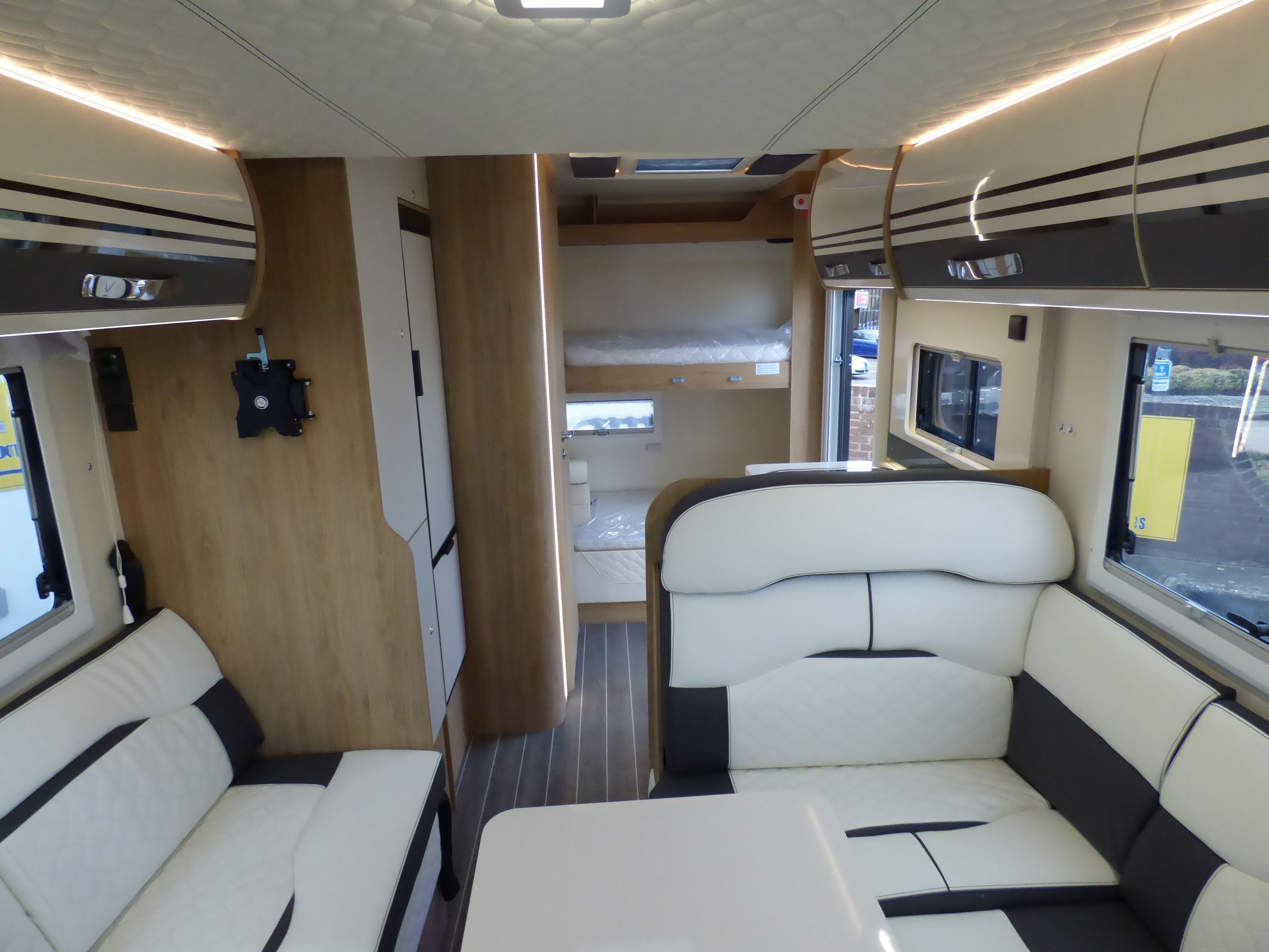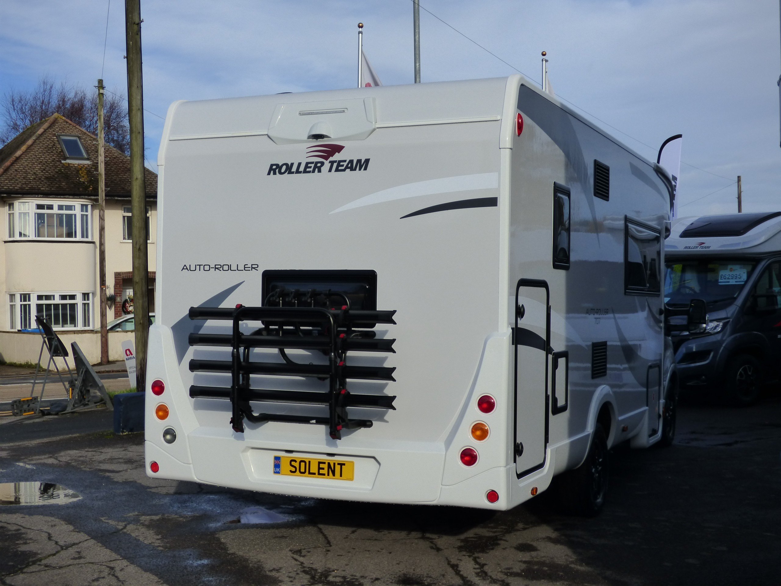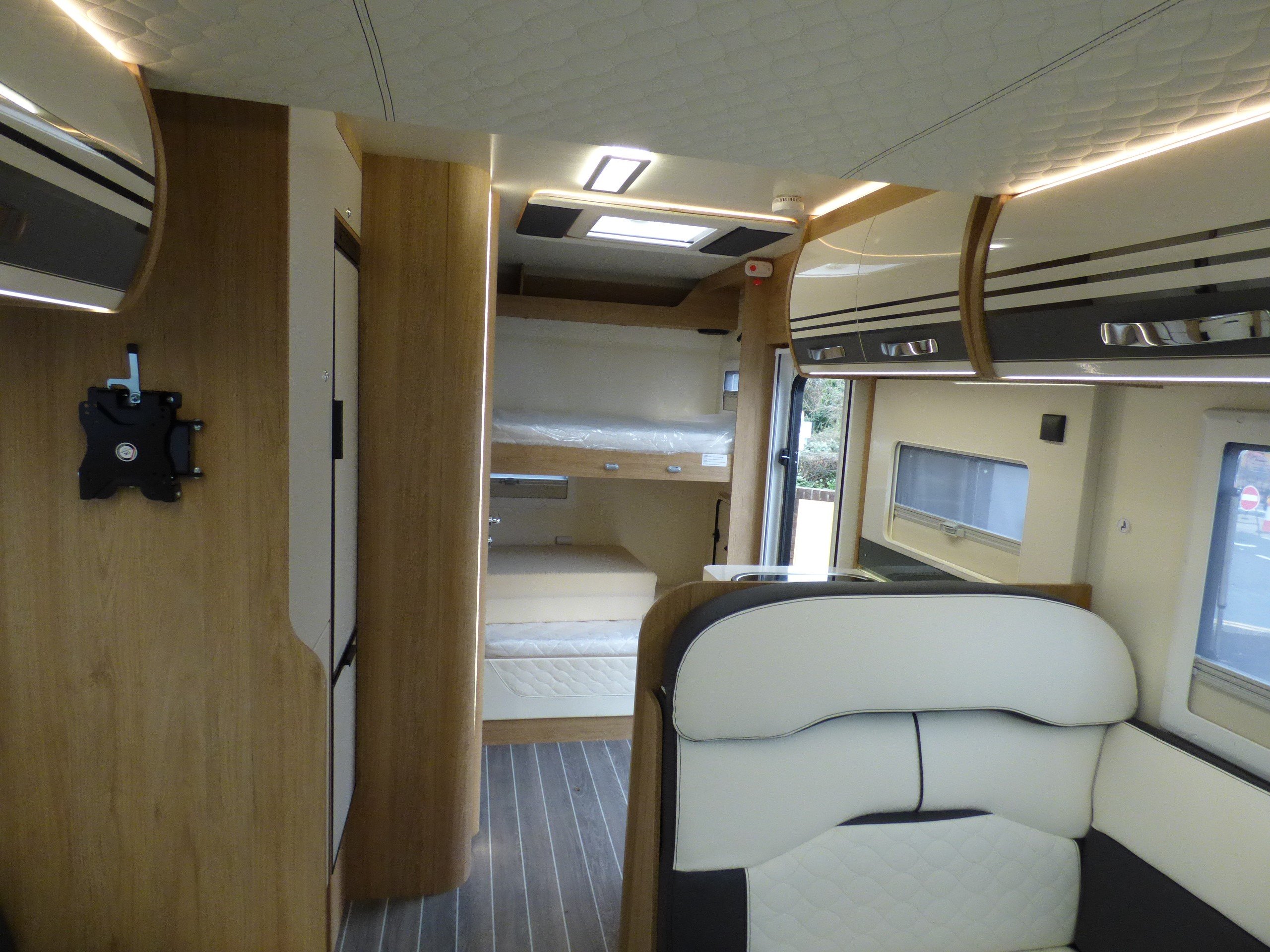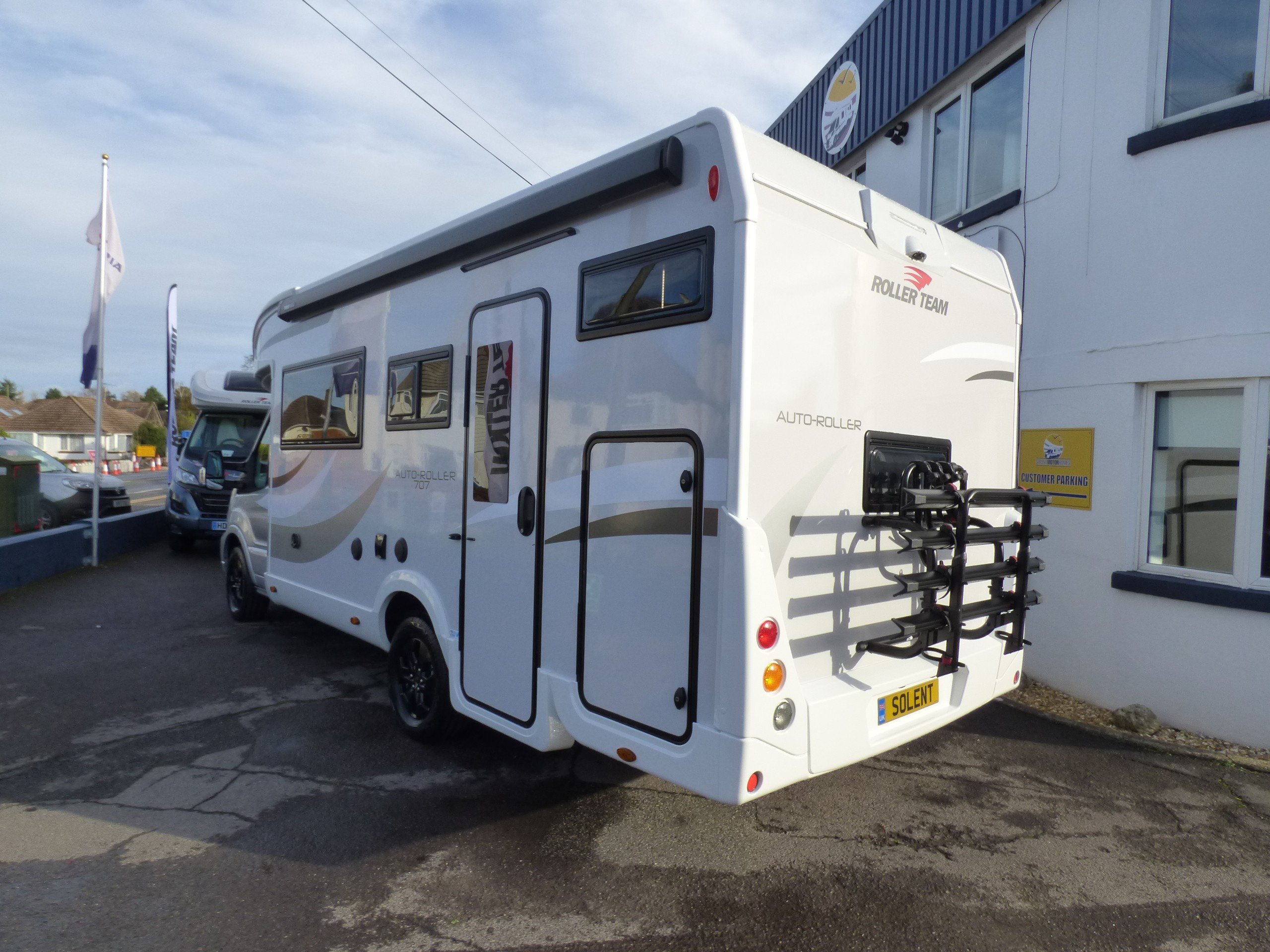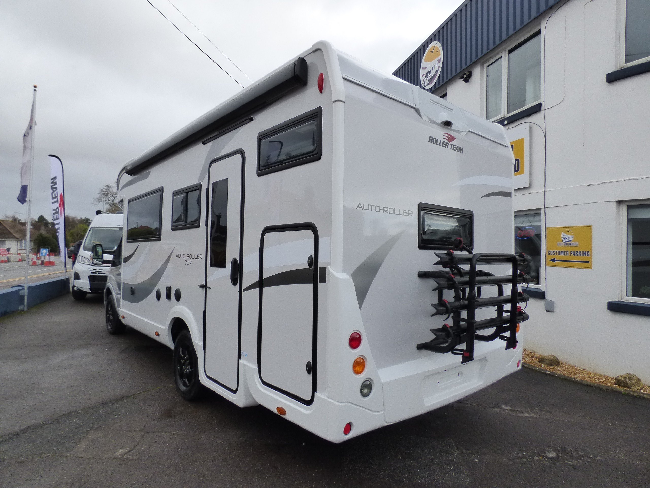 Brand New 2026 model Auto-Roller 707 in stock now. Based on the popular Ford chassis with Driver's Pack inc. 165bhp motor and 8 speed automatic transmission, the 707 has long been a family favourite and has won awards for it's layout and design. The lower of the rear bunk beds can be flipped up for extra garage space, whilst the lounge converts to two further beds with an electric elevating double bed over. The kitchen to the side is equipped with a gas oven and grill, 3 burner gas hob and large Dometic fridge/freezer. Opposite, the bathroom features a shower cubicle, cassette type toilet and a wash hand basin. Heating and hot water is via a Truma dual fuel system and other features for this Auto-Roller 707 include:Thule wind out awning, Thule 4 bike rack, reversing camera, pleated cab blinds, new Ford 12" screen infotainment system, front parking sensors, alloy wheels, 200w solar panel, external shower & BBQ points and 4G WiFi. L. 7.12m, W. 2.35m, H. 2.95m, 3,500kg. 6 berth, 6 seatbelts, Delivery mileage.