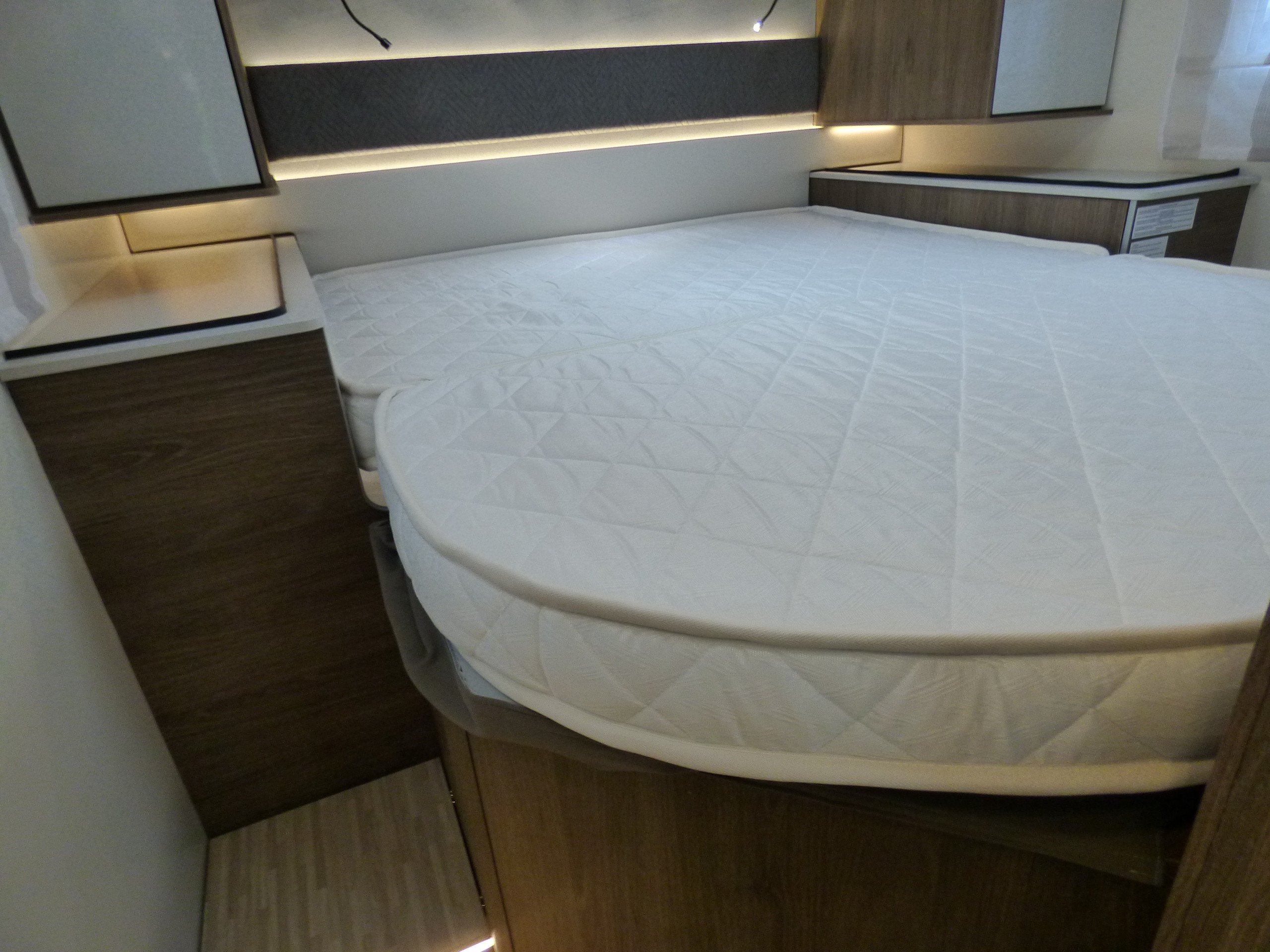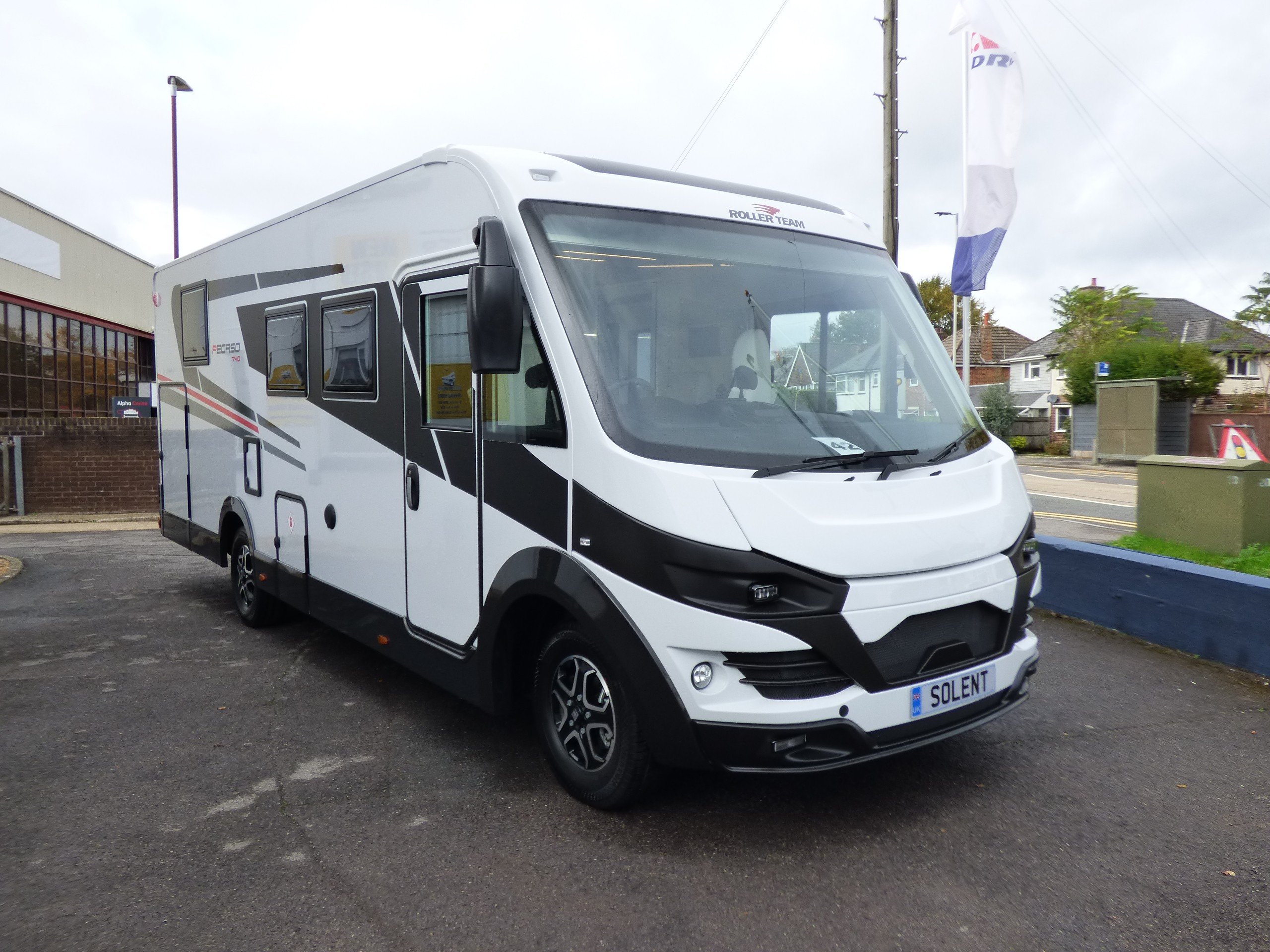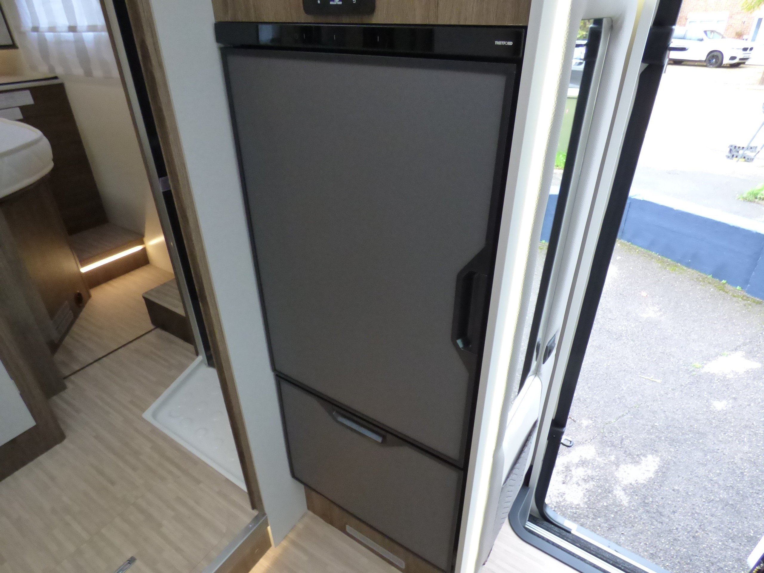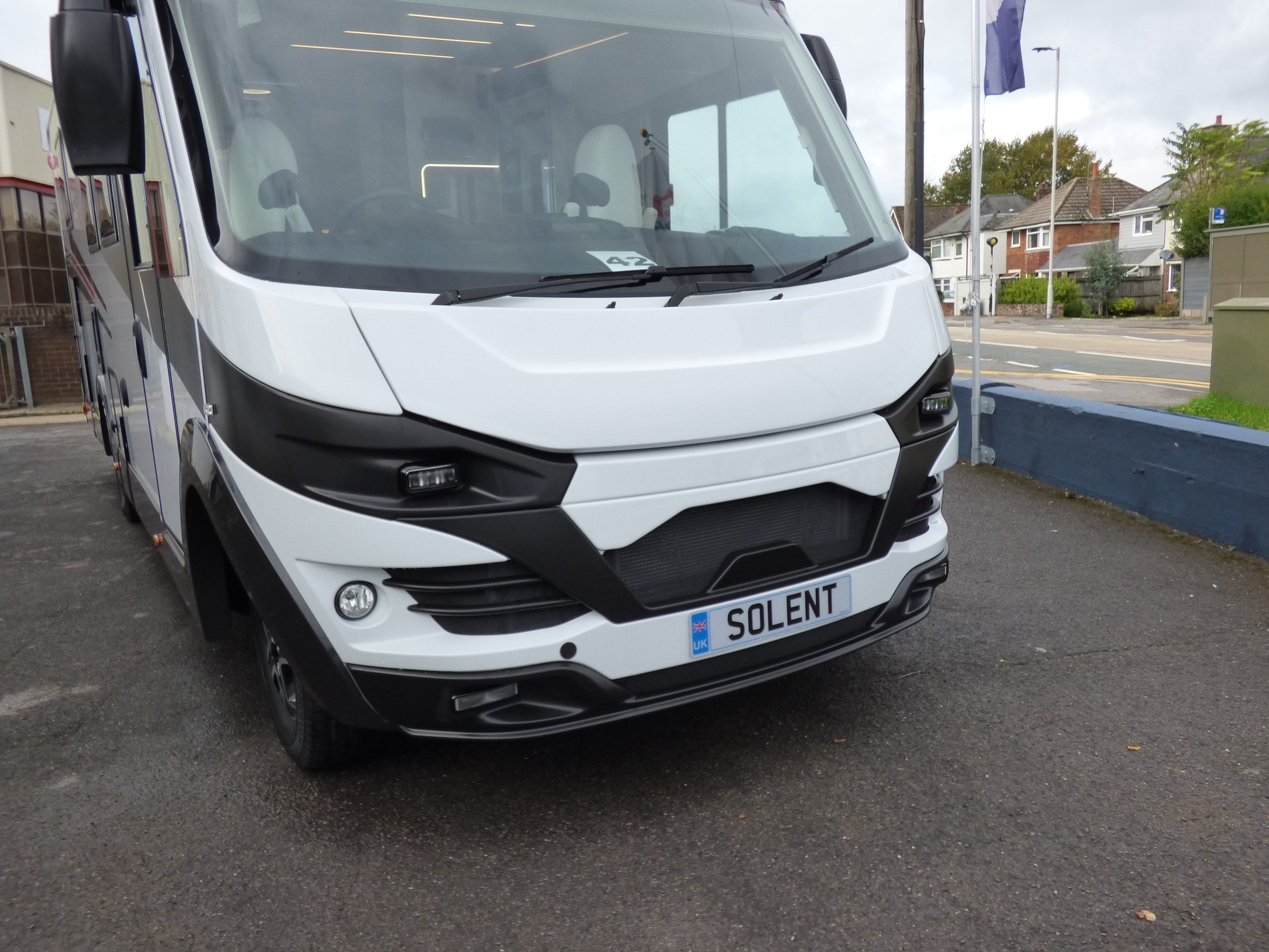The new and improved 2026 model Pegaso 740 is in stock now. Based on the Fiat Ducato chassis with 140bhp engine and 8 speed automatic transmission, the latest version of the popular Pegaso 740 model has a host of new features including a larger front bed, revised lounge layout, larger bathroom and and all new solar arrangement for off grid compatibiltiy. The spacious lounge area has swivel front seats that turn to face opposing sofas with a folding table. The drop down bed above is able to be used at the same time as the lounge and a new kitchen sits behind the lounge. Now fitted with a compressor fridge/freezer and microwave, the traditional gas hob and oven remain. The bathroom has a separate shower cubicle, central wash basin and cassette toilet along with clever cupboard space and can be shut off from both the lounge and rear bedroom. The rear bedroom has an electrically adjustable island bed with wardobes either side and wall space for a TV. Other features of this Pegaso 740 include: Thule wind out awning, Twin 200w Solar panels with twin leisure batteries, carpets, Pioneer infotainment system, Truma heating/hot water, Fiamma bike rack and reversing camera. 4 berth, 4 seatbelts, L. 7.41m, W. 2.35m, H 2.95m, 3,500kg, Delivery Miles.