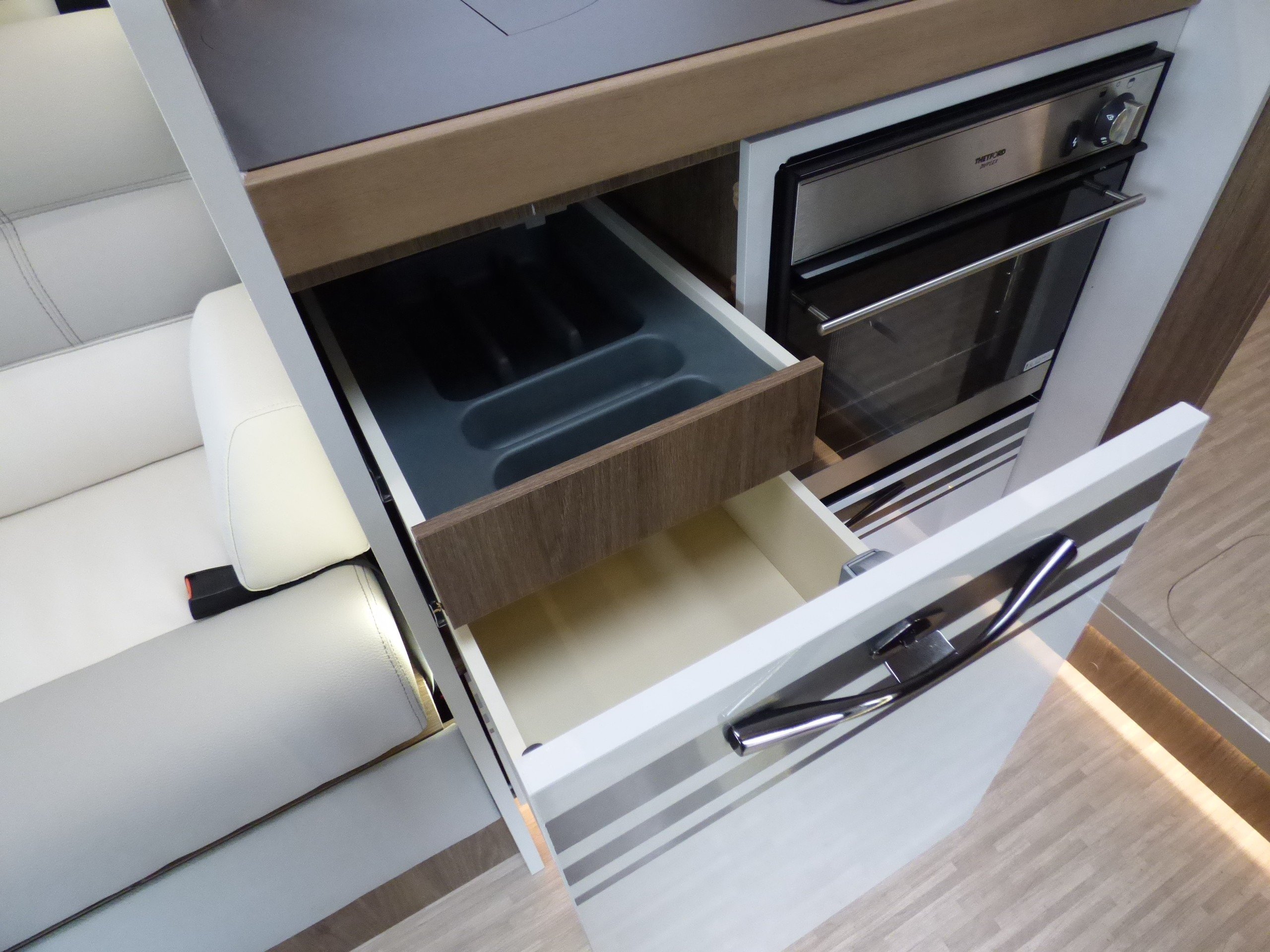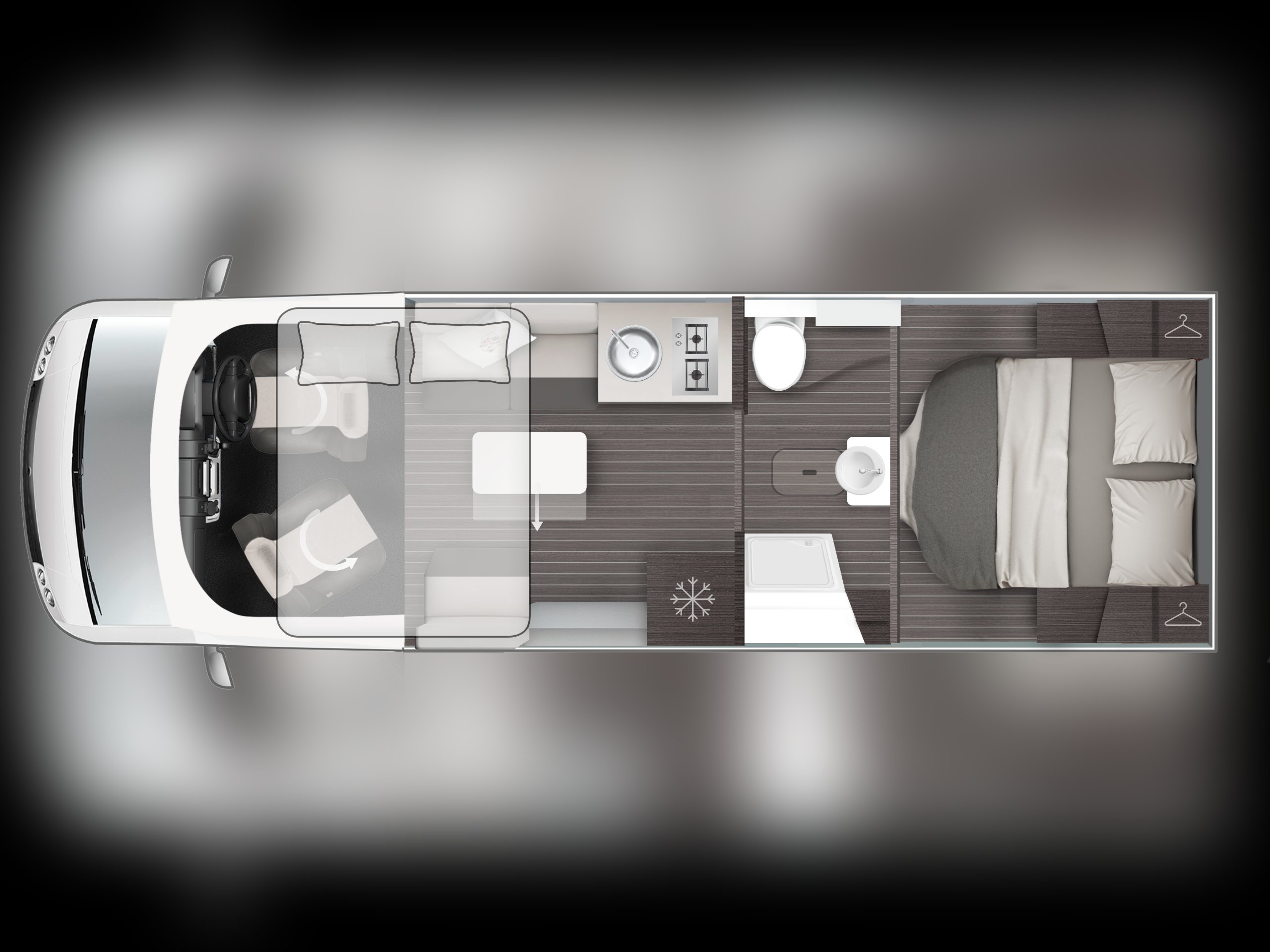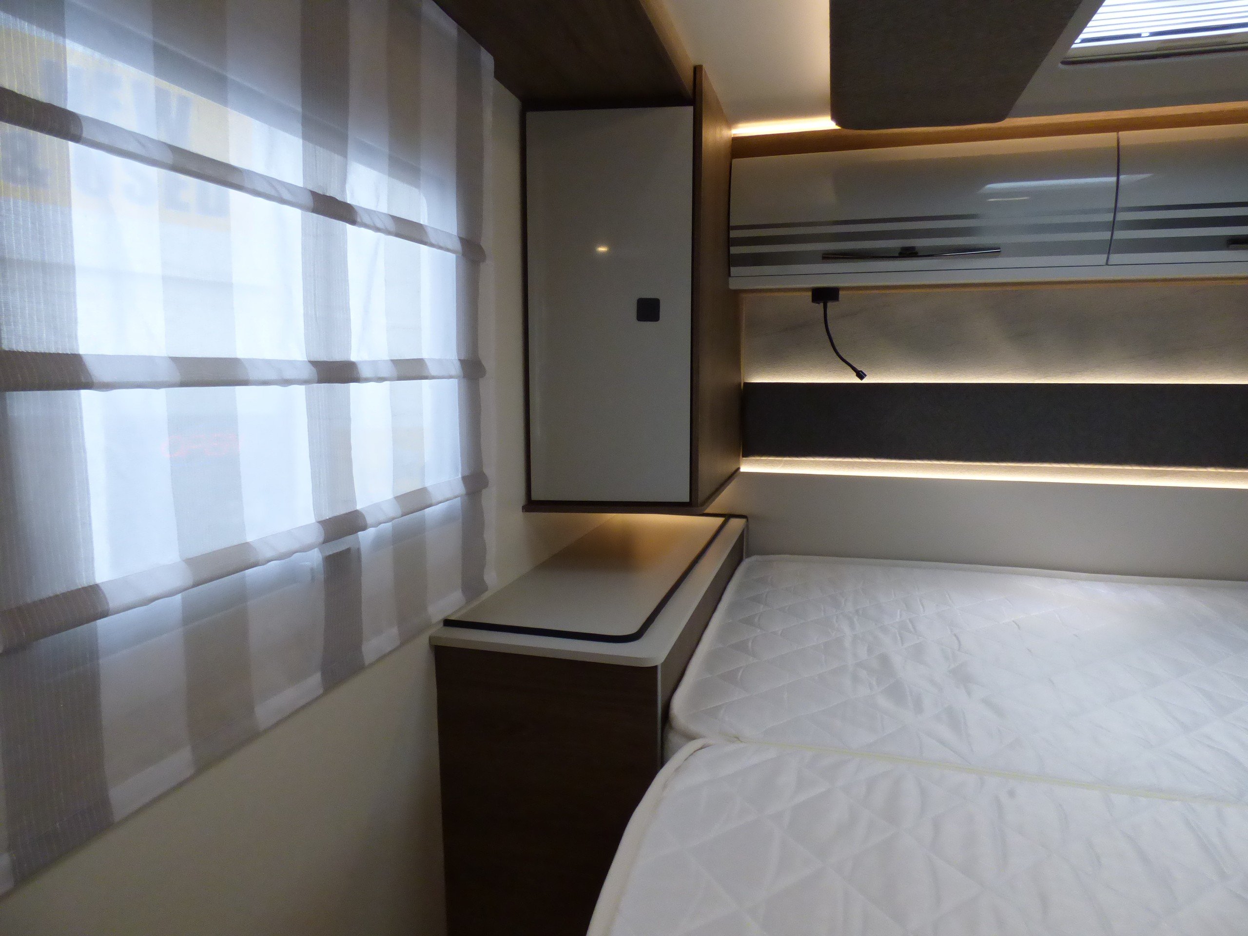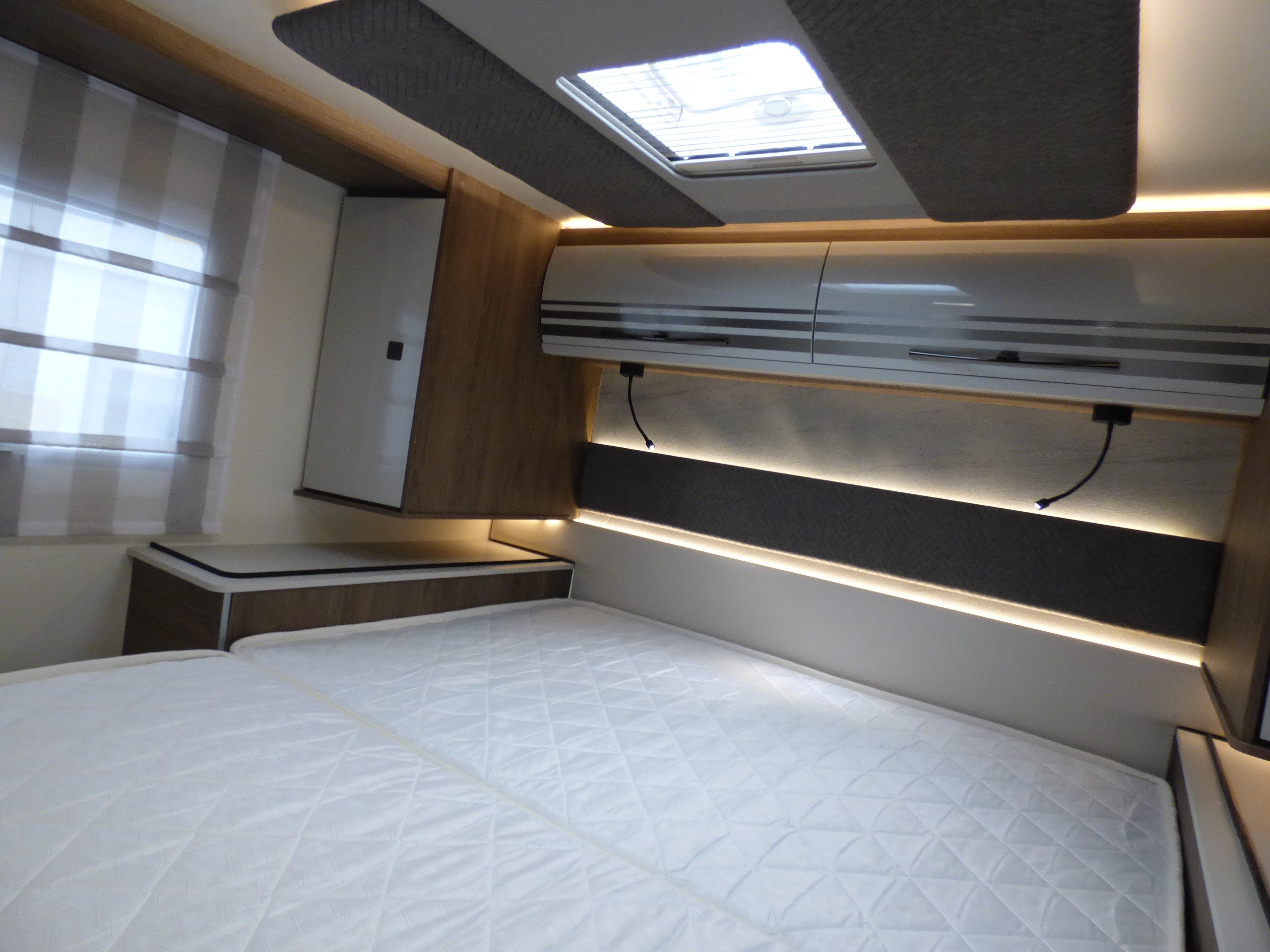 The new and improved 2026 model Pegaso 740 is in stock now. Based on the Fiat Ducato chassis with 140bhp engine and 8 speed automatic transmission, the latest version of the popular Pegaso 740 model has a host of new features including a larger front bed, revised lounge layout, larger bathroom and and all new solar arrangement for off grid compatibiltiy. The spacious lounge area has swivel front seats that turn to face opposing sofas with a folding table. The drop down bed above is able to be used at the same time as the lounge and a new kitchen sits behind the lounge. Now fitted with a compressor fridge/freezer and microwave, the traditional gas hob and oven remain. The bathroom has a separate shower cubicle, central wash basin and cassette toilet along with clever cupboard space and can be shut off from both the lounge and rear bedroom. The rear bedroom has an electrically adjustable island bed with wardobes either side and wall space for a TV. Other features of this Pegaso 740 include: Thule wind out awning, Twin 200w Solar panels with twin leisure batteries, carpets, Pioneer infotainment system, Truma heating/hot water, Fiamma bike rack and reversing camera. 4 berth, 4 seatbelts, L. 7.41m, W. 2.35m, H 2.95m, 3,500kg, Delivery Miles.
