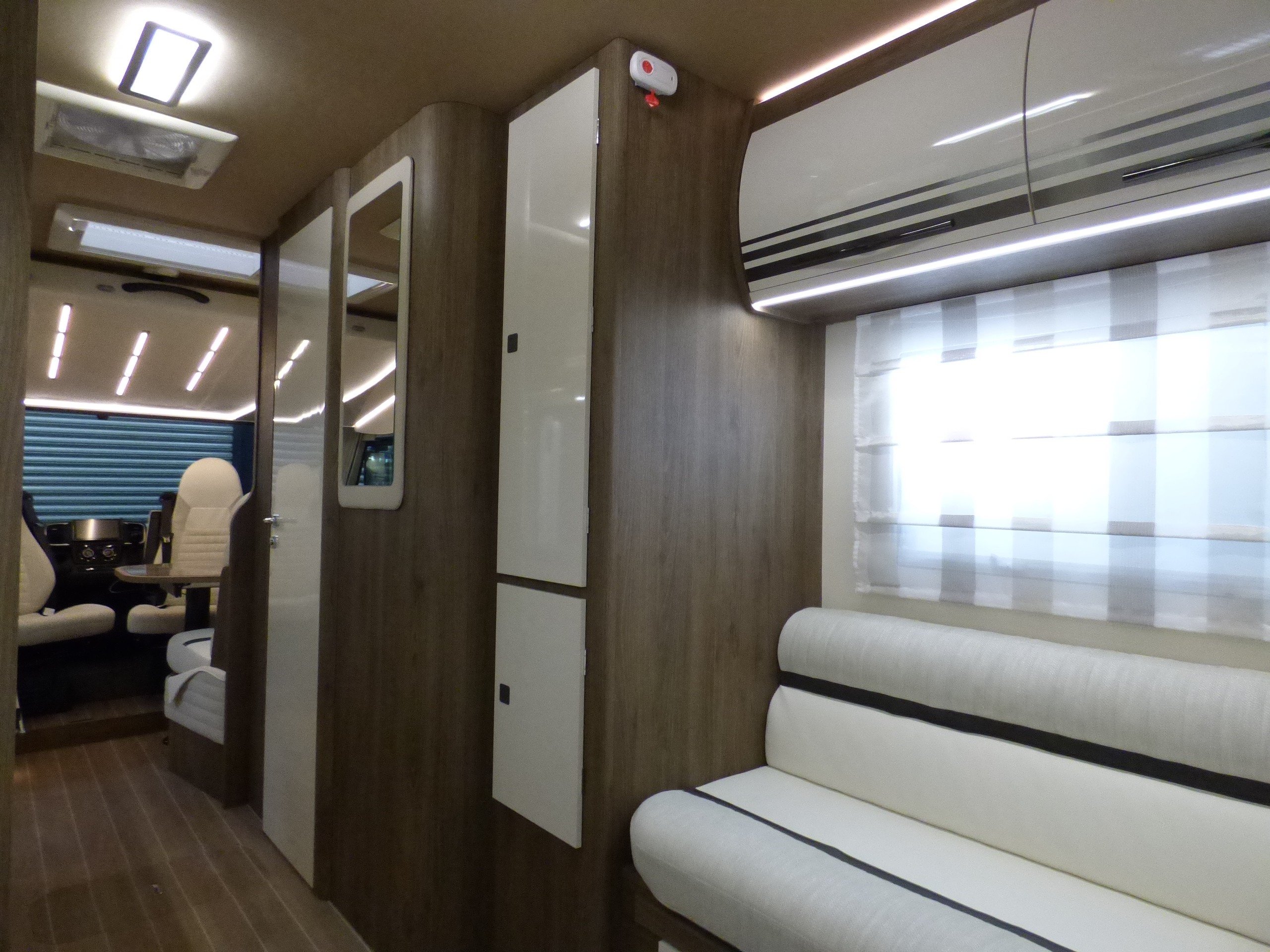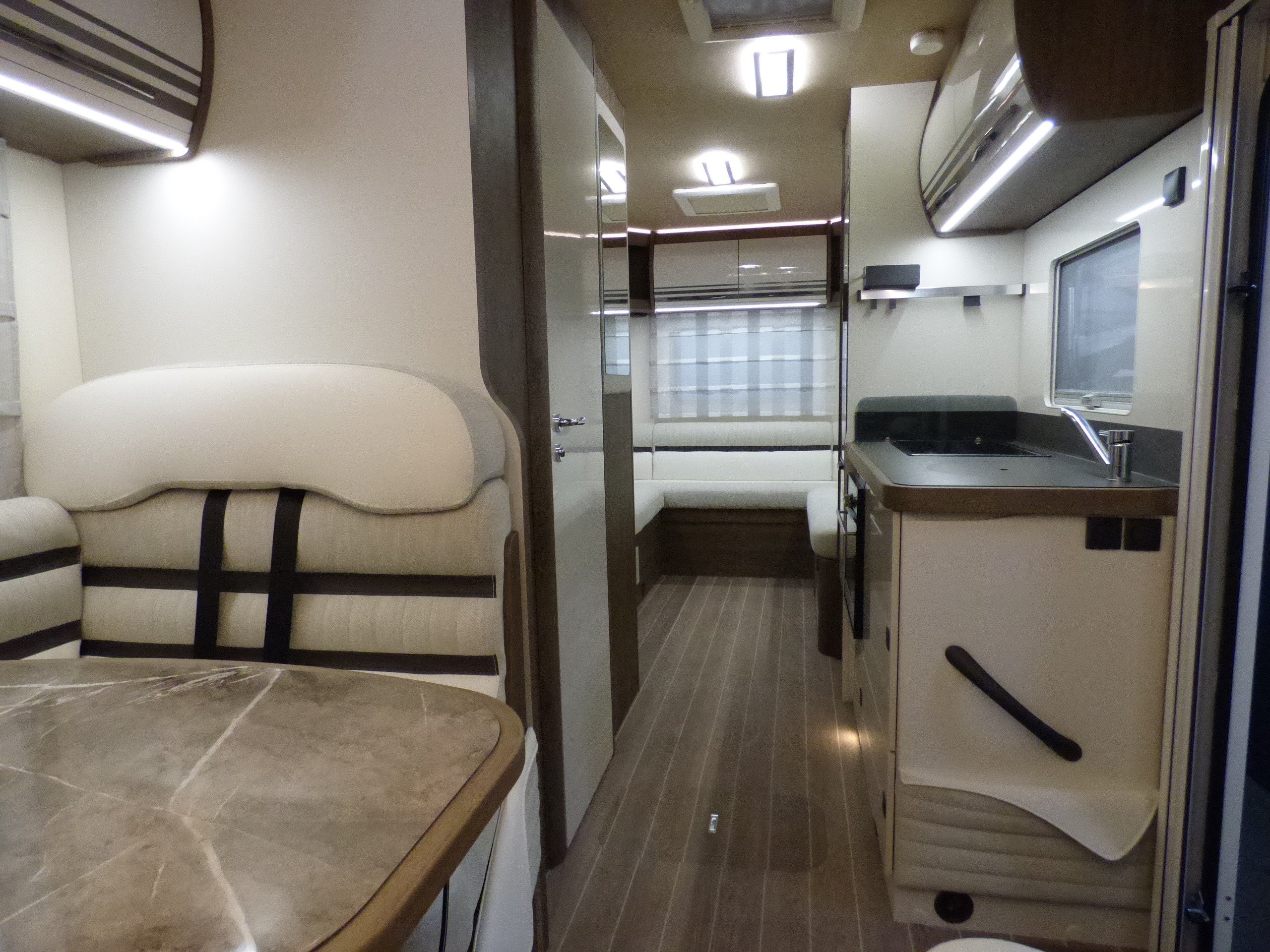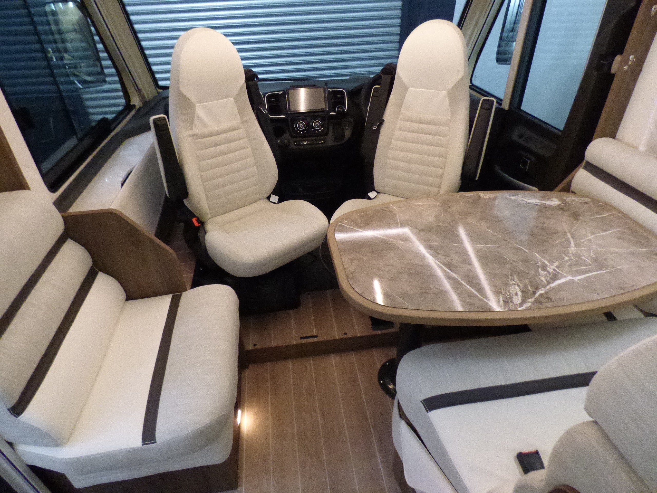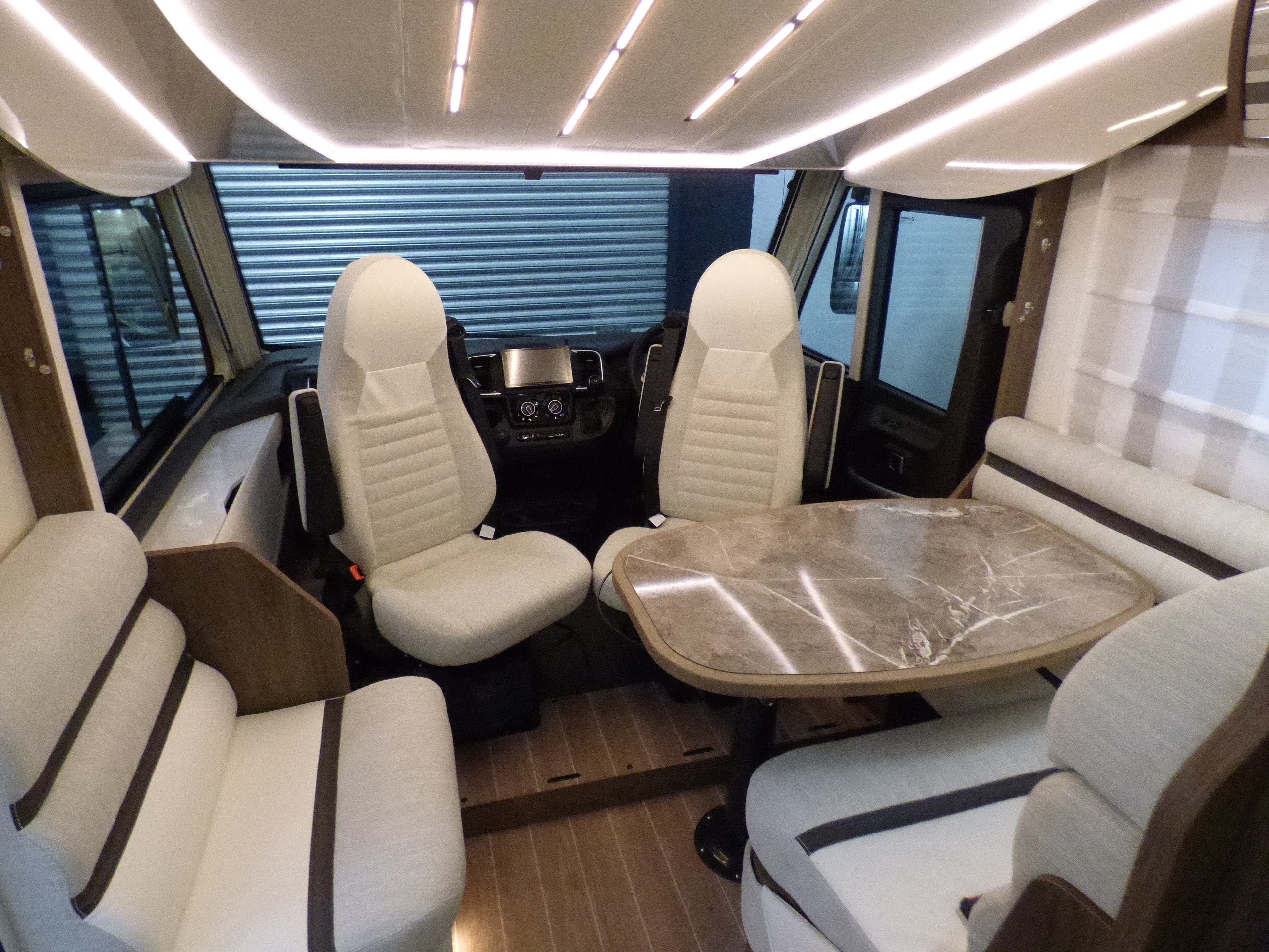 Brand new 2025 model Pegaso 745 automatic in stock now. The Pegaso 745 has been a popular addition to the range since it was introduced in 2019. Based on the Fiat Ducato chassis with 140bhp engine and 8 speed automatic transmission, the end lounge layout is a hit with families and couples as it provides a light and airy living area whilst keeping the dining area free. A double bed swings down above the cab area and the rear lounge turns into a further double bed quickly with a pull out bed system. The kitchen is located centrally to one side and features a 3 burner gas hob, gas oven/grill and a good size fridge/freezer. The bathroom opposite has a shower cubicle, cassette type toilet and wash basin. Heating and hot water is provided by a Truma dual fuel system and other features on this Pegaso 745 include: New Pioneer Sat Nav/Infotainment centre, Solar panel, Twin reversing cameras, WiFi, External gas BBQ and shower points, Colour Sat Nav, cab A/C, 4 bike rack and carpets. L. 7.41m, W. 2.35M, H. 2.95M, 3,500kg, 4 berth, 4 seat belts. Delivery Mileage.