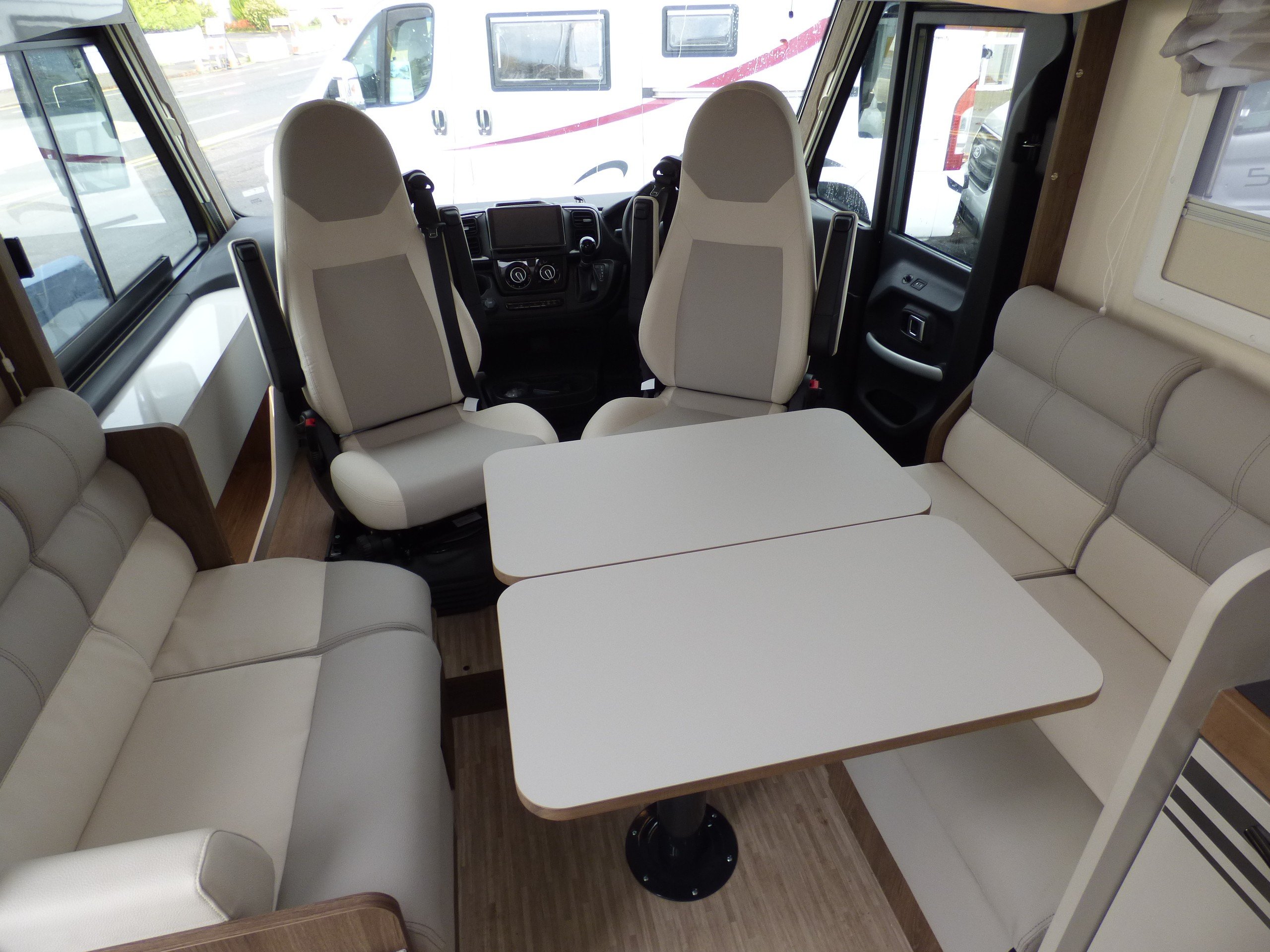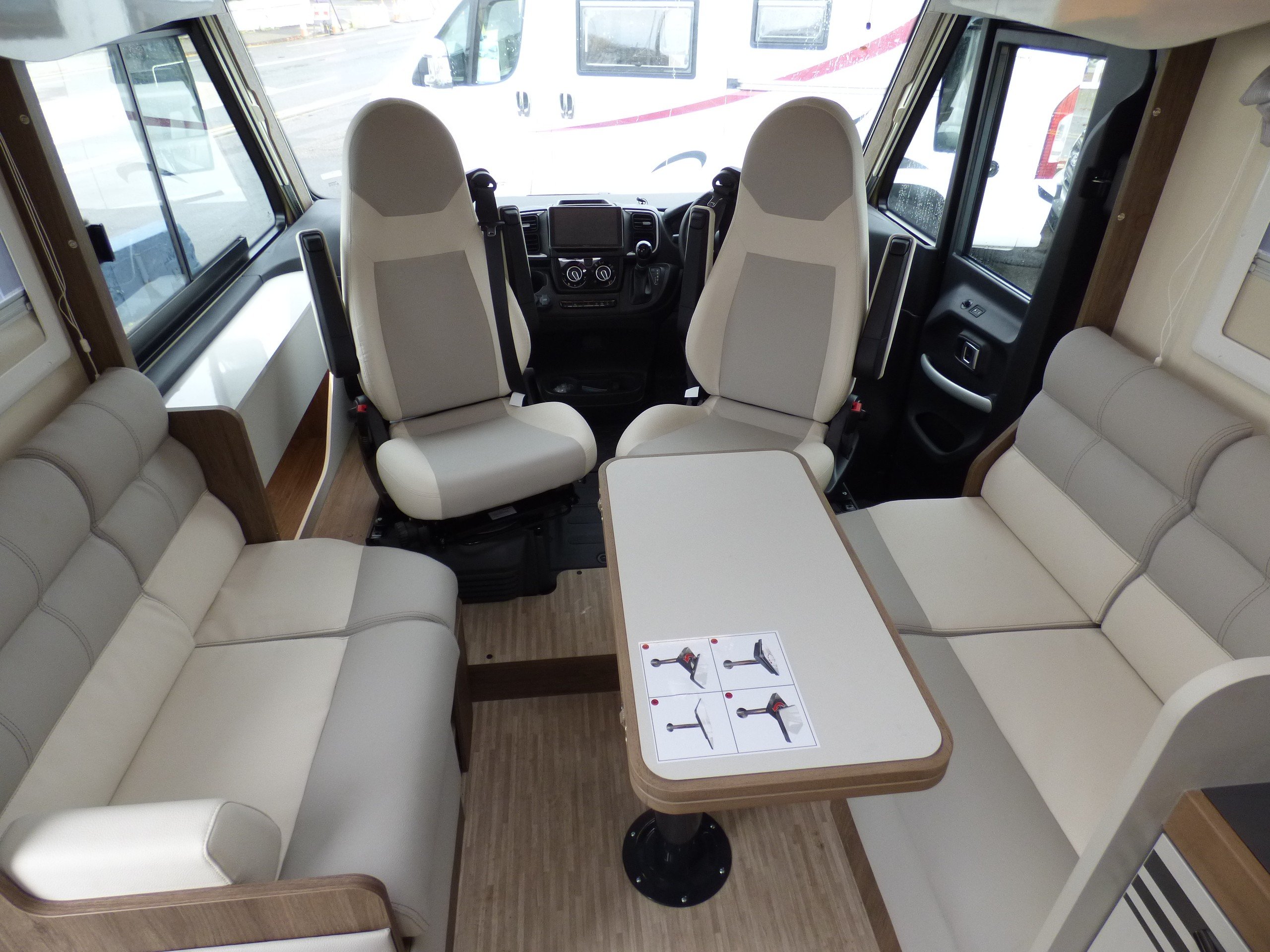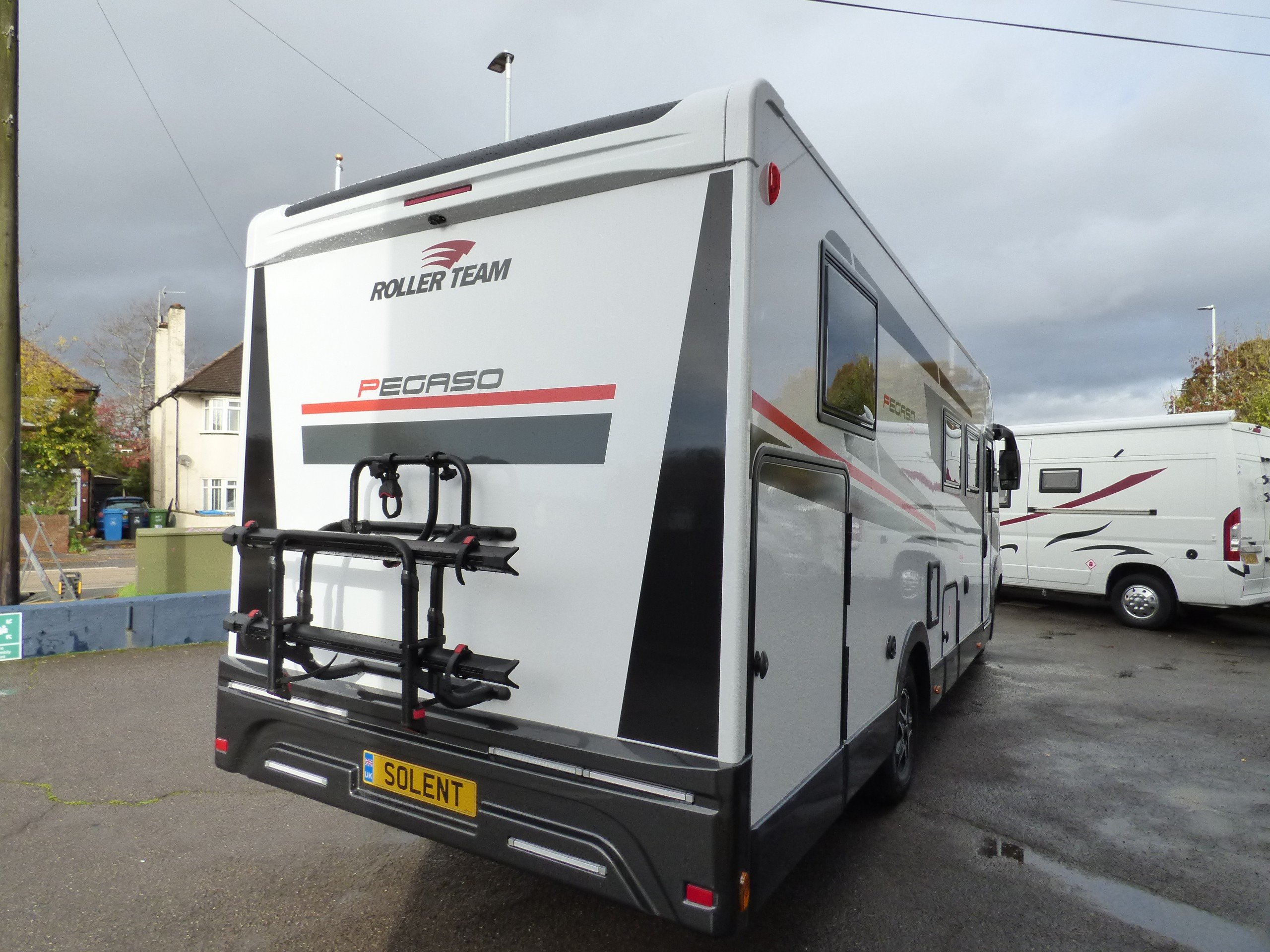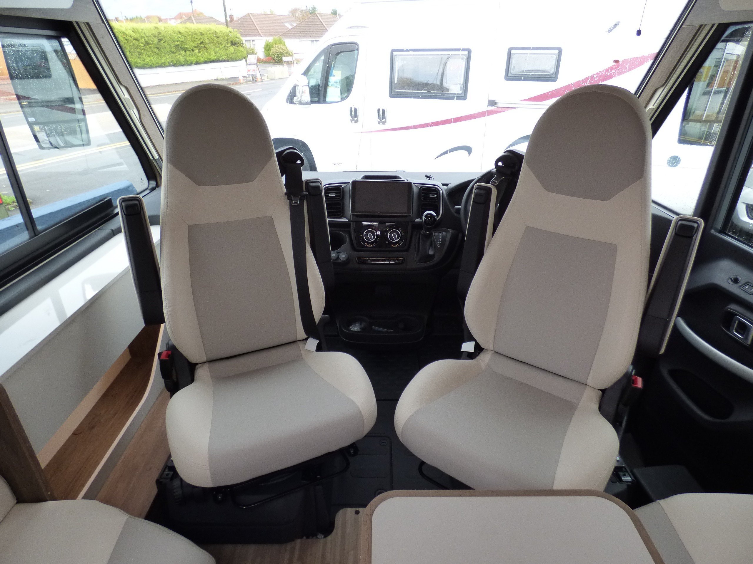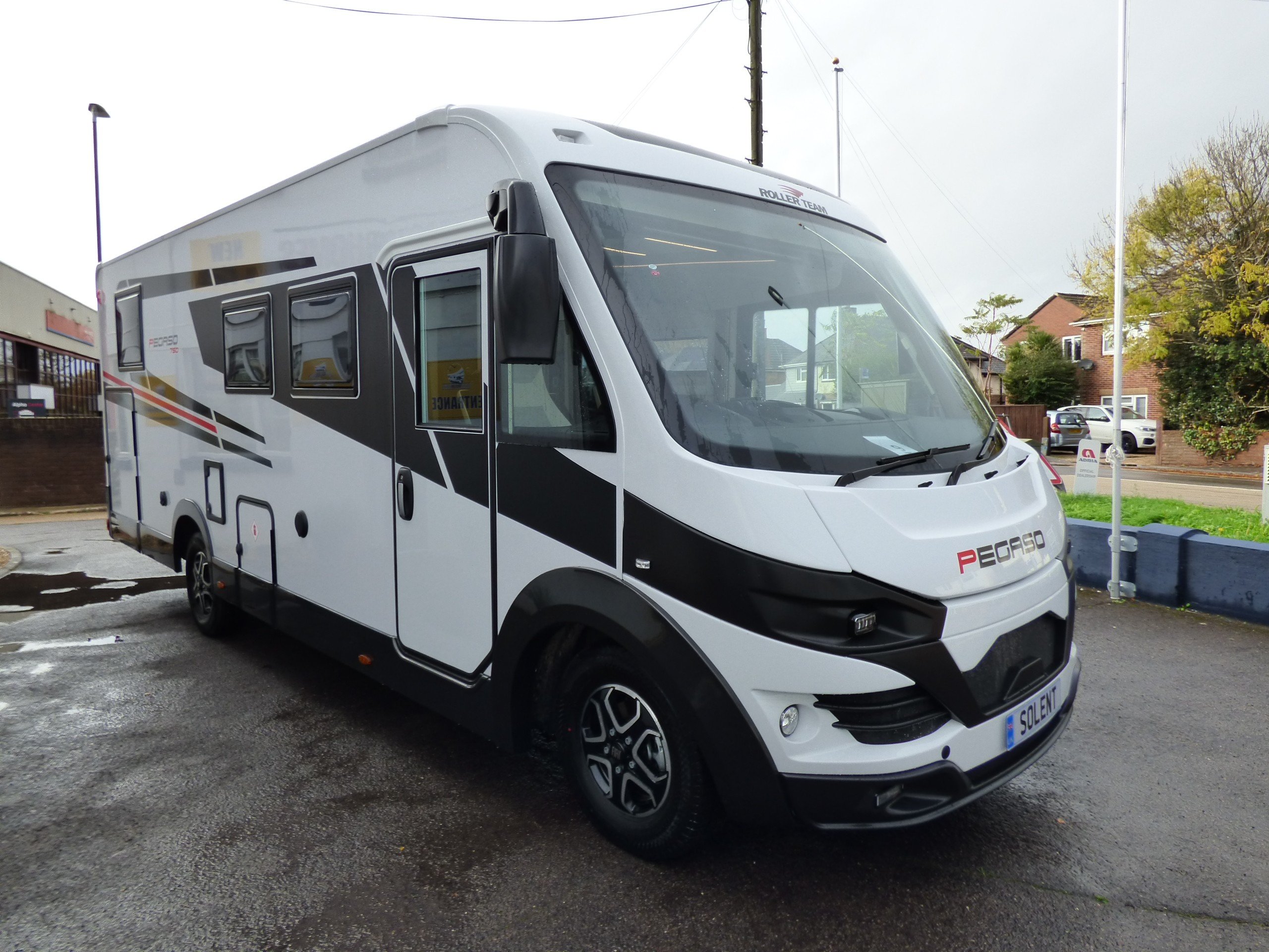 Brand New 2026 Model Pegaso 750 140bhp Automatic in stock now. A Fantastic addition to the Pegaso A Class range, the new 750 model provides a fresh layout with twin rear single beds and a central bathroom arrangement. The lounge area is laid out as two opposing sofas with the front seats swivelling to accommodate 6 with ease. The front seats fold down to allow the front drop down double bed to pull out for evening use, still allowing the lounge to remain in use. The central kitchen is fitted with a gas hob, gas oven/grill and a new compressor fridge/freezer. The bathroom has a separate shower cubicle, cassette type toilet and a wash hand basin. the twin rear beds also have a large storage area under, so this is ideal for families. Heating and hot water is via a Truma dual fuel system and other features for this Pegaso 750 include: Alloy Wheels, Pioneer infotainment system, Twin 200w solar panels with MPPT controllers, Twin leisure batteries, Fiamma bike rack, Thule wind out awning, External BBQ and Shower points, WiFi, pleated cab blinds, carpets and ISOfix child seat fixings. 4 berth, 4 seat belts, L. 7.41m, W. 2.35m, H. 2.95m, 3,500kg, delivery miles.