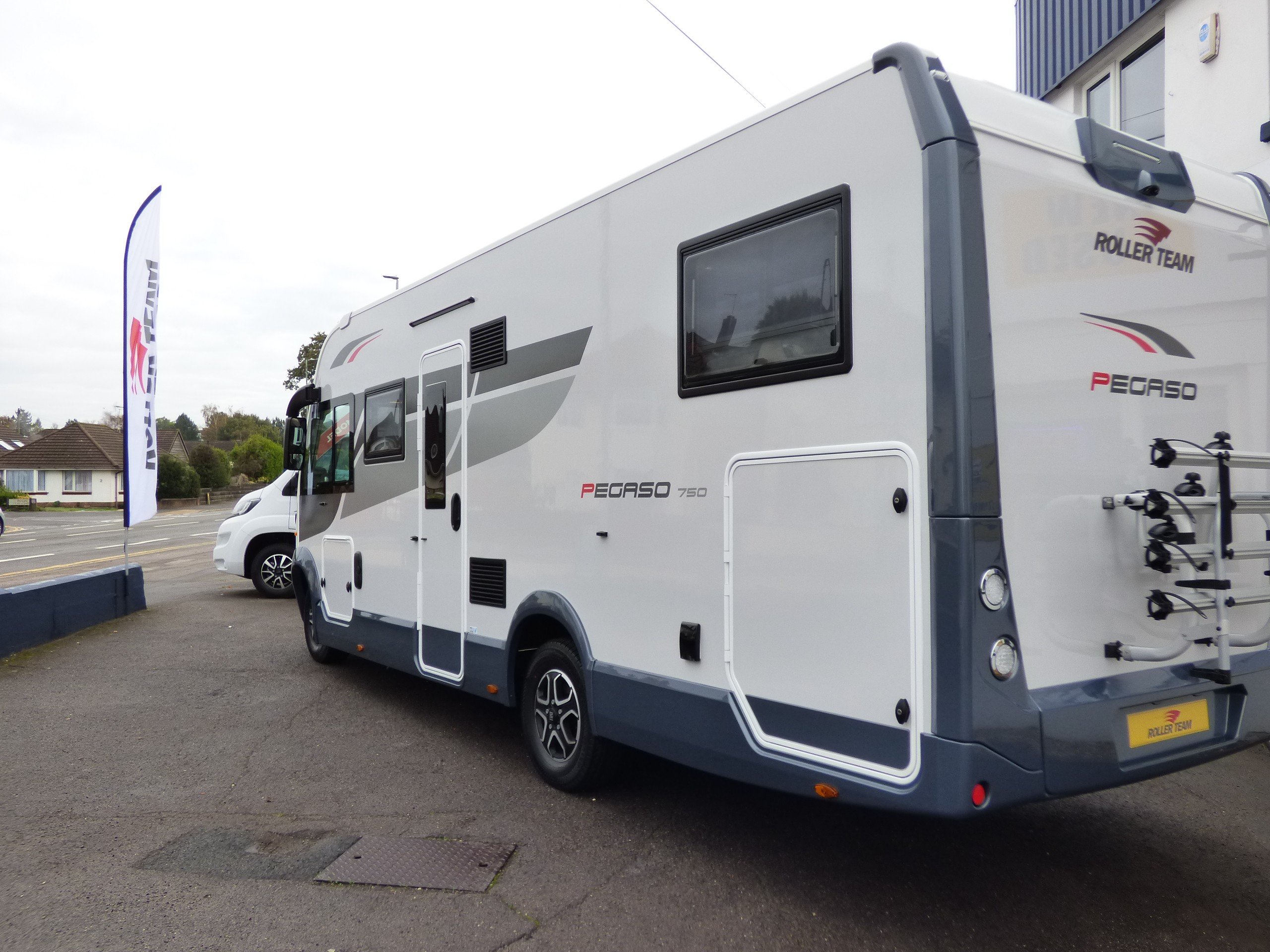Brand New 2025 Model Pegaso 750 140bhp Automatic in stock now. A Fantastic addition to the Pegaso A Class range, the new 750 model provides a fresh layout with twin rear single beds and a central bathroom arrangement. The lounge area is laid out as two opposing sofas with the front seats swivelling to accommodate 6 with ease. The front seats fold down to allow the front drop down double bed to pull out for evening use, still allowing the lounge to remain in use. The central kitchen is fitted with a gas hob, gas oven/grill and a large fridge/freezer. The bathroom has a separate shower cubicle, cassette type toilet and a wash hand basin. the twin rear beds also have a large storage area under, so this is ideal for families. Heating and hot water is via a Truma dual fuel system and other features for this Pegaso 750 include: Alloy Wheels, Pioneer infotainment system, 200w solar panel with MPPT controller, Thule 4 bike rack, External BBQ and Shower points, WiFi, pleated cab blinds, carpets and ISOfix child seat fixings. 4 berth, 4 seat belts, L. 7.41m, W. 2.35m, H. 2.95m, 3,500kg, delivery miles.