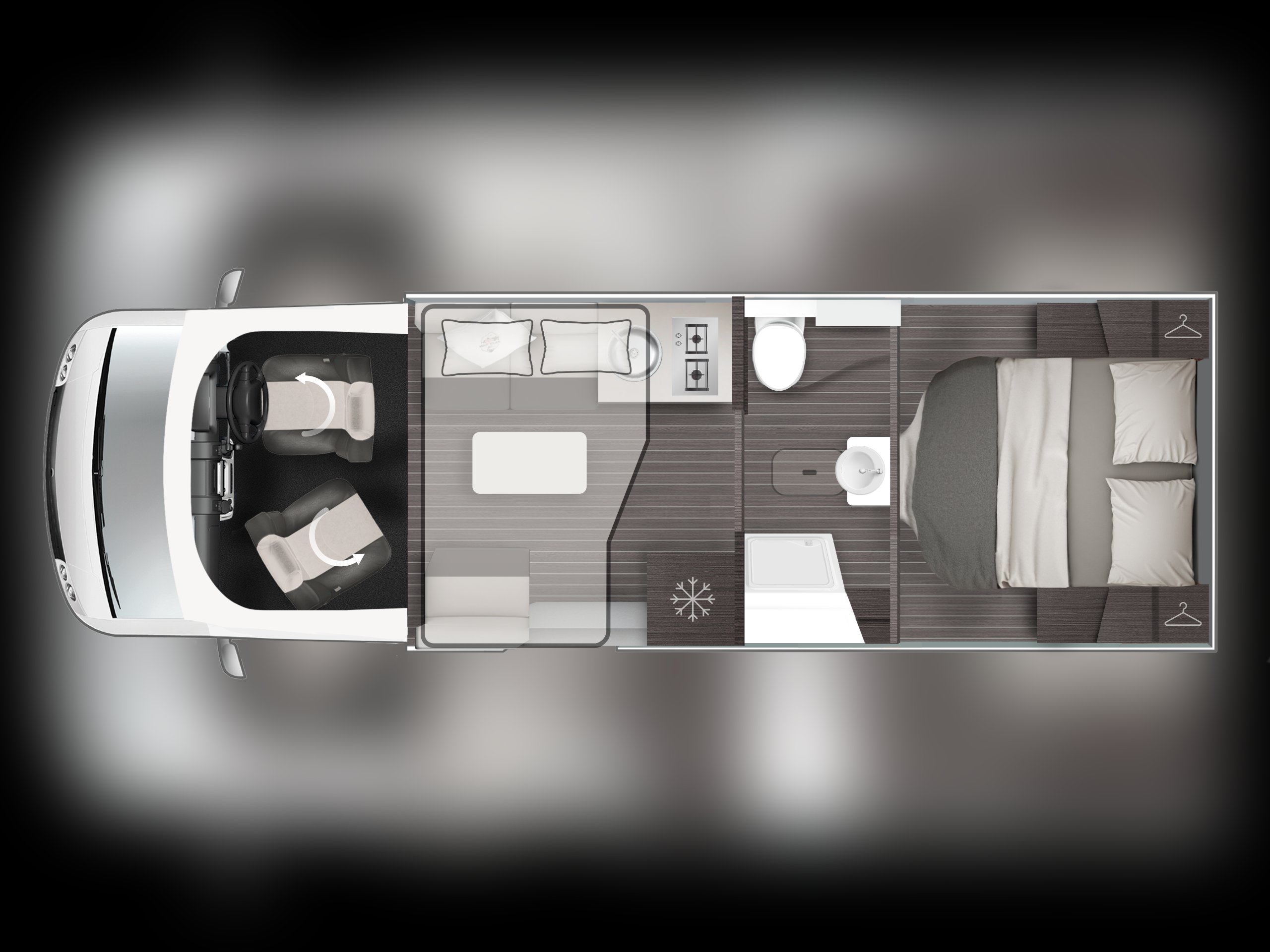 The new and improved 2026 model T-Line 740 is in stock now. Based on the Fiat Ducato chassis with 140bhp engine and 6 speed manual transmission, the latest version of the popular T-Line 740 model has a host of new features including a revised lounge layout, larger bathroom and and all new solar arrangement for off grid compatibility. The spacious lounge area has swivel front seats that turn to face opposing sofas with a folding table. The drop down bed above the lounge operates electrically and a new kitchen sits behind the lounge. Now fitted with a compressor fridge/freezer and microwave, the traditional gas hob and oven remain. The bathroom has a separate shower cubicle, central wash basin and cassette toilet along with clever cupboard space and can be shut off from both the lounge and rear bedroom. The rear bedroom has an electrically adjustable island bed with wardobes either side and wall space for a TV. Other features of this T-Line 740 include: Thule wind out awning, Twin 200w Solar panels with twin leisure batteries, carpets, Pioneer infotainment system, Truma heating/hot water, Fiamma bike rack, Gas BBQ point, External Shower point, WiFi and reversing camera. 4 berth, 4 seatbelts, L. 7.43m, W. 2.35m, H 2.95m, 3,500kg, Delivery Miles.
