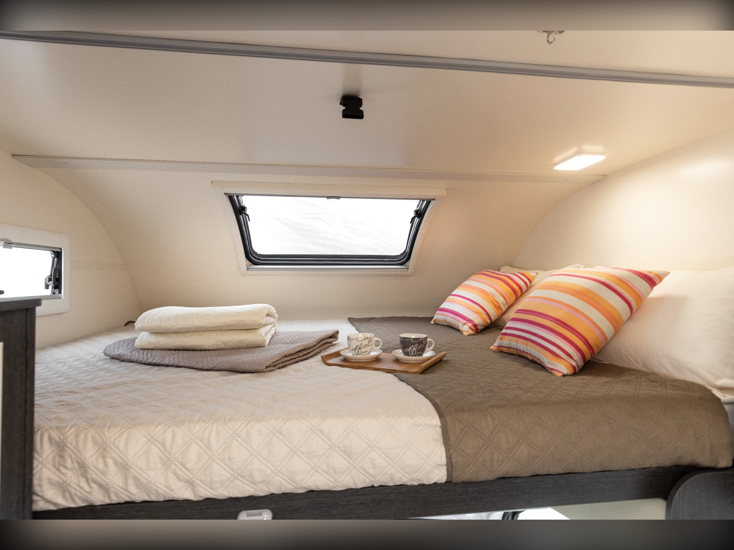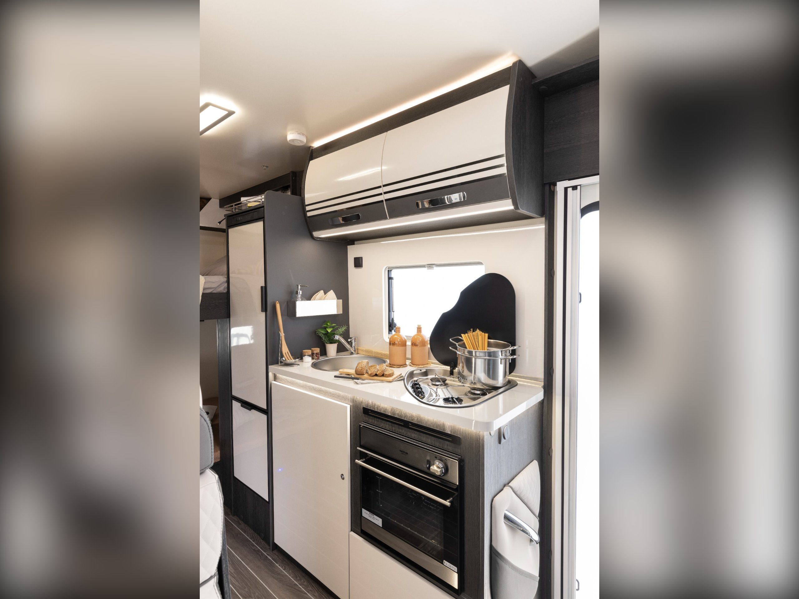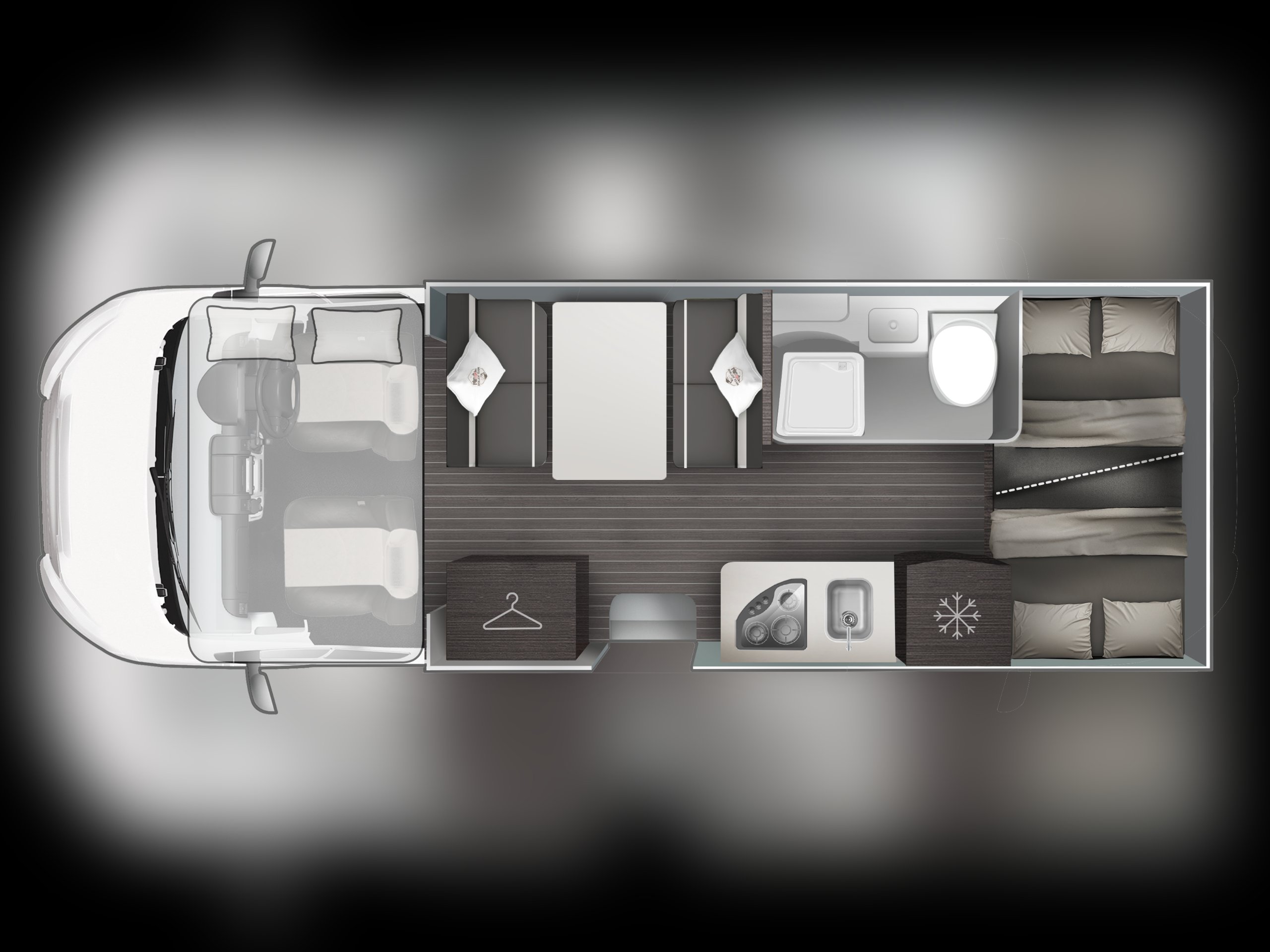 New 2026 Model Zefiro 675 Automatic with 165bhp engine is based on the new Ford Transit chassis with 8 speed automatic transmission and the latest Ford 12" Infotainent system with Apple Car Play and Android Auto. The 675 has always been popular with families sleeping six with ease and providing a lot of storage thanks to the rear garage and bunk bed system. The dinette area converts to a double bed for evening use. The overcab bed is a very large double and at the rear, the very generous bunk beds provide sleeping for two more. The well equipped kitchen features a 3 gas burner hob, gas oven and grill and a large fridge/freezer. The bathroom opposite has a shower cubicle, cassette type toilet and wash hand basin. Heating and hot water is via a Truma dual fuel system and other features for the Zefiro 675 include: Zefiro Driver's Pack, 200w Solar panel, Thule 4 bike rack, WiFi, External Gas BBQ and Shower points, Front Parking Sensors, Reverse Camera, ISOfix Child Seat Fixings, Pleated Cab Blinds and carpets. L. 6.99, W. 2.3m, H, 3.1m, 3,500kg, 6 berth/5 seat belts, delivery mileage.