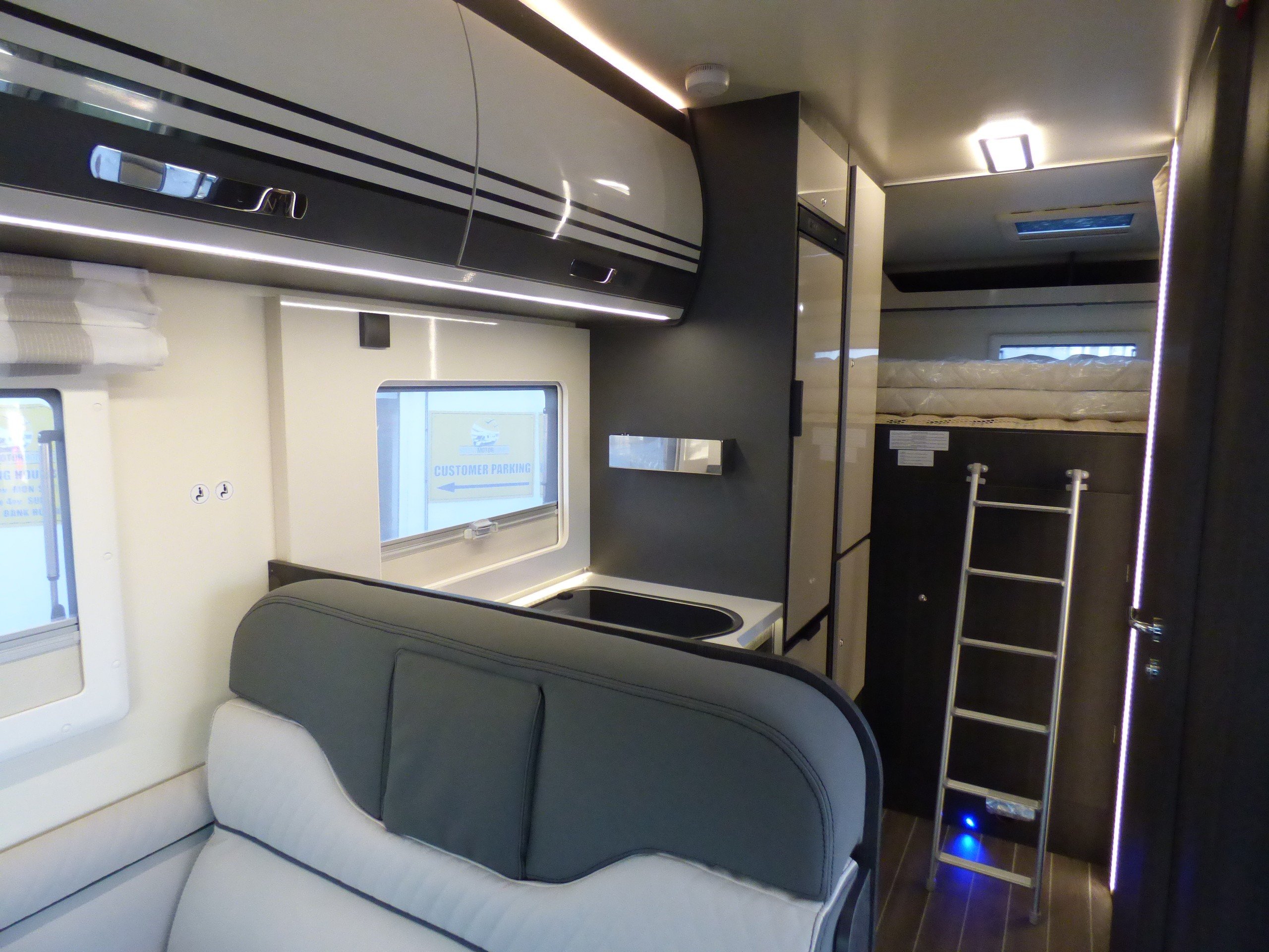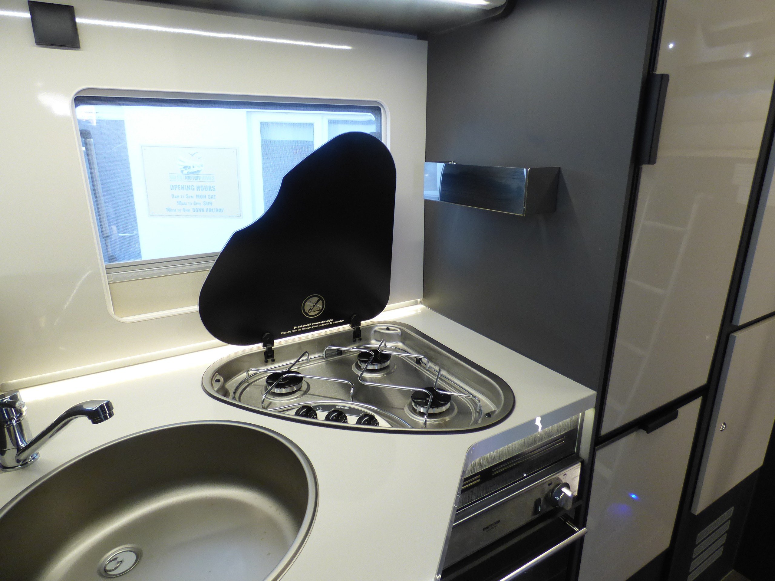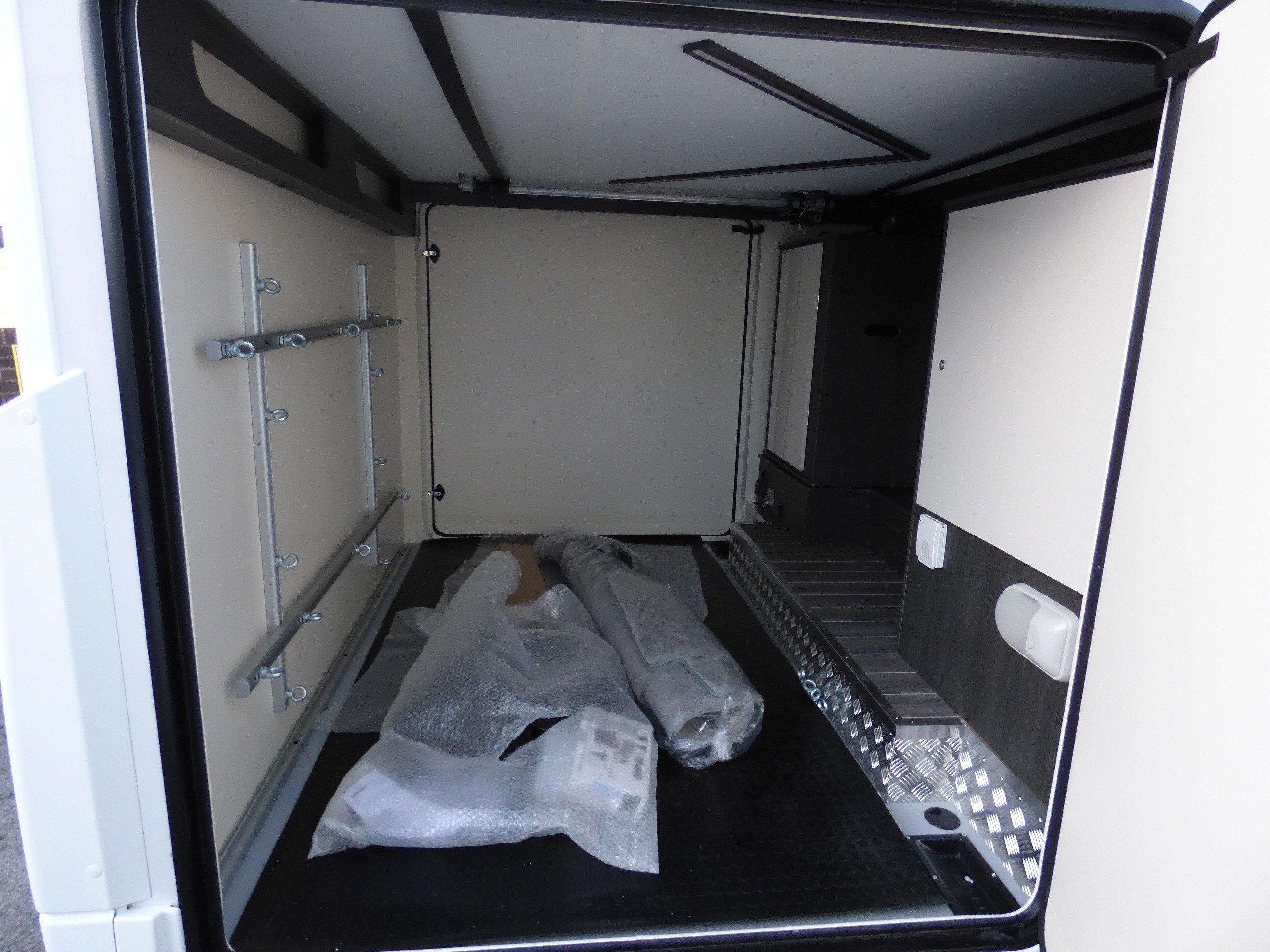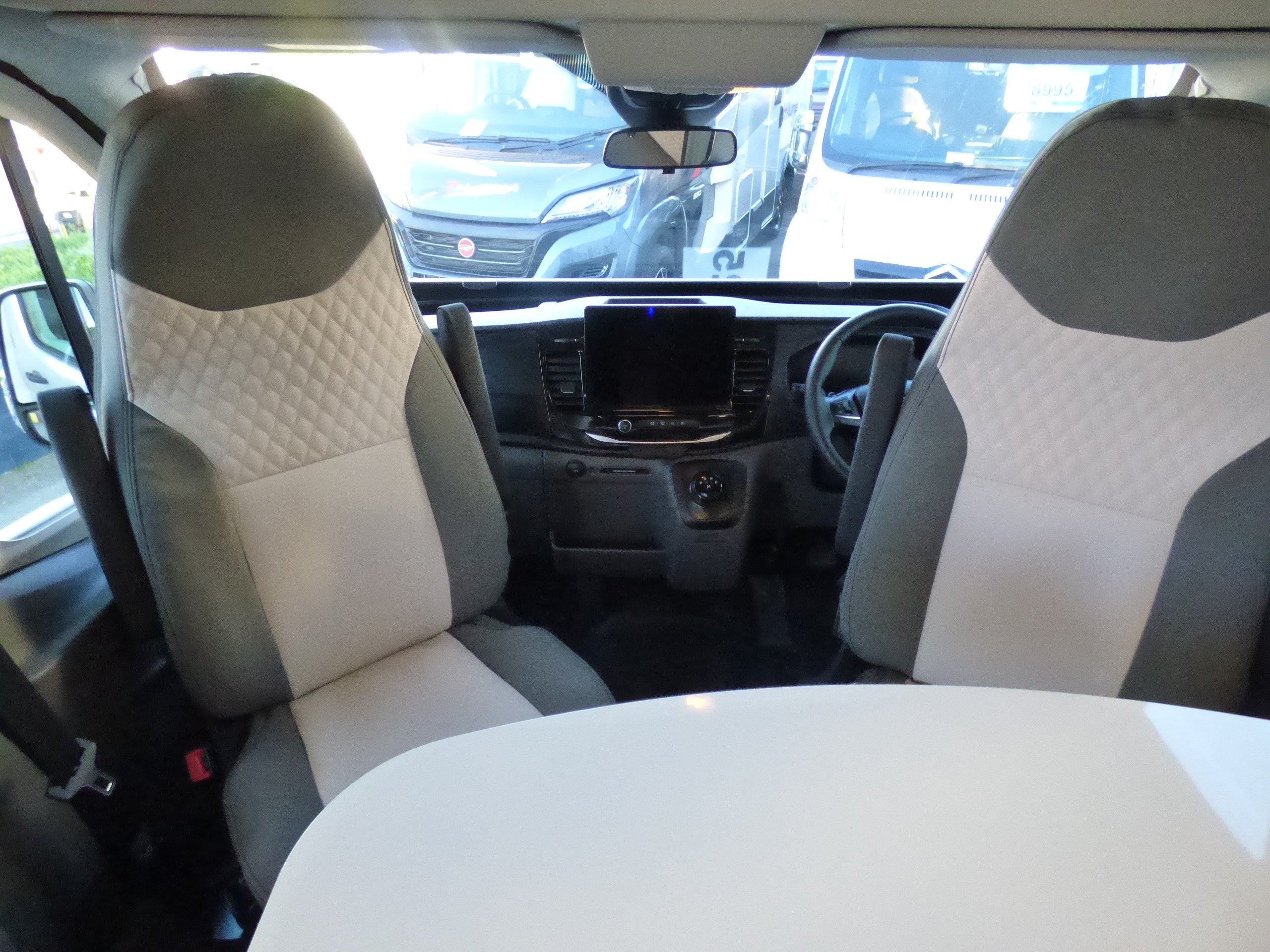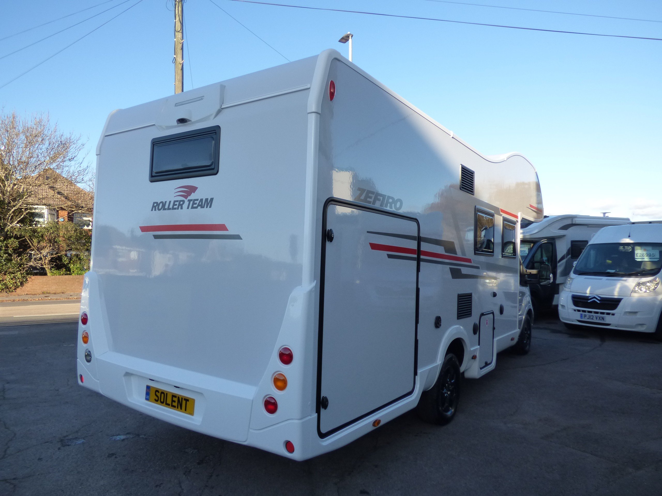 Just Arrived! New 2026 Model Zefiro Sport based on the Ford Transit chassis with 165bhp engine and 8 speed automatic transmission with the Ford 12" screen infotainment system, front parking sensors and Zefiro Driver's Pack. The huge rear garage with electric elevating bed over makes this particularly popular for sports orientated users such as Motocross and Karting. The large double bed over the cab and the rear bed mean that four can sleep in comfort and the dinette area has swivelling front seats, so 4 can dine with ease. The well equipped kitchen features a 3 burner gas hob, gas oven/grill and large fridge/freezer with lower bottle compartment. The Zefiro Sport bathroom has a separate shower cubicle and basin with cassette type toilet. The habitation area benefits from a Truma hot water/heating system with the latest Truma iNetX control system, 200w solar panel, LED lighting, TV Bracket, Thule wind out awning, Pleated Cab Blinds, Reversing camera, External BBQ & shower points, 4G WiFi,, ISOfix and carpets. L. 7.43m, W. 2.35m, H 3.2m, 3,500kg, 4 berth/4 seatbelts, Delivery Miles.