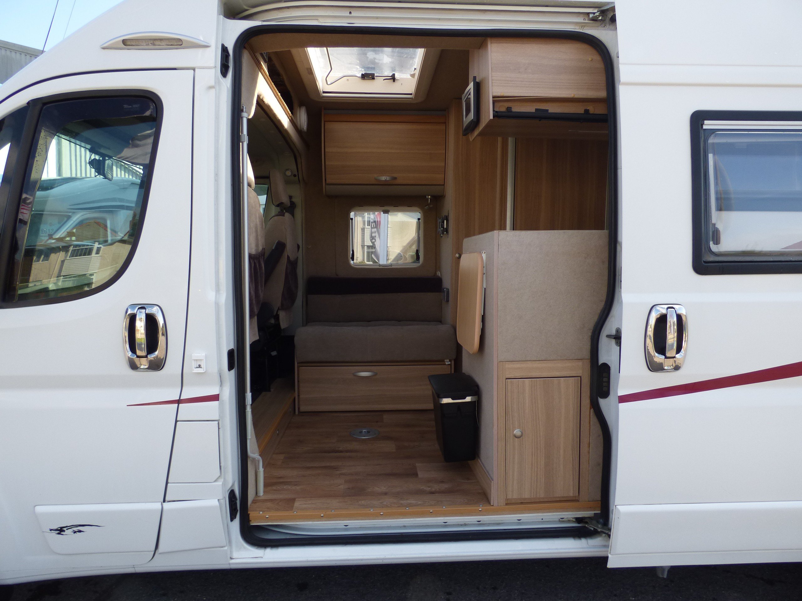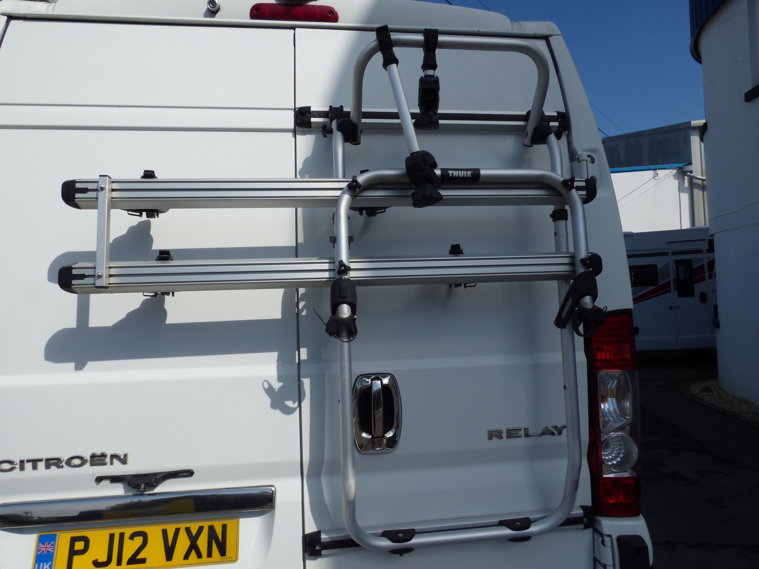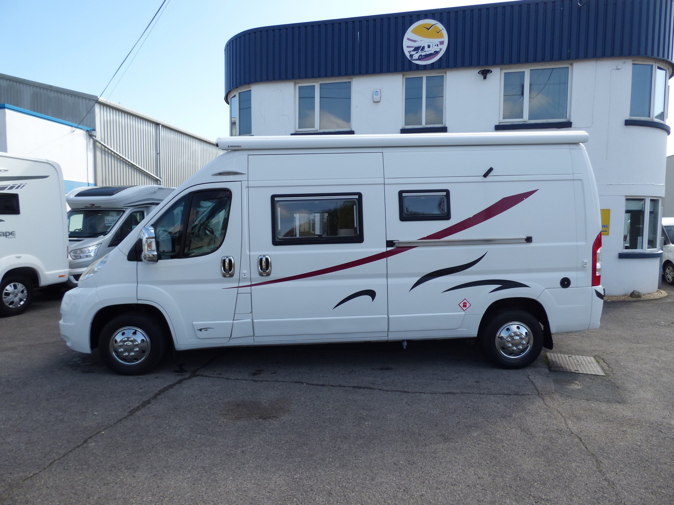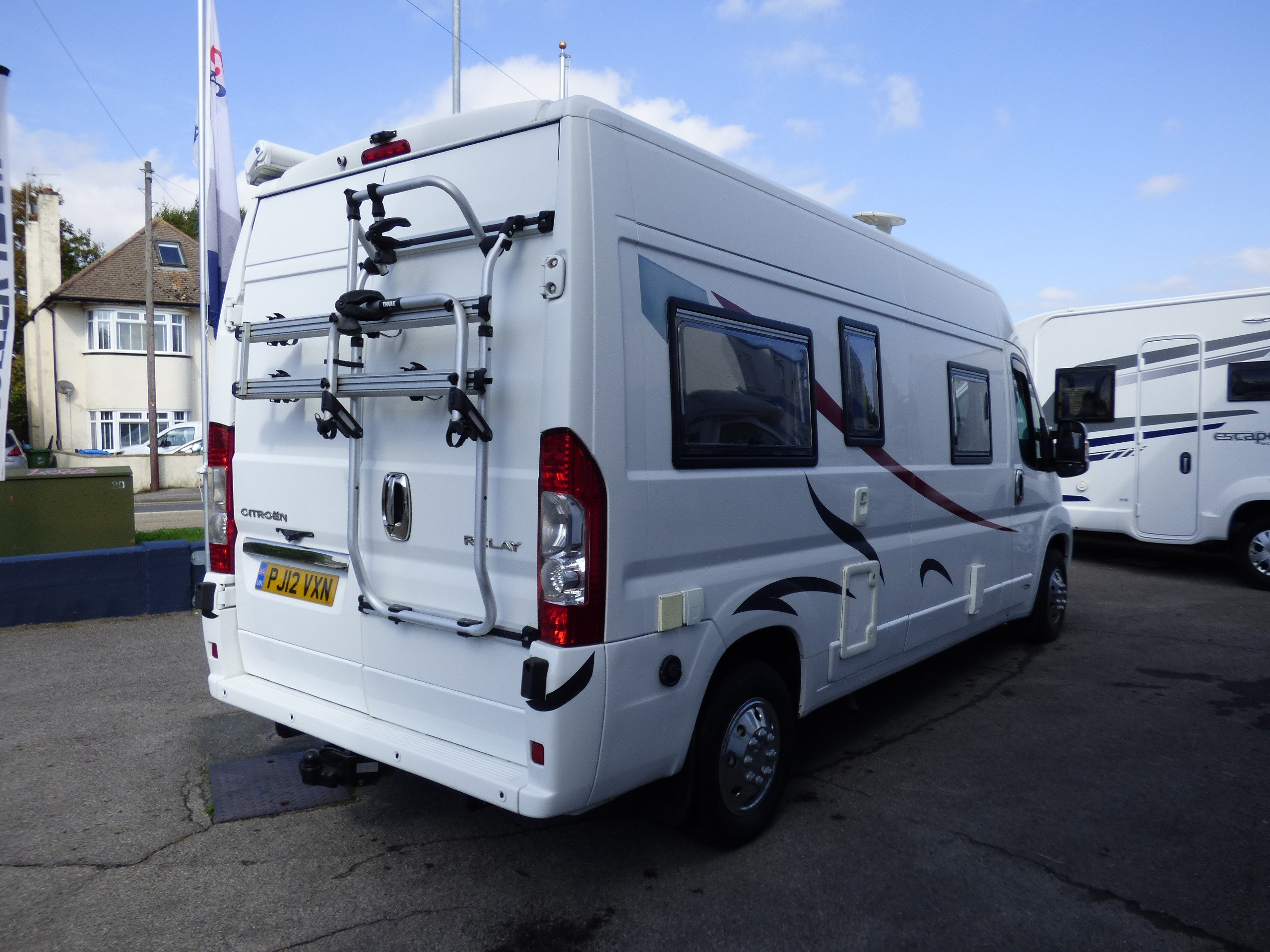 Solent are pleased to offer this well thought-out van conversion based on the popular Citroen Relay van with 130bhp engine and 6 speed manual transmission. The front seats swivel to face a side sofa dinette with removable table. The side kitchen is fitted with a Thetford Caprice cooker with 3 gas and 1 electric burners along with a separate oven and grill, compressor fridge/freezer and microwave. Opposite, the wetroom style bathroom has a shower cubicle, cassette type toilet and a folding wash hand basin. The rear bedroom has a fixed transverse double bed with ample cupboard storage. The underbed storage is reached via the back doors and has Thule storage hangers and an external shower point. Heating is via a Diesel heater and hot water via a Truma system. Other features of this Citroen Relay Camper include: Prostor awning, External BBQ point, Towbar, Reversing camera, 2 bike rack, rear park distance control, TV Antenna and TV bracket. 2 berth, 2 seatbelts. L. 5.99m, W. 2.15m, H. 2.7m, 3,500kg, 66892 miles.
