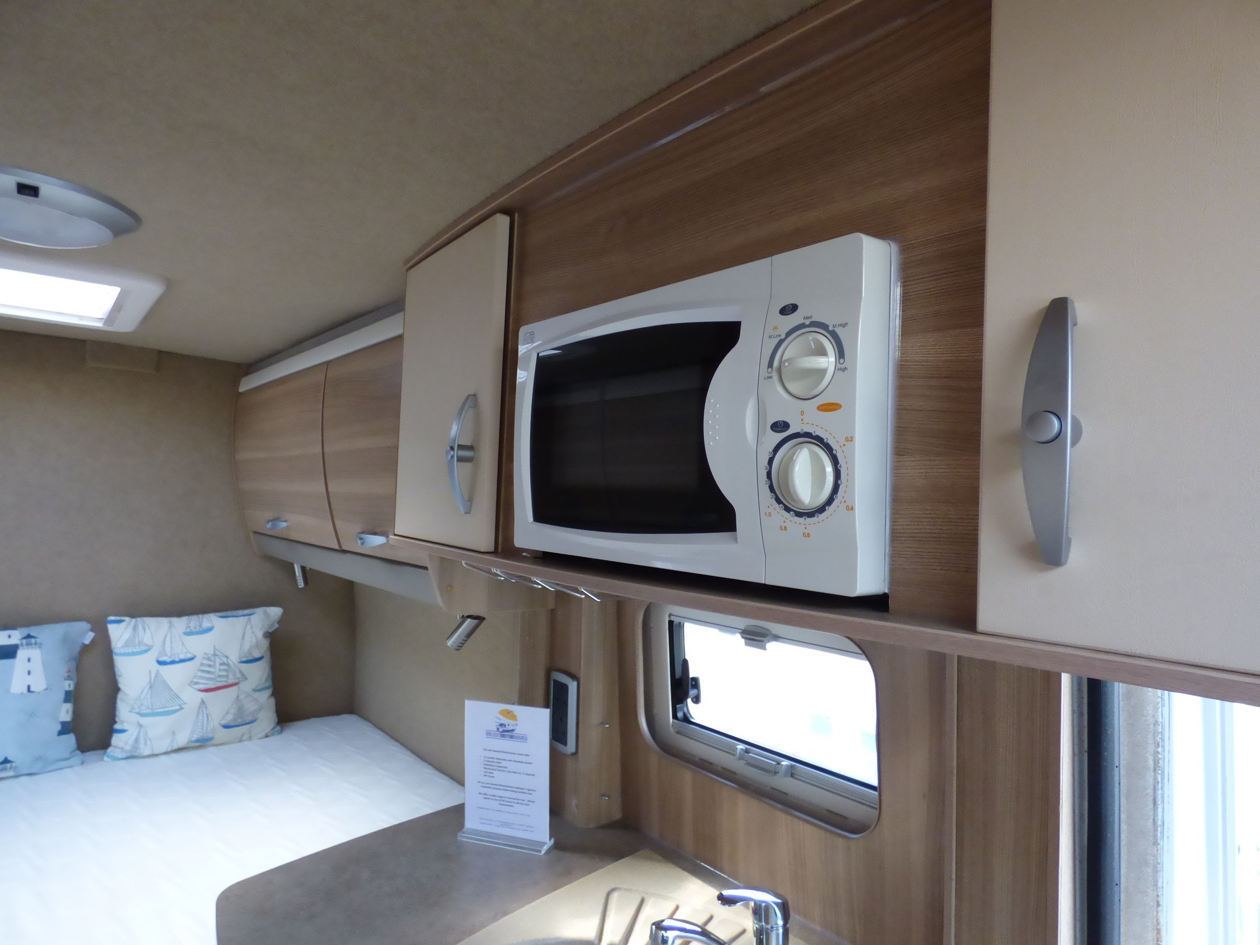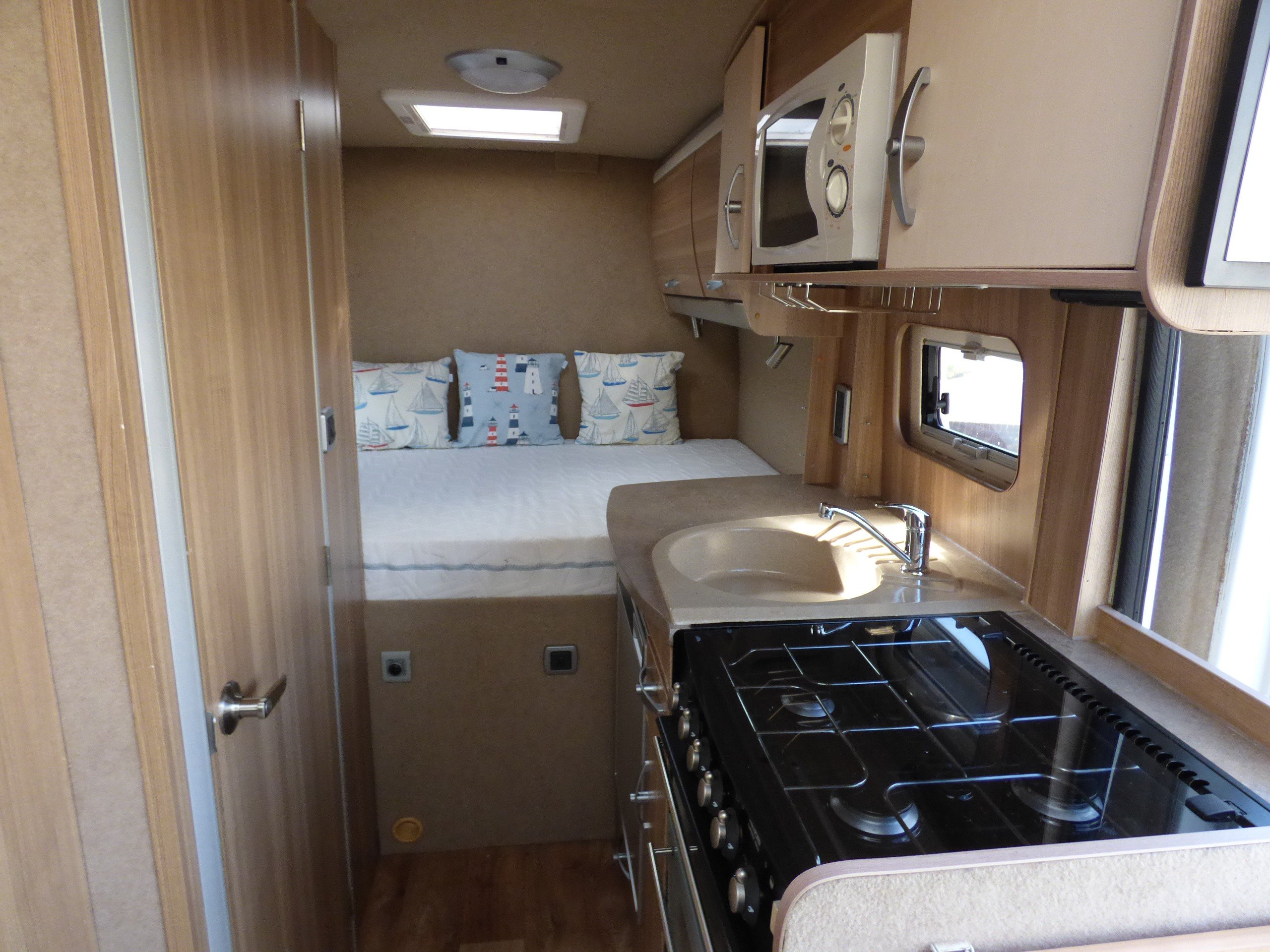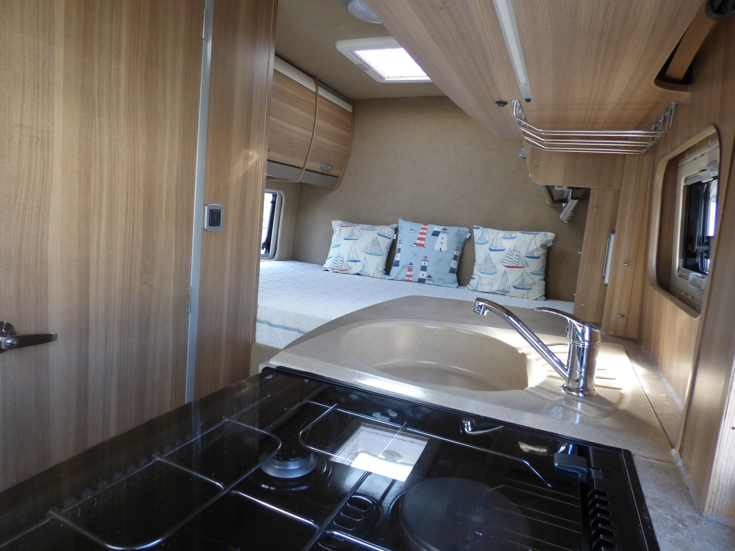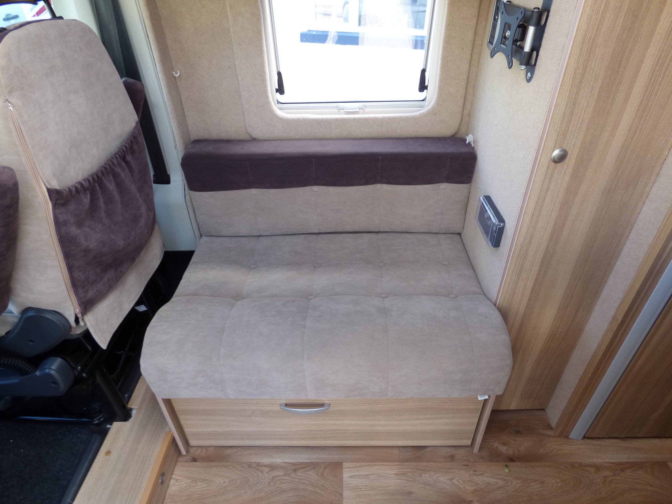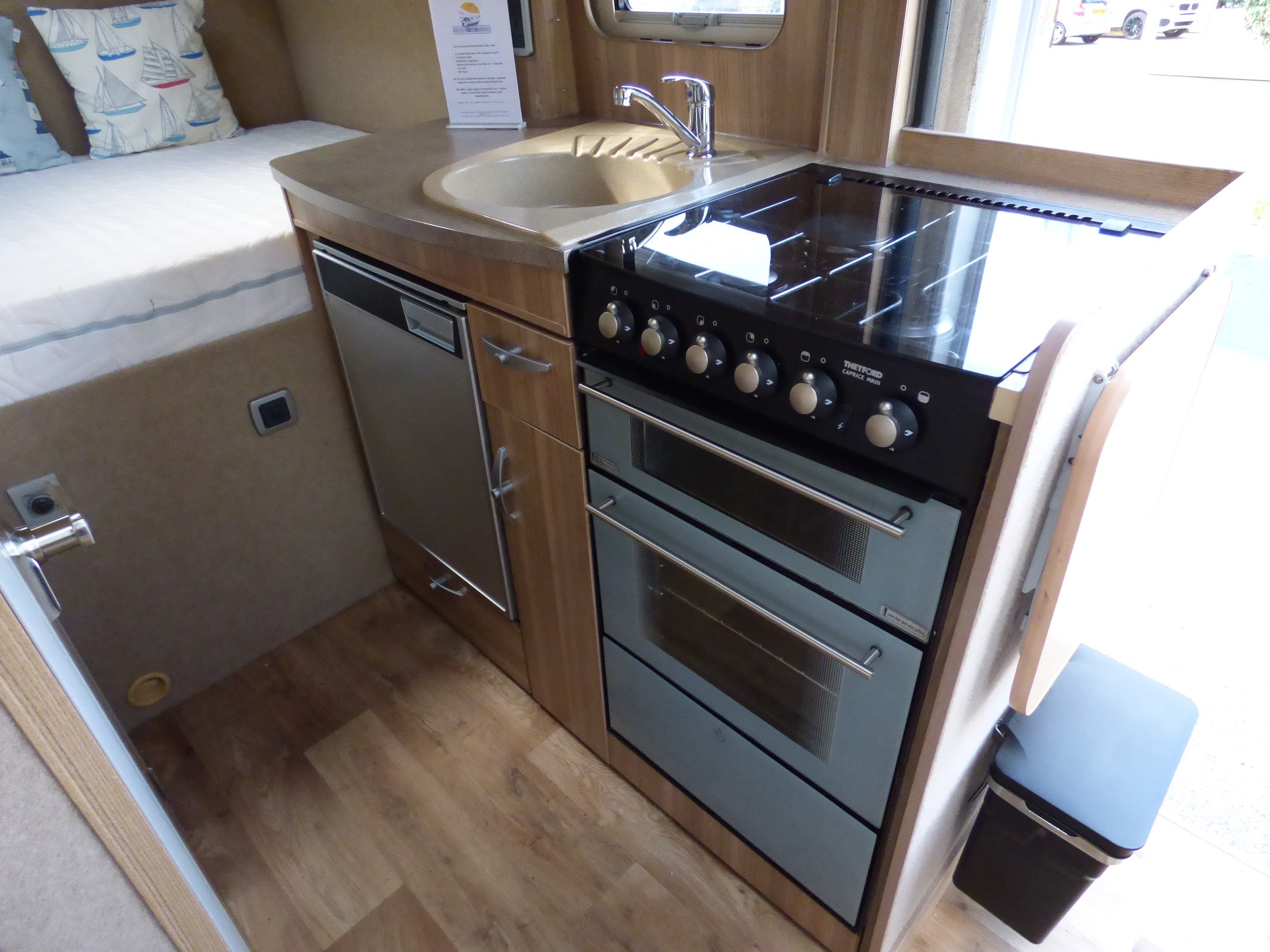 Solent are pleased to offer this well thought-out van conversion based on the popular Citroen Relay van with 130bhp engine and 6 speed manual transmission. The front seats swivel to face a side sofa dinette with removable table. The side kitchen is fitted with a Thetford Caprice cooker with 3 gas and 1 electric burners along with a separate oven and grill, compressor fridge/freezer and microwave. Opposite, the wetroom style bathroom has a shower cubicle, cassette type toilet and a folding wash hand basin. The rear bedroom has a fixed transverse double bed with ample cupboard storage. The underbed storage is reached via the back doors and has Thule storage hangers and an external shower point. Heating is via a Diesel heater and hot water via a Truma system. Other features of this Citroen Relay Camper include: Prostor awning, External BBQ point, Towbar, Reversing camera, 2 bike rack, rear park distance control, TV Antenna and TV bracket. 2 berth, 2 seatbelts. L. 5.99m, W. 2.15m, H. 2.7m, 3,500kg, 66892 miles.