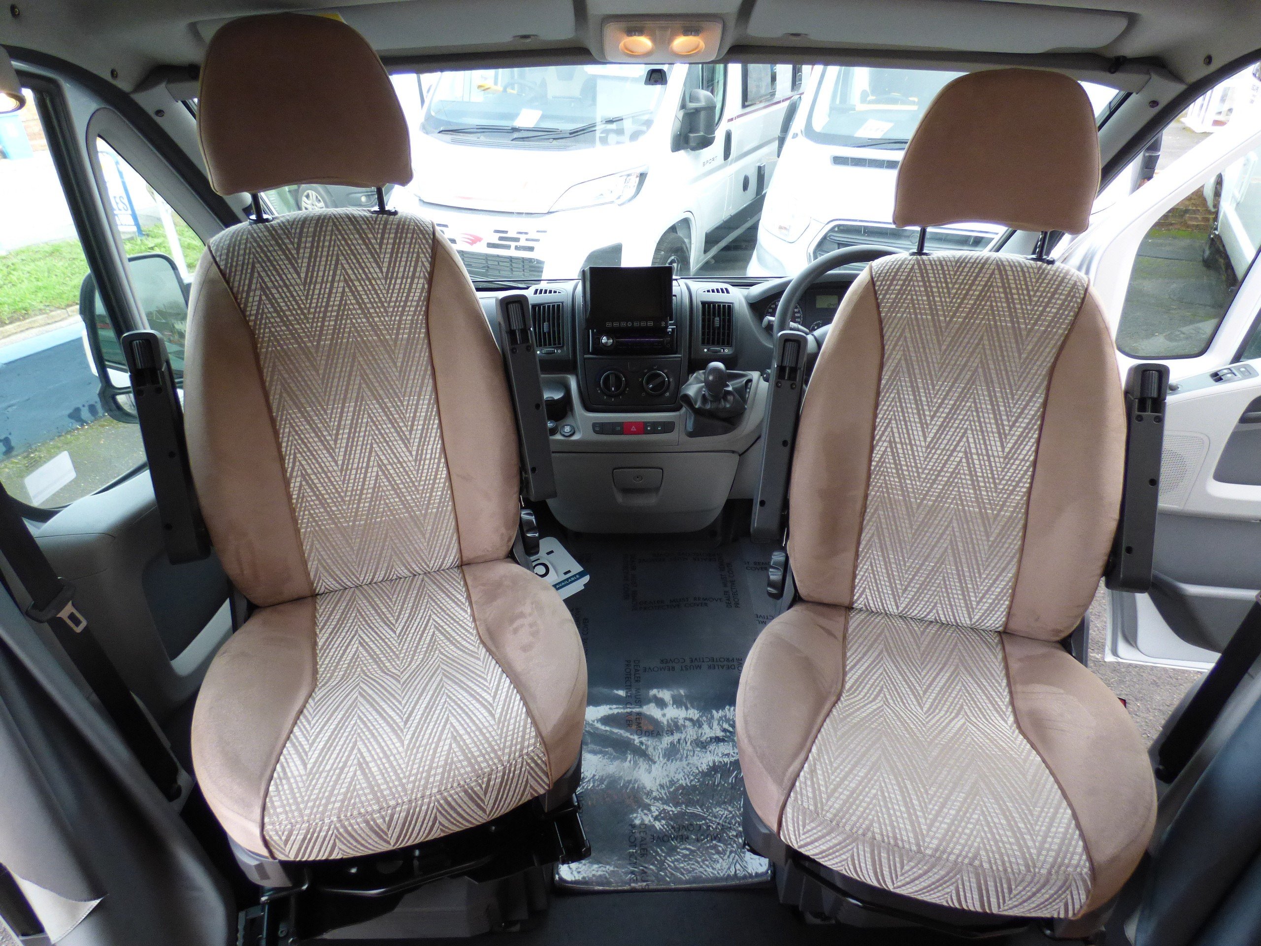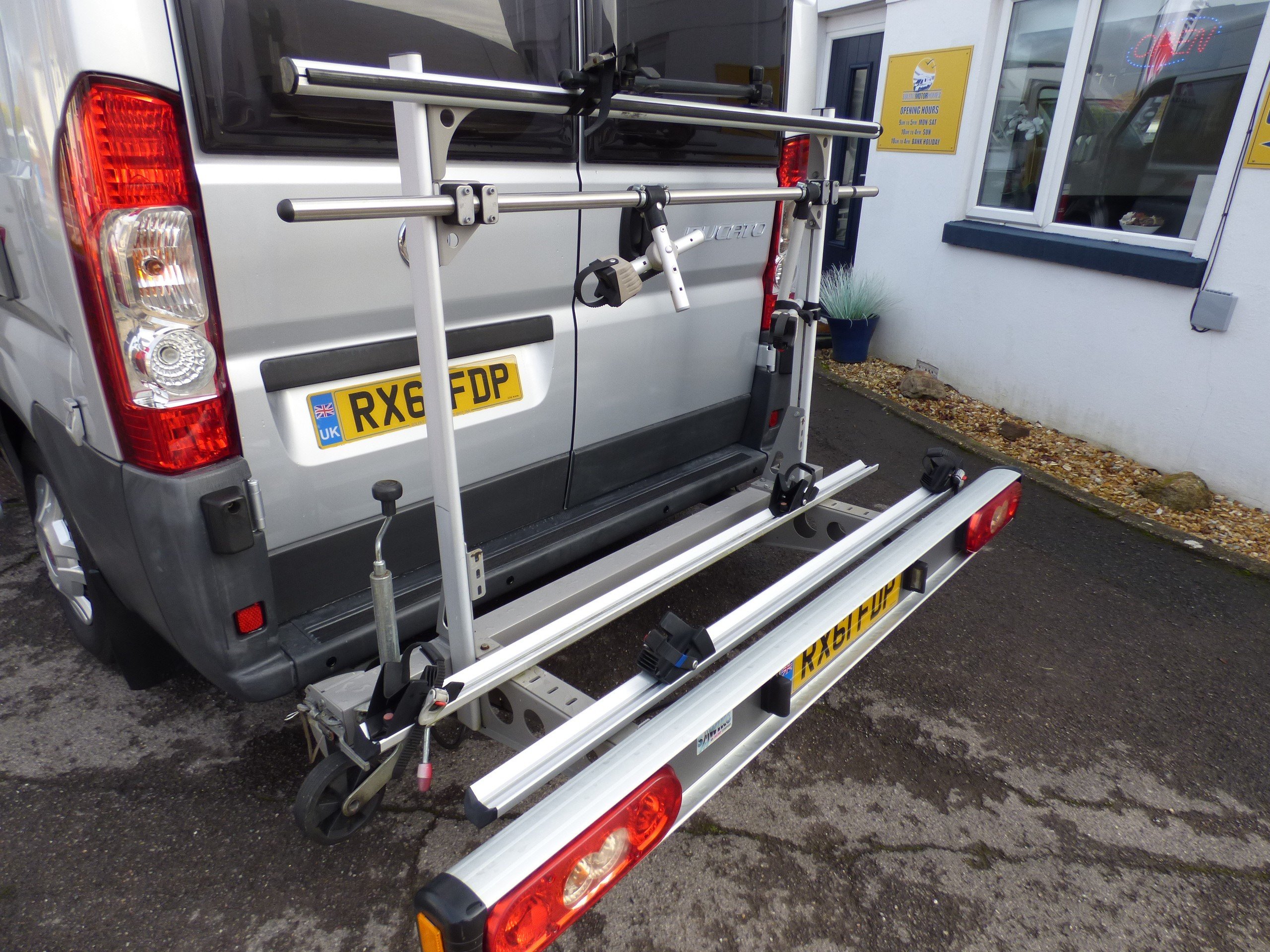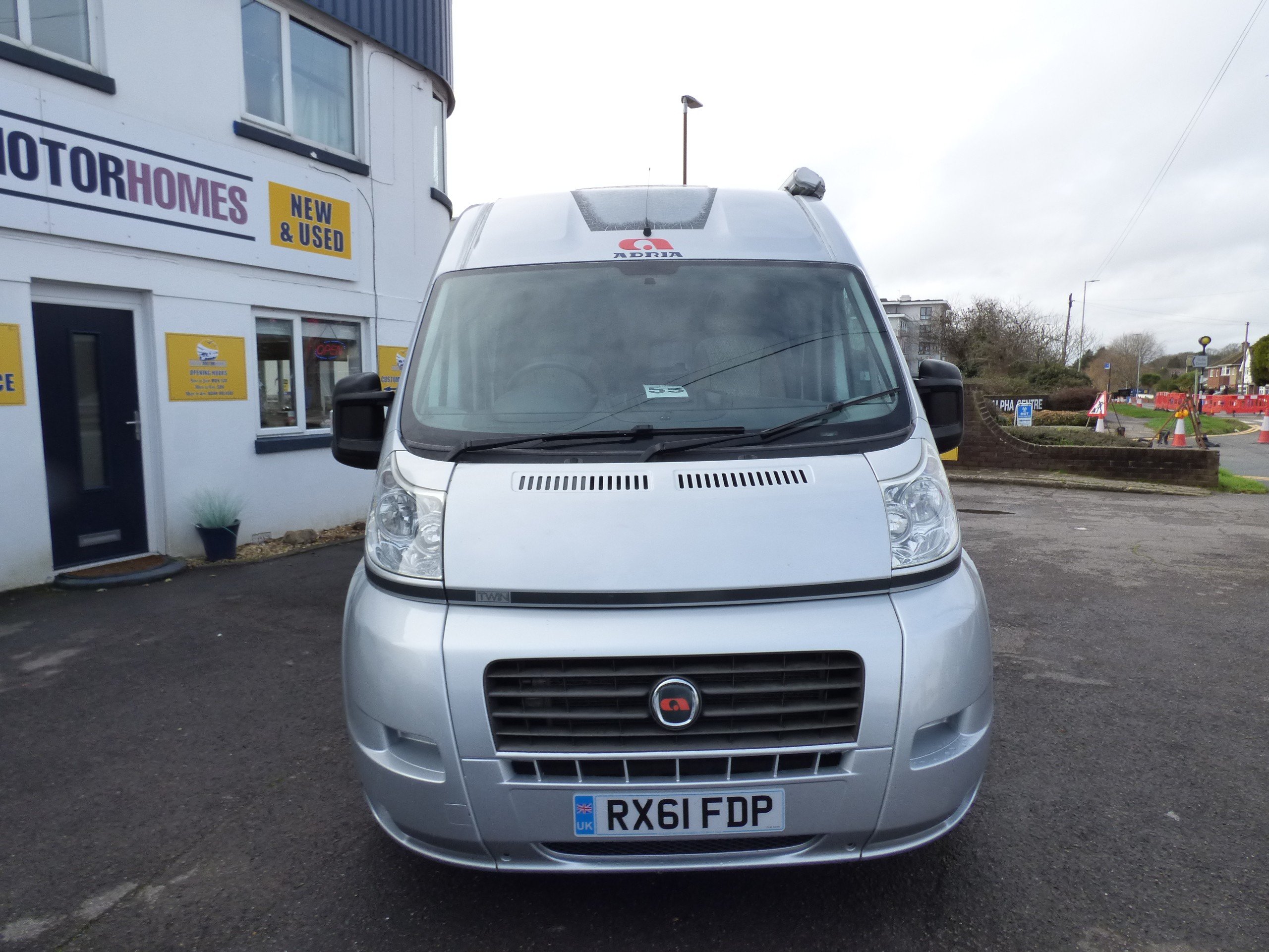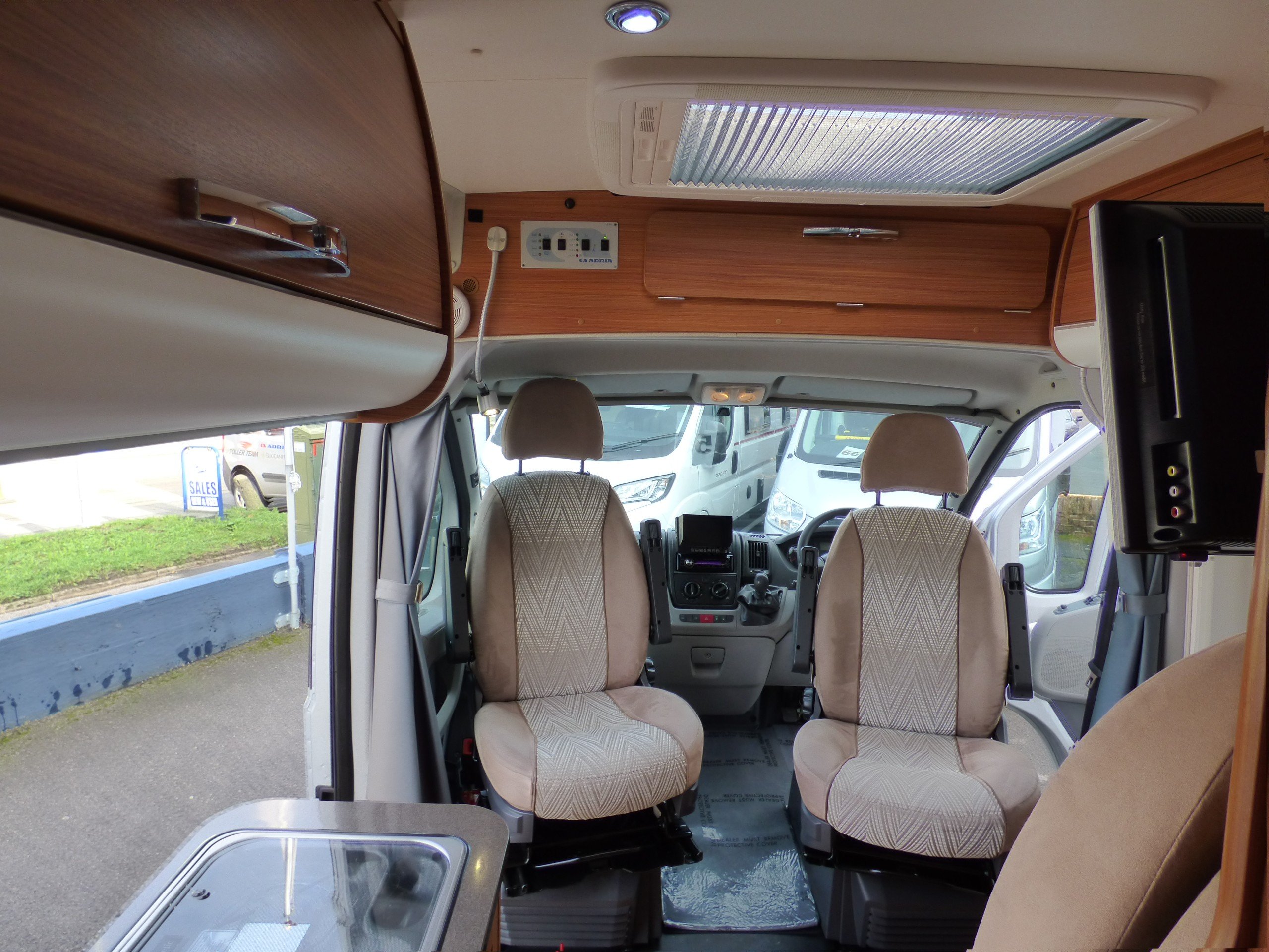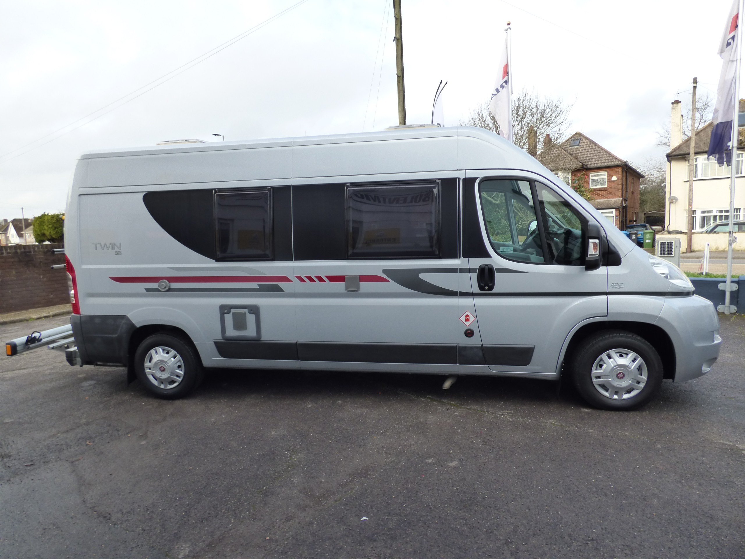 A really lovely one owner Adria Twin, clearly very well cared for throughout it's life. Based on the Fiat Ducato chassis with 2.2l engine and 5 speed manual transmission, the accommodation is laid out with a ,front dinette where the front seats swivel to face the rear two travelling seats, a side kitchen with 2 burner gas hob, gas oven/grill and a Thetford 3 way fridge/freezer. Opposite the kitchen via a tambour door is the wet room style bathroom with shower, wash hand basin and cassette type toilet with SOG extractor. The large double bed at the rear can be folded away to provide a huge storage area. Lots of cupboard and wardrobe space throughout and it is fitted with a Truma combi hot water and heating system. Other features for this Adria Twin SP include: Electric step, Pleated front screen blind, Avtex TV, Vision Plus antenna, solar panel, rear parking sensors and two way reversing camera, Fiamma F65S wind out awning and a substantial Sawico bike carrier for 2 bikes. 2 Berth, 4 seatbelts. L. 5.98m, W. 2.05m, H 2.58m, 3,500kg, 39,679 miles.