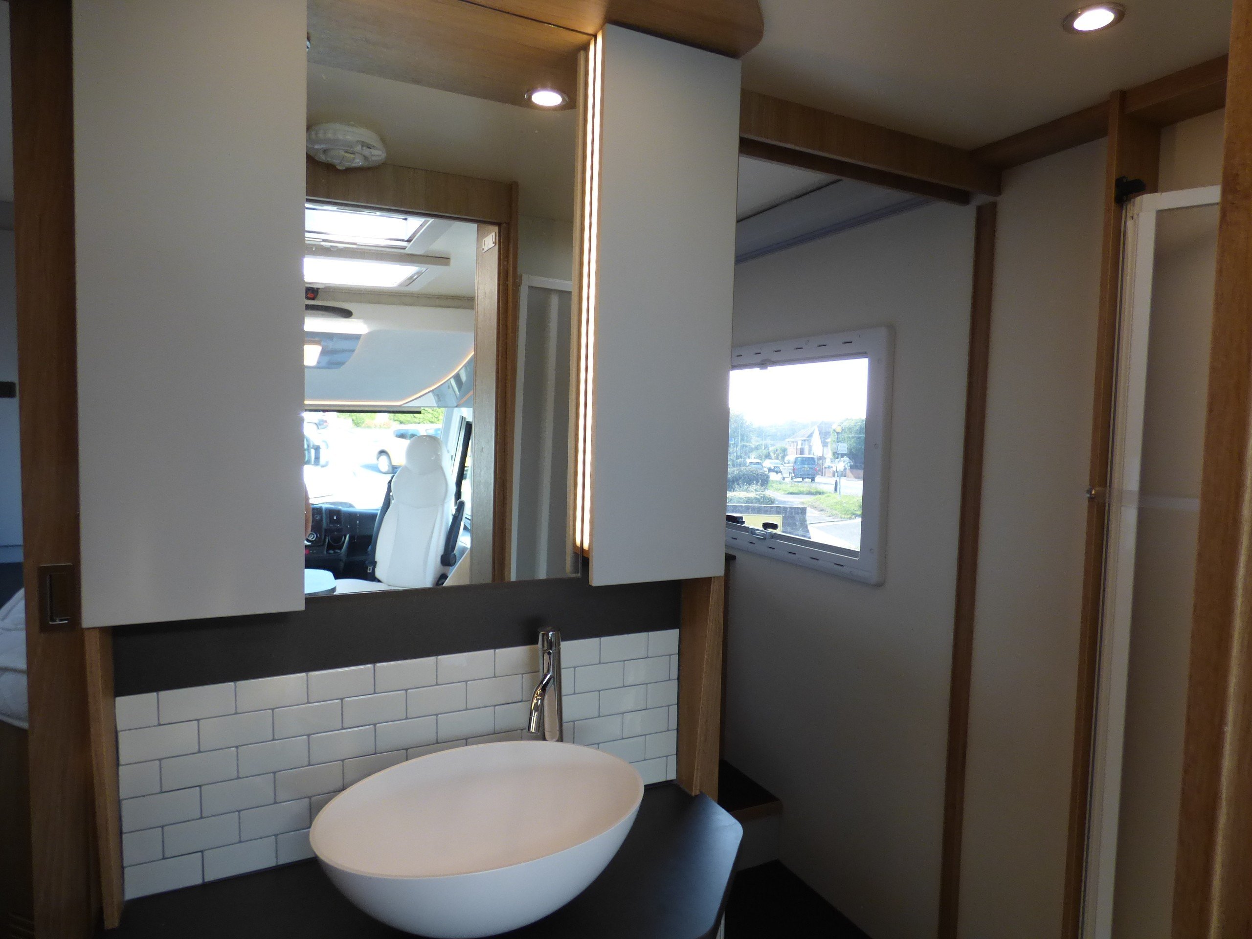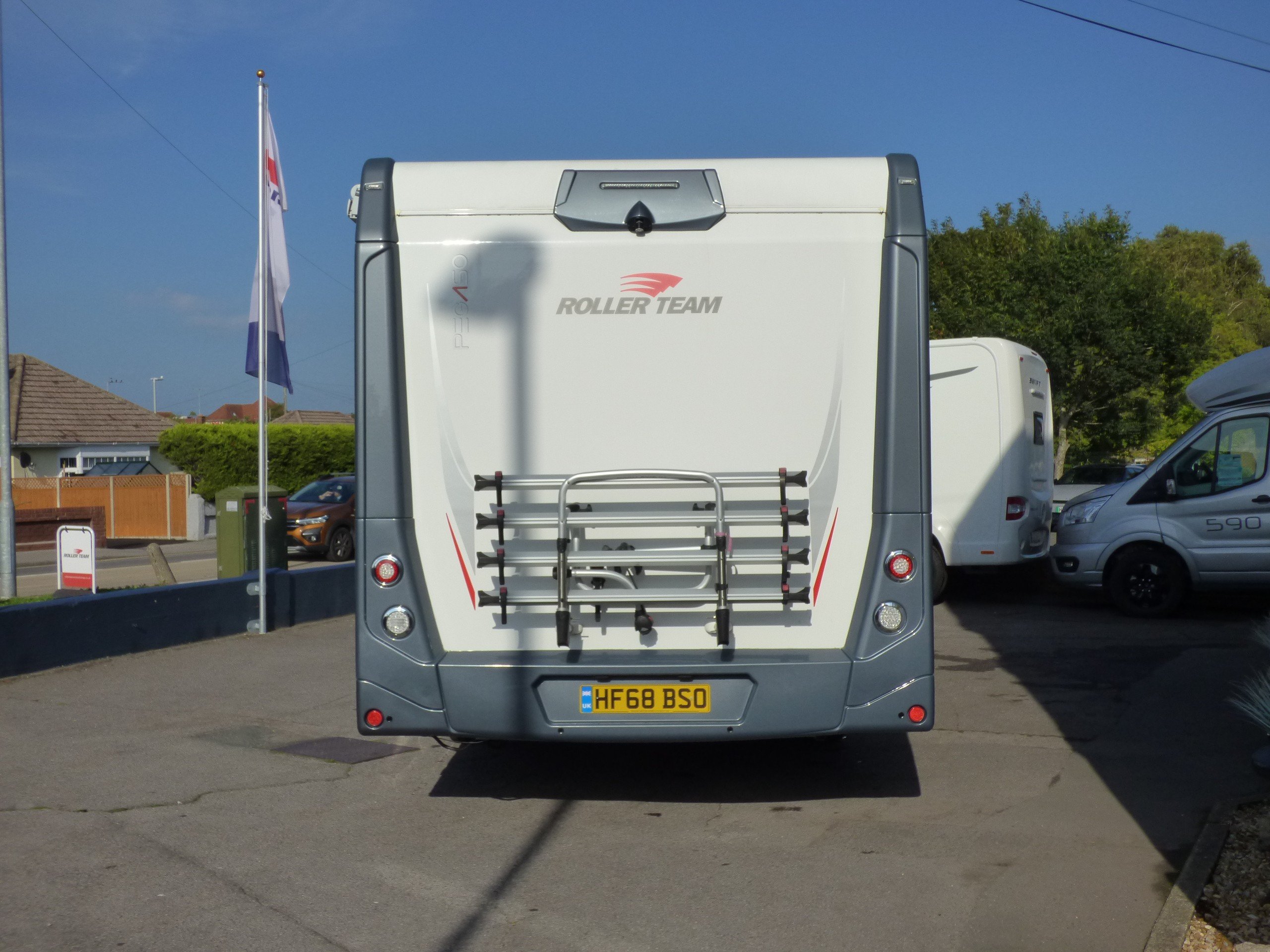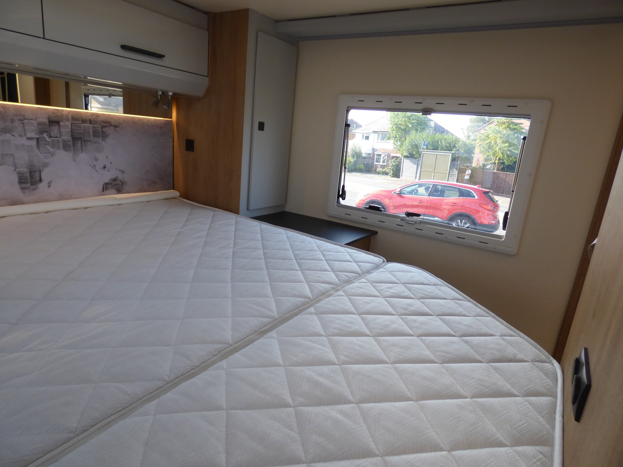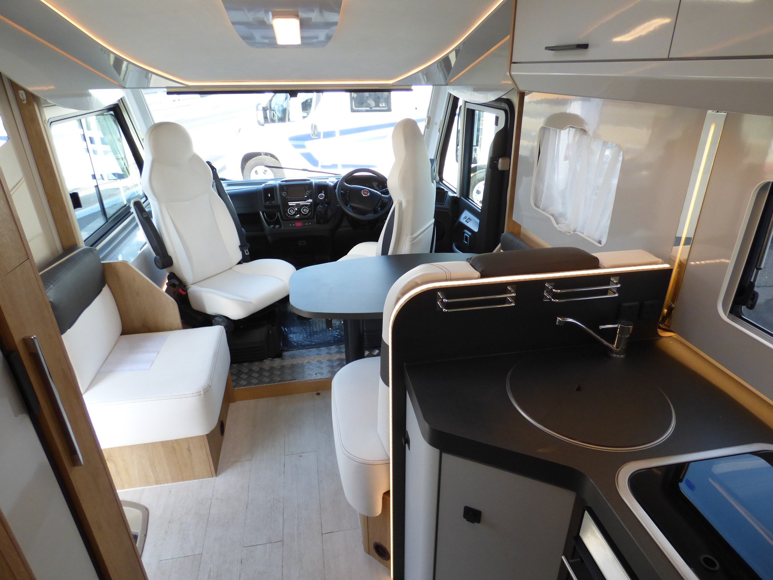 A rare chance to buy a wonderful Pegaso 740 Island bed 4 berth motorhome. Based on the Fiat Ducato chassis with 6 speed manual transmission and re-mapped 130bhp engine. The popular layout has a double bed that pulls down over the driver and passenger seats leaving the eco-leather covered lounge usable when the bed is in the down position. The central kitchen has a 3 burner gas hob and Thetford Gas oven/grill. The large fridge/freezer is opposite and the central bathroom has a cassette type toilet on one side, a central basin set into a cupboard arrangement and separate shower cubicle on the other side. The rear bedroom has an adjustable Island bed with wardrobes either side. Heating and hot water is taken car of by a Truma dual fuel system. Features and optional extras on this Pegaso 740 include: Solar panel, Fiamma 4 Bike rack, Dometic wind out awning, reversing camera, parking sensors, External shower point, Truma iNet system, Satellite Dish and SOG extractor system. L. 7.38m, W. 2.35m, H 2.96m, 3,500kg, 4 Berth, 4 Seat Belts, 12,867 miles.