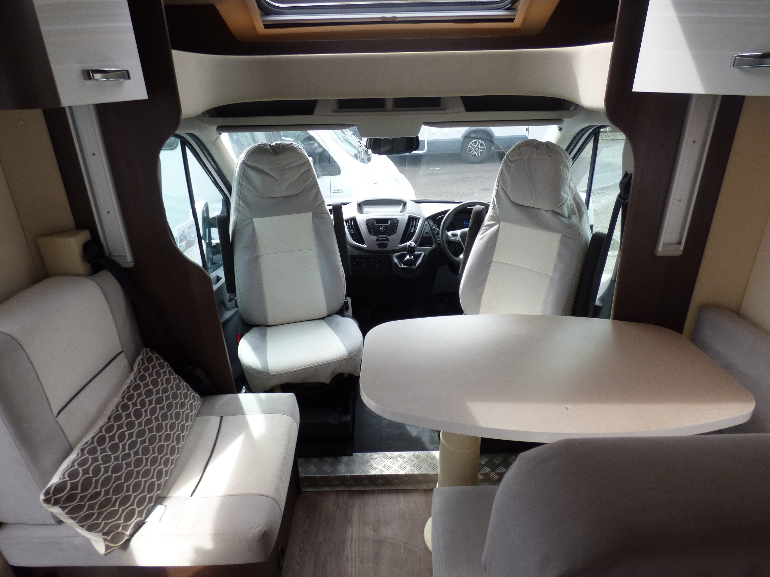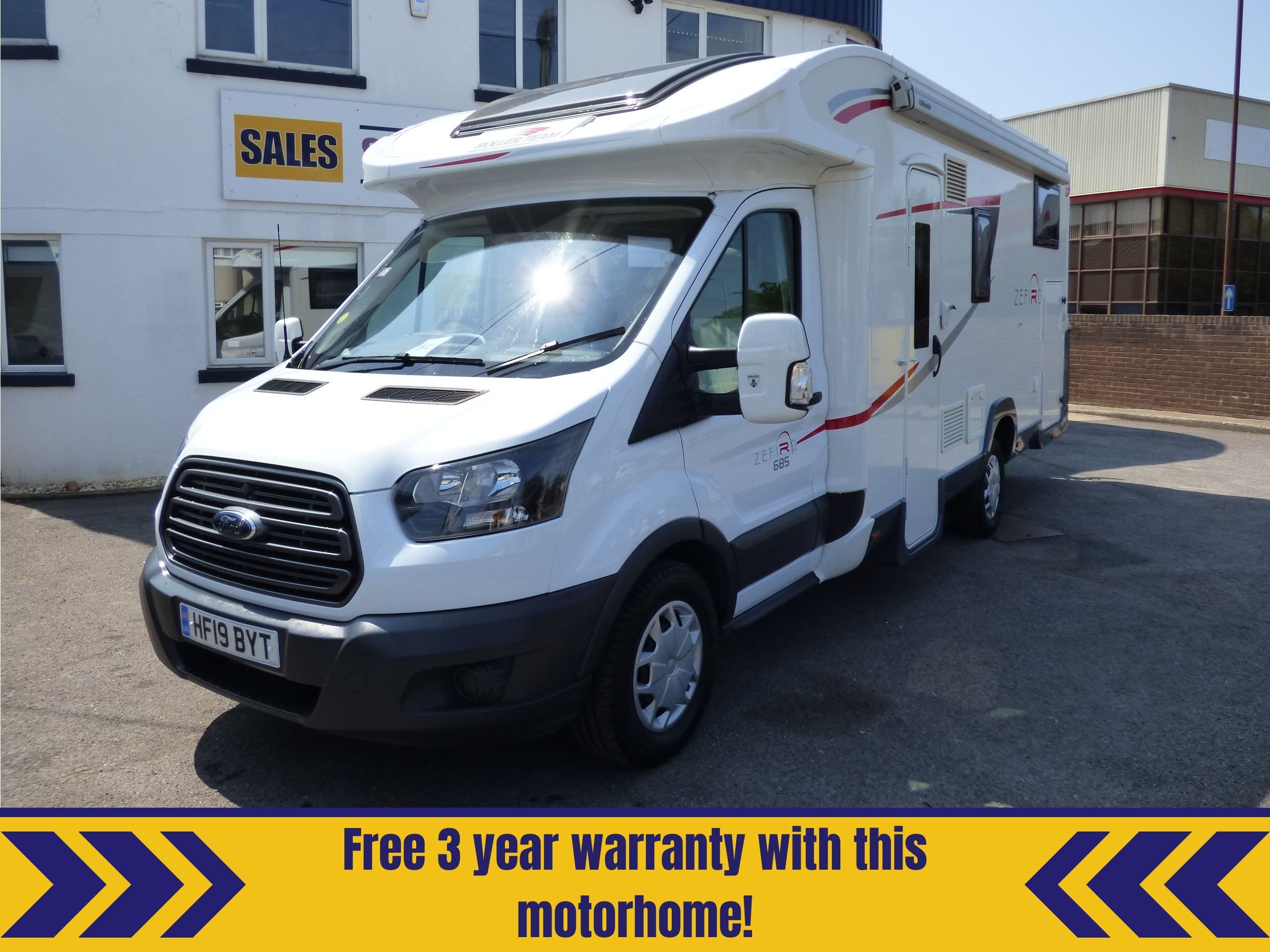 The Zefiro 685 affords the luxury of 2 single beds at the rear. Below the singles is masses of storage, also accessible from large external garage doors. Featuring a low profile body shell and an electric drop-down double bed above the lounge, this flexible and spacious layout delivers 4 belted seats and 4 berths, catering for both families and couples who like entertaining guests. A separate shower cubicle with toilet and basin opposite are towards the bedroom area which leads into a fully-equipped L-shaped kitchen. Backing onto the kitchen, comfort is assured with an L-shaped dinette. Based on the Ford Transit chassis, 130bhp motor with 6 speed manual transmission. Specified with the optional driver's pack providing cab A/C, cruise control and Bluetooth Connectivity this Zefiro 685 also features a Fiamma 4 bike rack, 100W solar panel, Twin 11kg Gaslow refillable LPG system, Dometic wind out awning, Cello TV, Snipe Dome satellite TV, Rear Airbag suspension, mirror protectors and additional security locks. L 7.45m W 2.35m H 2.95m 3,500kg, 4 Belts, 4 Berths. 36,725 miles.