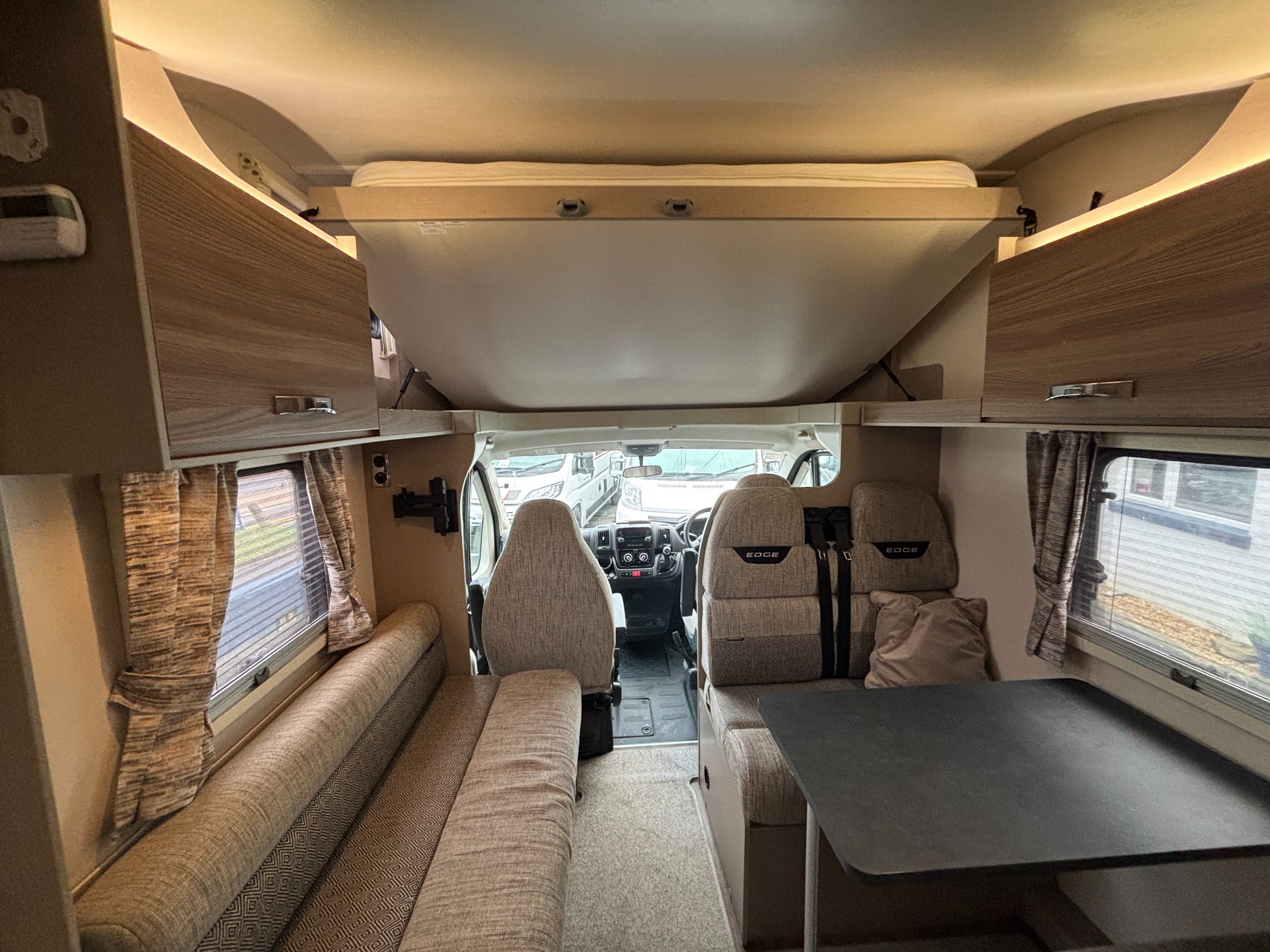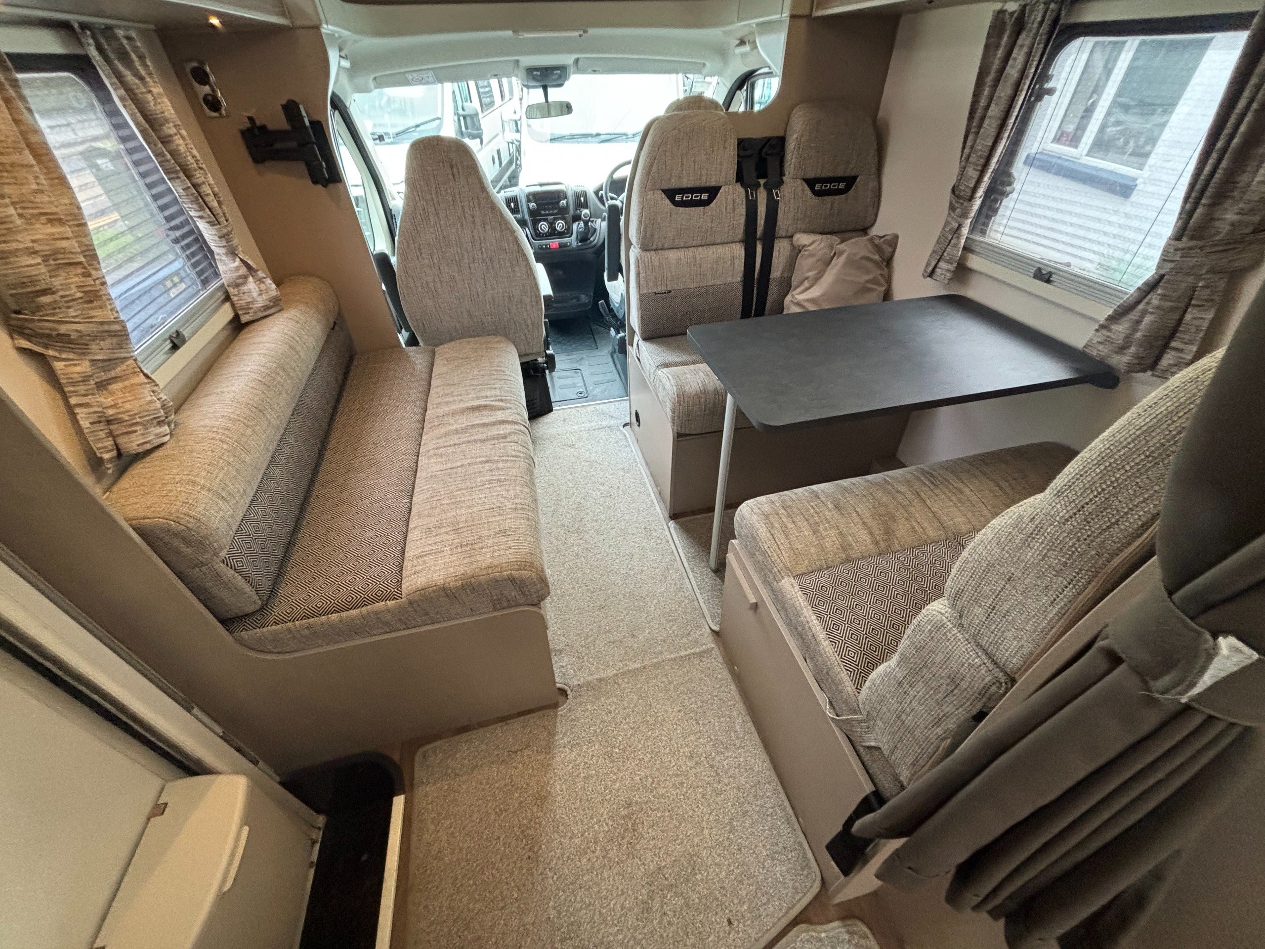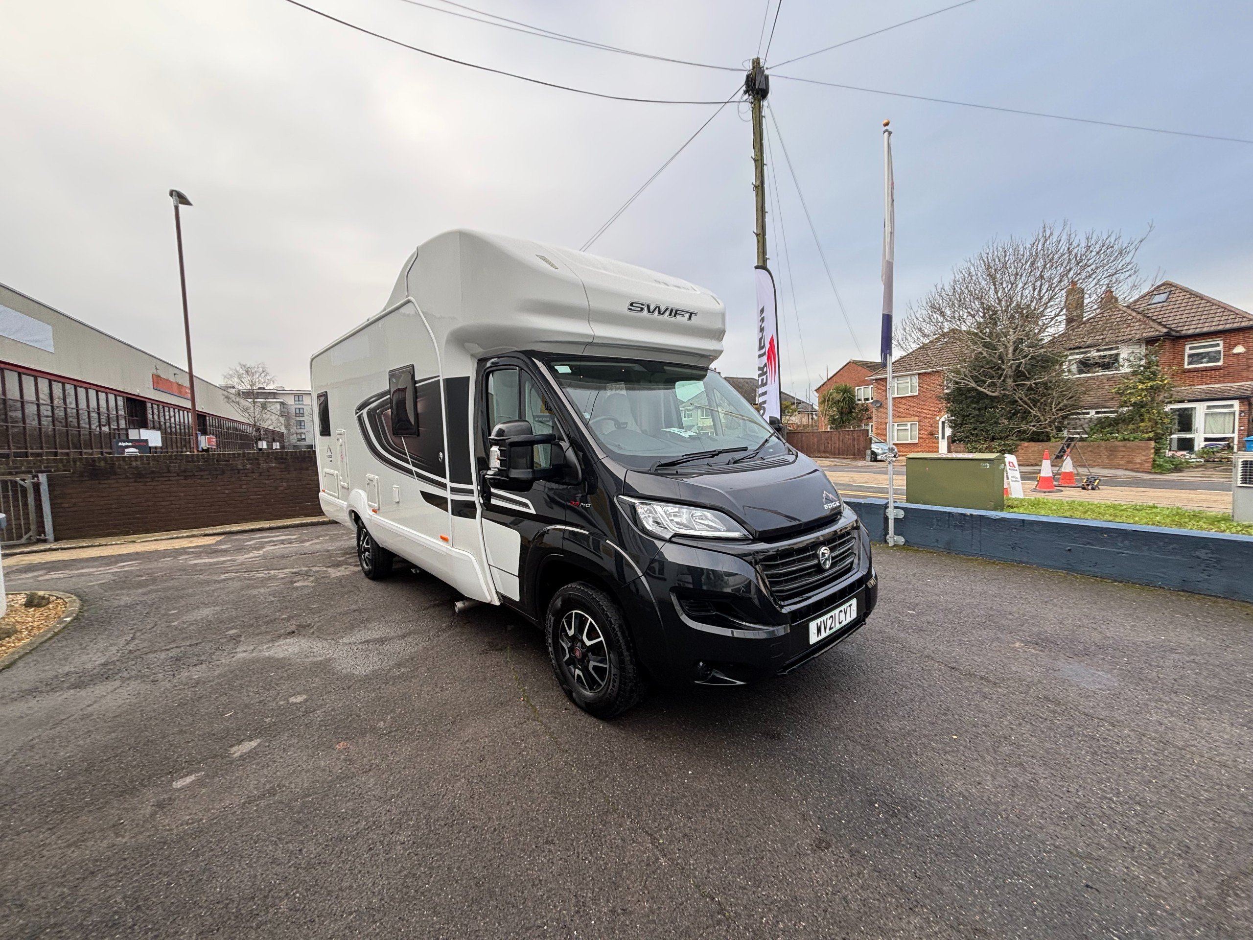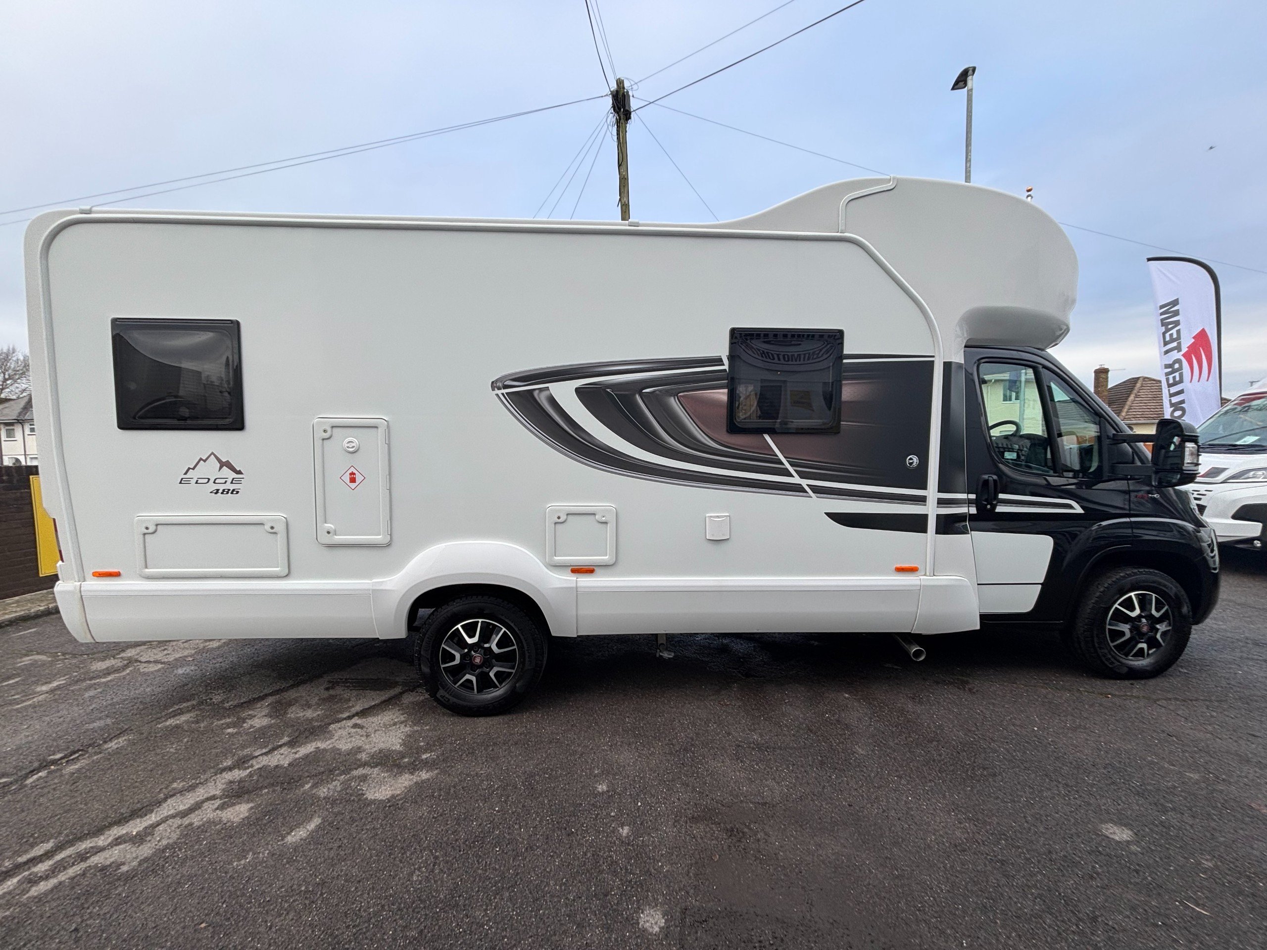 Solent are pleased to offer this one owner Swift Edge 486 Black Edition motorhome. Based on the Fiat Ducato chassis with 140bhp engine and 6 speed manual transmission, this 6 berth motorhome is ideal for families with a classic rear lounge and over cab bed layout. The accommodation is laid out with a large double bed above the cab and a dinette at the front that converts to another double bed with a sofa opposite. The side kitchen is fitted with a Thetford 3 burner gas hob with grill and oven, Dometic fridge/freezer and a microwave. Opposite is a wet room style bathroom with cassette toilet, wash hand basin and shower. The rear lounge is U shaped and also converts to another double bed for night time use. Heating and hot water is via a Truma combi system and other features of this Swift Edge 486 include: Fiamma F45S awning, Thule 2 bike rack, Cello TV, Manual TV antenna, carpets, solar panel, rear parking sensors and alloy wheels. L. 7.32m, W. 2.39m, H. 2.98m, 3,500kg, 6 berth, 6 seatbelts, 49,271 miles.