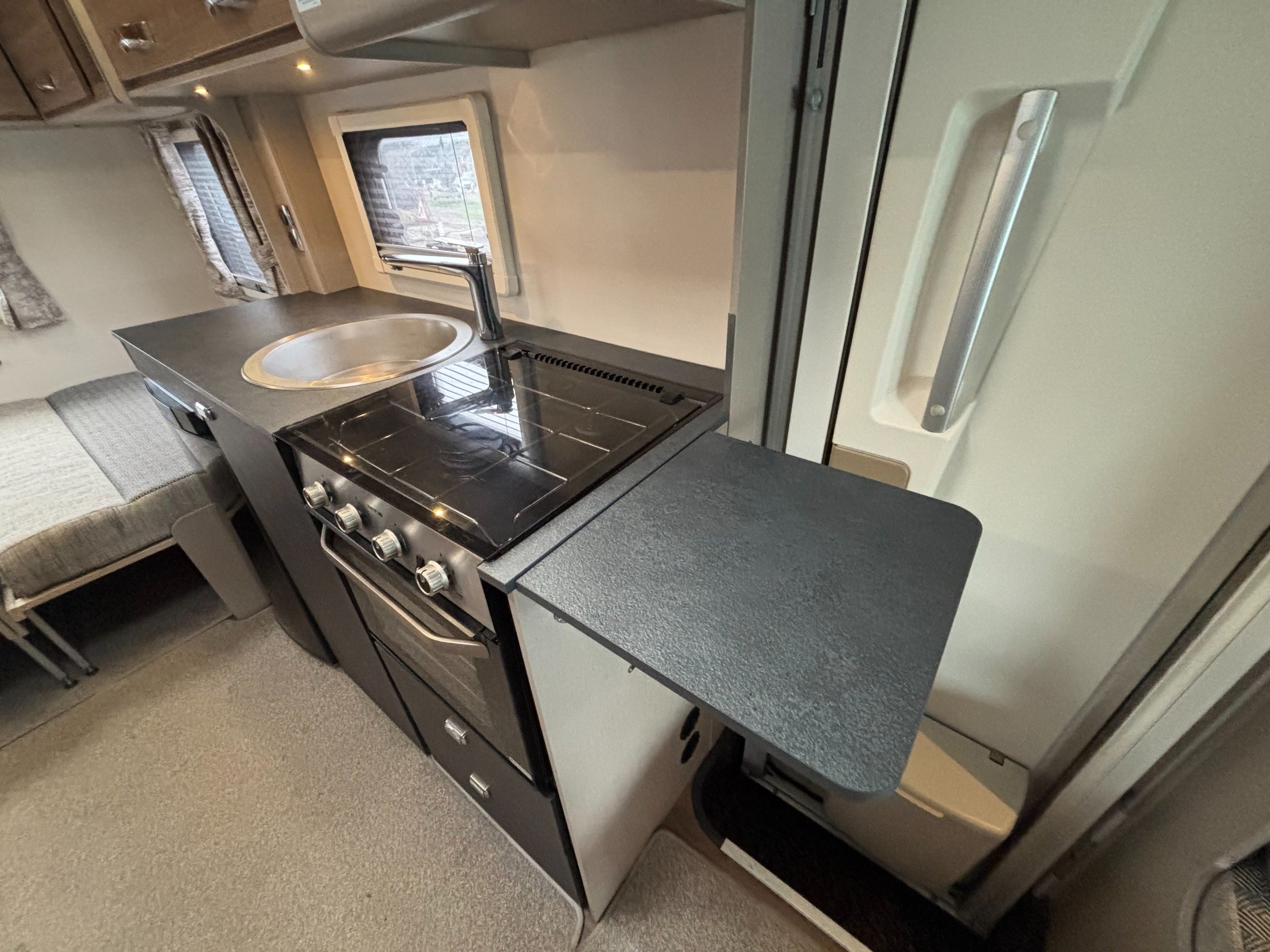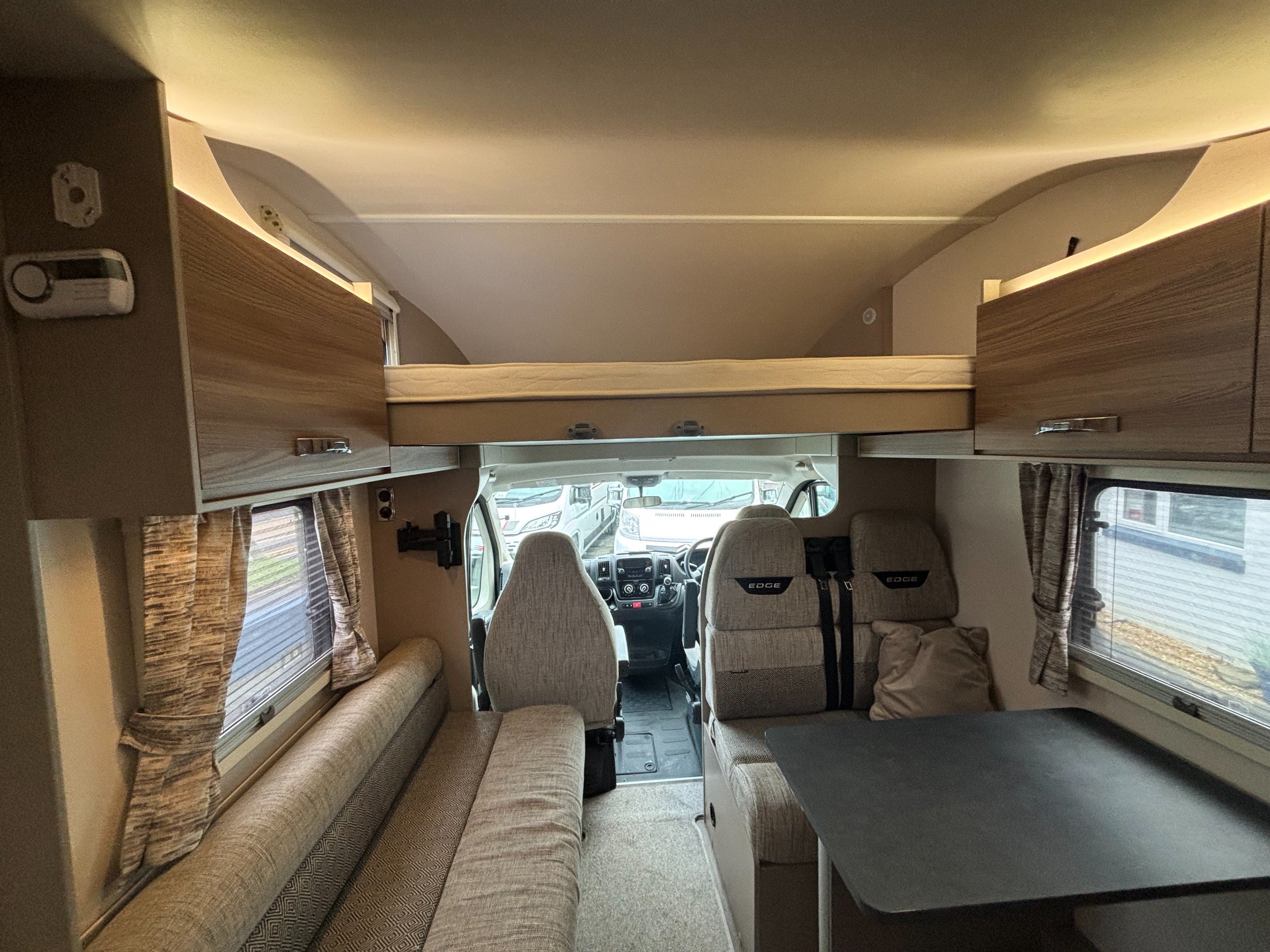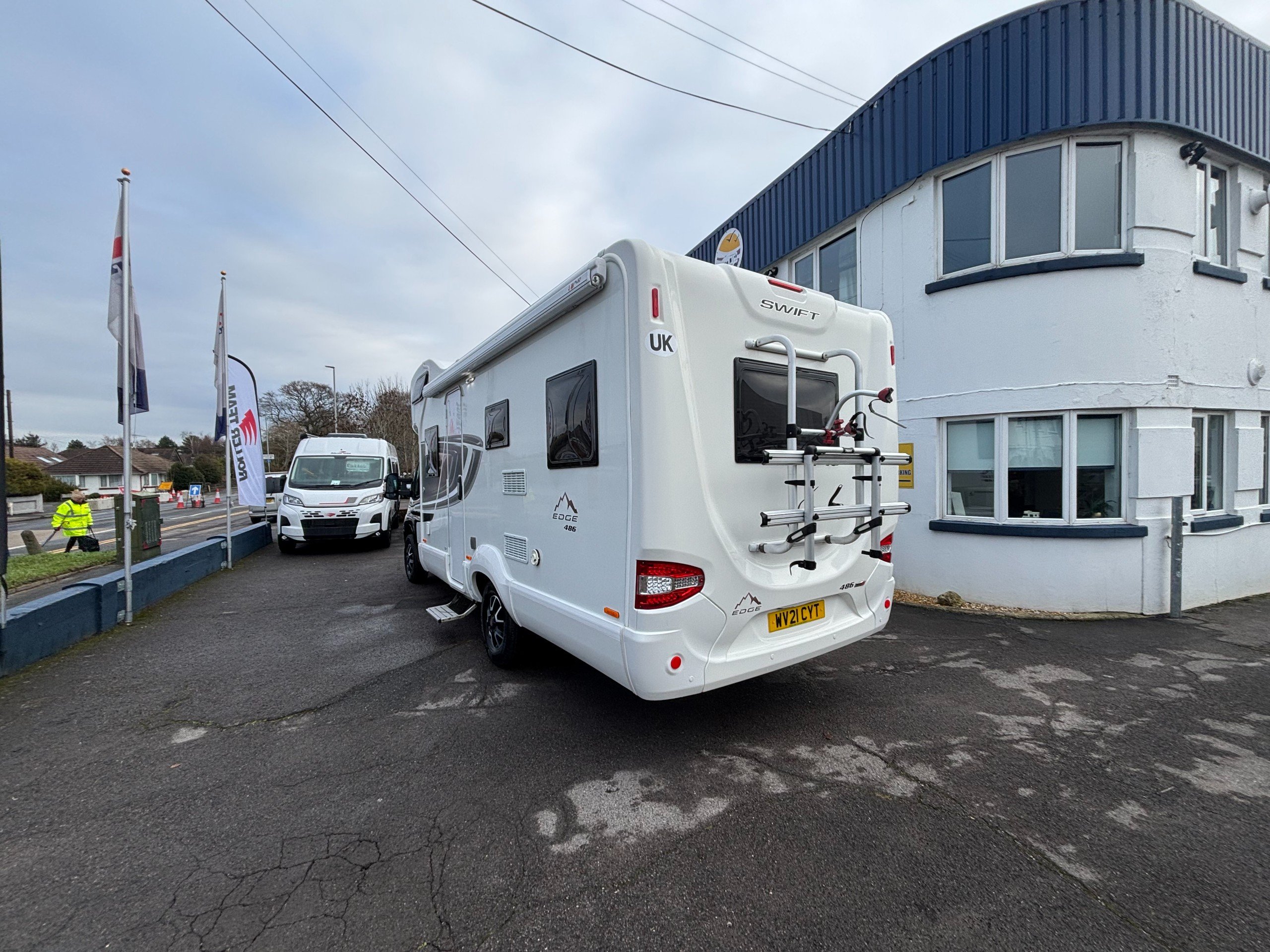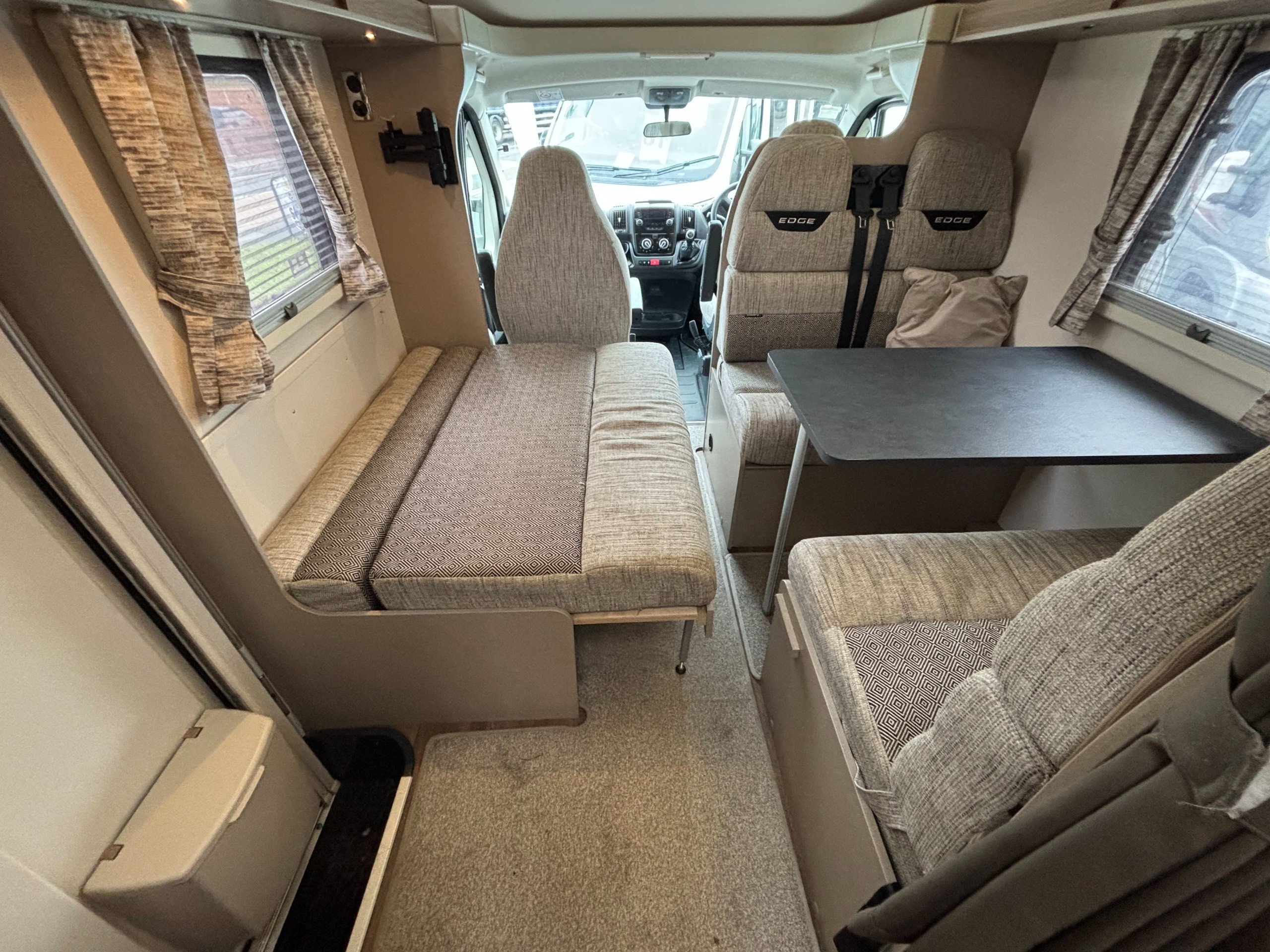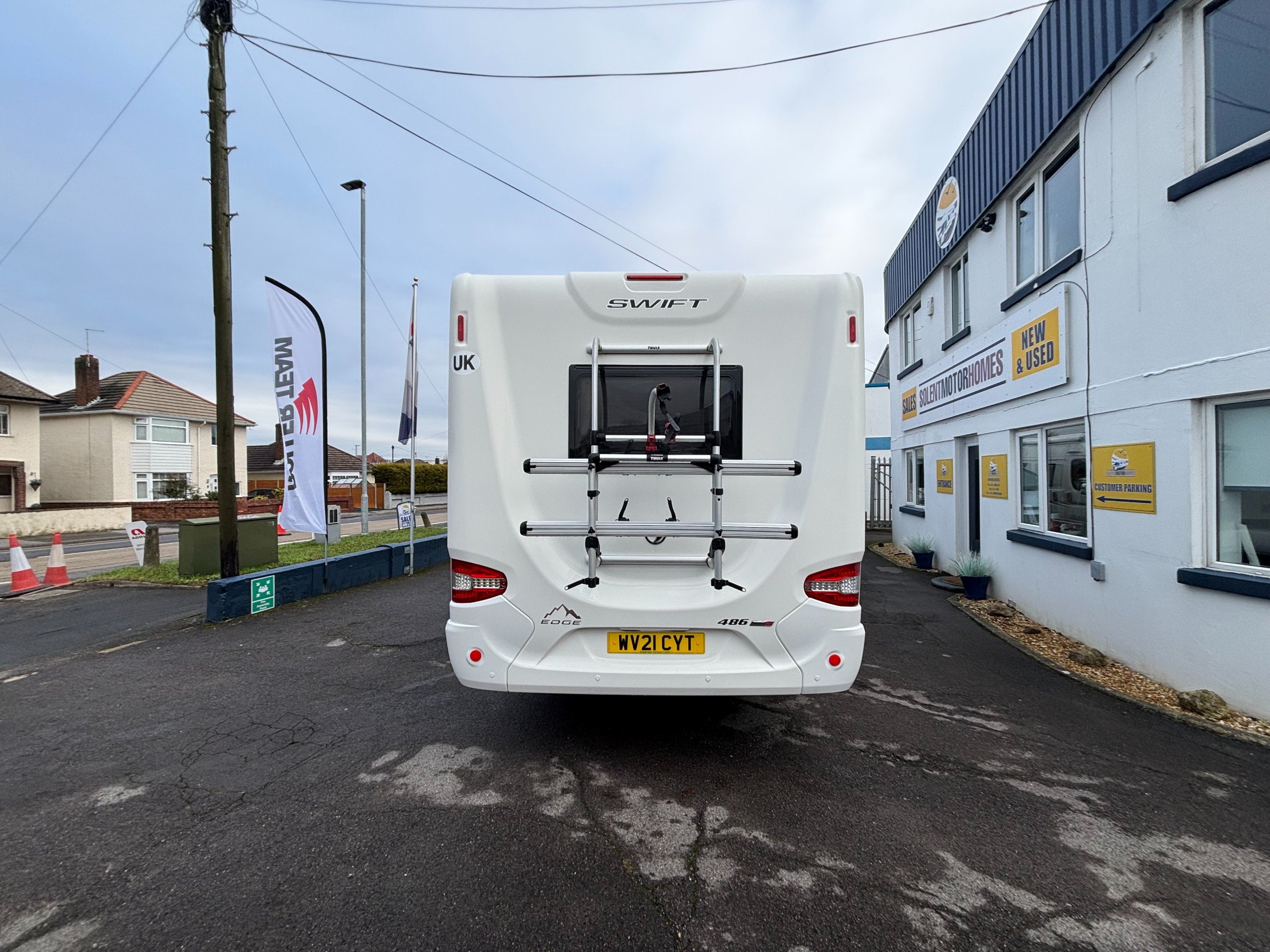 Solent are pleased to offer this one owner Swift Edge 486 Black Edition motorhome. Based on the Fiat Ducato chassis with 140bhp engine and 6 speed manual transmission, this 6 berth motorhome is ideal for families with a classic rear lounge and over cab bed layout. The accommodation is laid out with a large double bed above the cab and a dinette at the front that converts to another double bed with a sofa opposite. The side kitchen is fitted with a Thetford 3 burner gas hob with grill and oven, Dometic fridge/freezer and a microwave. Opposite is a wet room style bathroom with cassette toilet, wash hand basin and shower. The rear lounge is U shaped and also converts to another double bed for night time use. Heating and hot water is via a Truma combi system and other features of this Swift Edge 486 include: Fiamma F45S awning, Thule 2 bike rack, Cello TV, Manual TV antenna, carpets, solar panel, rear parking sensors and alloy wheels. L. 7.32m, W. 2.39m, H. 2.98m, 3,500kg, 6 berth, 6 seatbelts, 49,271 miles.